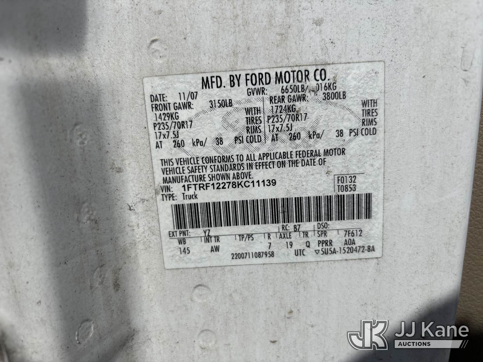 2008 Ford F150 Pickup Truck, 4.2L V6 OHV 12V Gas, RWD, Auto, A/C, (108,736 miles) (Runs & Moves) (Rough Idle, Body & Paint Damage) (FL Residents Purchasing Titled Items – tax, title & registration fees will be collected at the maximum rate of $400.00 under 25,999 and $800.00 for Over 26,000 and $250.00 trailers – Proof of insurance is mandatory; Out of State Residents Purchasing Title Items – tax will be collected based upon your state rate.) This is a Titled Item NOTE: This unit is being sold AS IS/WHERE IS via Timed Auction and is located in Westlake, FL. Inspection & preview days for this unit are the 2 business days prior to the first day of items closing for this auction, item is located at 4003 Seminole Pratt Whitney Rd Westlake, FL 33470 and hours of operations are 8a-4p. For pre-sale questions, please contact: Matt Johnson @ (205) 847-9106. (Buyer is responsible for removal. Assistance by consignor or JJ Kane Auctions is not assured.)