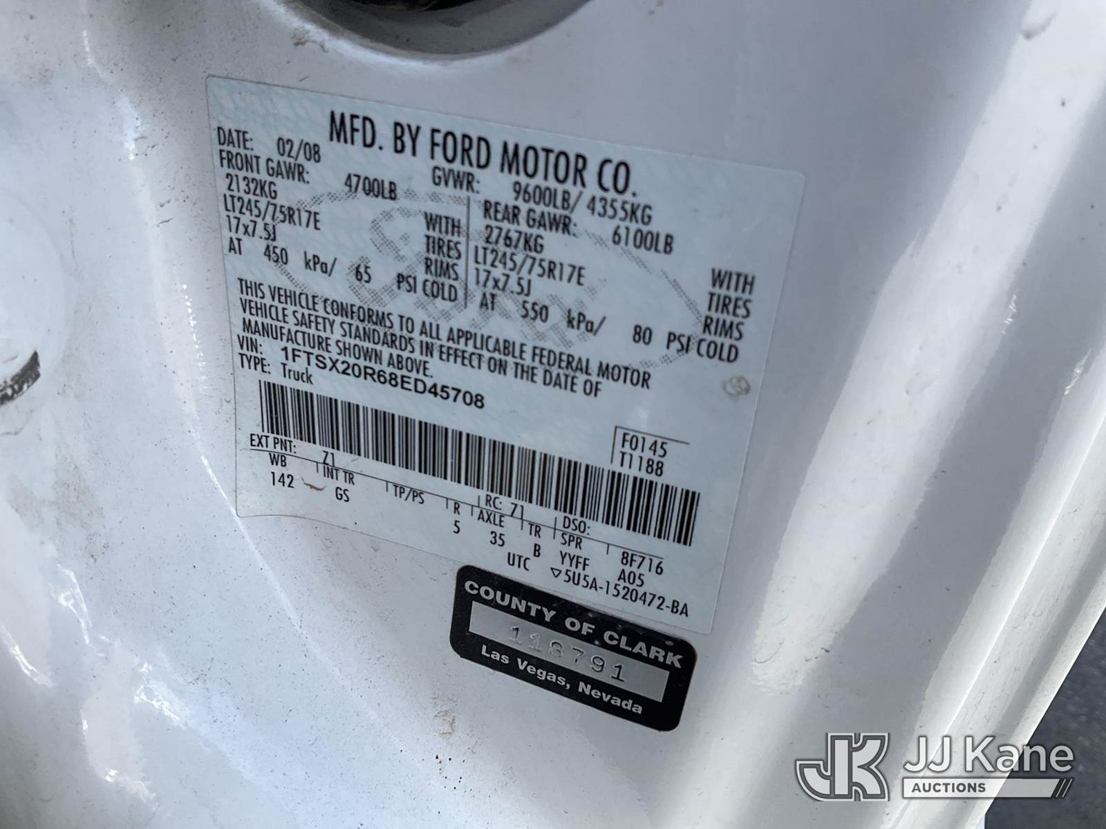 2008 Ford F250 Extended-Cab Pickup Truck, 6.4L V8 OHV 32V TURBO DIESEL, RWD, Auto, A/C, (76,795 miles) (Runs & Moves) This is a Titled Item NOTE: This unit is being sold AS IS/WHERE IS via Timed Auction and is located in Las Vegas, NV. Inspection & preview days for this unit are the 2 business days prior to the first day of items closing for this auction, item is located at 14655 Grand Valley Pkwy Las Vegas, NV 89165 and hours of operations are 8a-4p. Titles executed exactly as bidder registered. Ensure your name and/or business name and address in JJ Kane and/or ProxiBid is correct before bidding. For pre-sale questions, please contact Office Staff @ (801) 519-0123 and provide sale date and lot number. Las Vegas Dealer License Number DLR000053086 / OHV000053094. (Buyer is responsible for removal. Assistance by consignor or JJ Kane Auctions is not assured.)