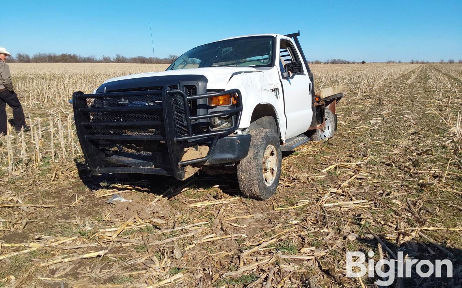 2008 Ford F250 Super Duty 4x4 Pickup, 156,795 miles showing, Title Will Be Marked Miles Exempt, Ford 5.4L V-8 gas engine, Automatic overdrive transmission, Jarit 8-1/2' spike bale bed, Gooseneck & receiver hitch, Wrecked, 17" front tires, Ranch-Hand grille guard, NOT OPERATIONAL DAY OF LISTING, VIN: 1FTNF21538EC26168