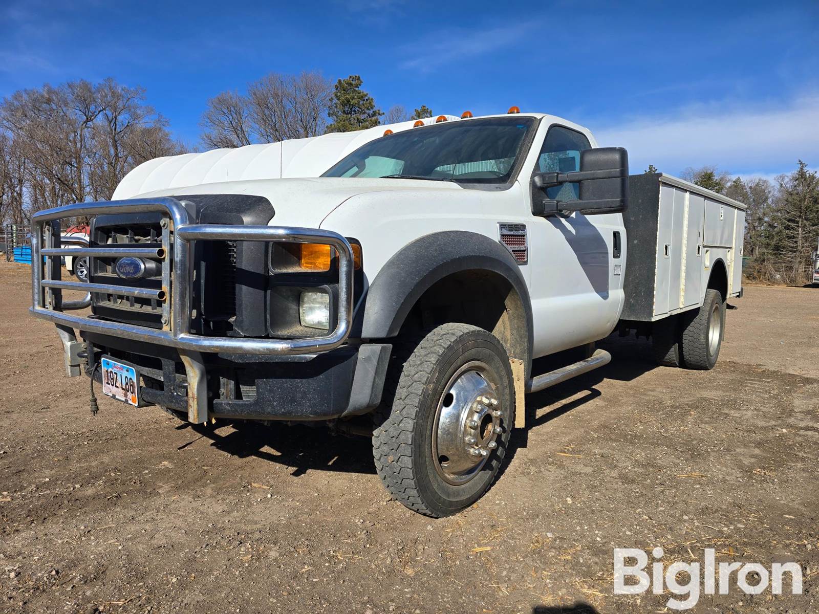 2008 Ford F550 Super Duty 4x4 Utility Truck, 235,776 miles showing, Title Will Be Marked Miles Exempt, 6.4L V8 Turbo, Diesel, Block Heater, Automatic Transmission, 19,000 Gross Vehicle Wt. Rating (GVWR), 13,660 Rear Axle Lbs., 7,000 Front Axle Lbs., Spring Suspension, 225/70R19.5 Front Tires, 225/70R19.5 Rear Tires, Duals, Steel Rims, Heater, AC, Radio, Manual Locking Hubs, Manual 4X4 Shift, Grille Guard, 11' Service Body, 64" Inside Width, 8 Storage Compartments, Bumper Mounted Vise, Emissions System Has Been Modified, VIN: 1FDAF57RX8EA70426