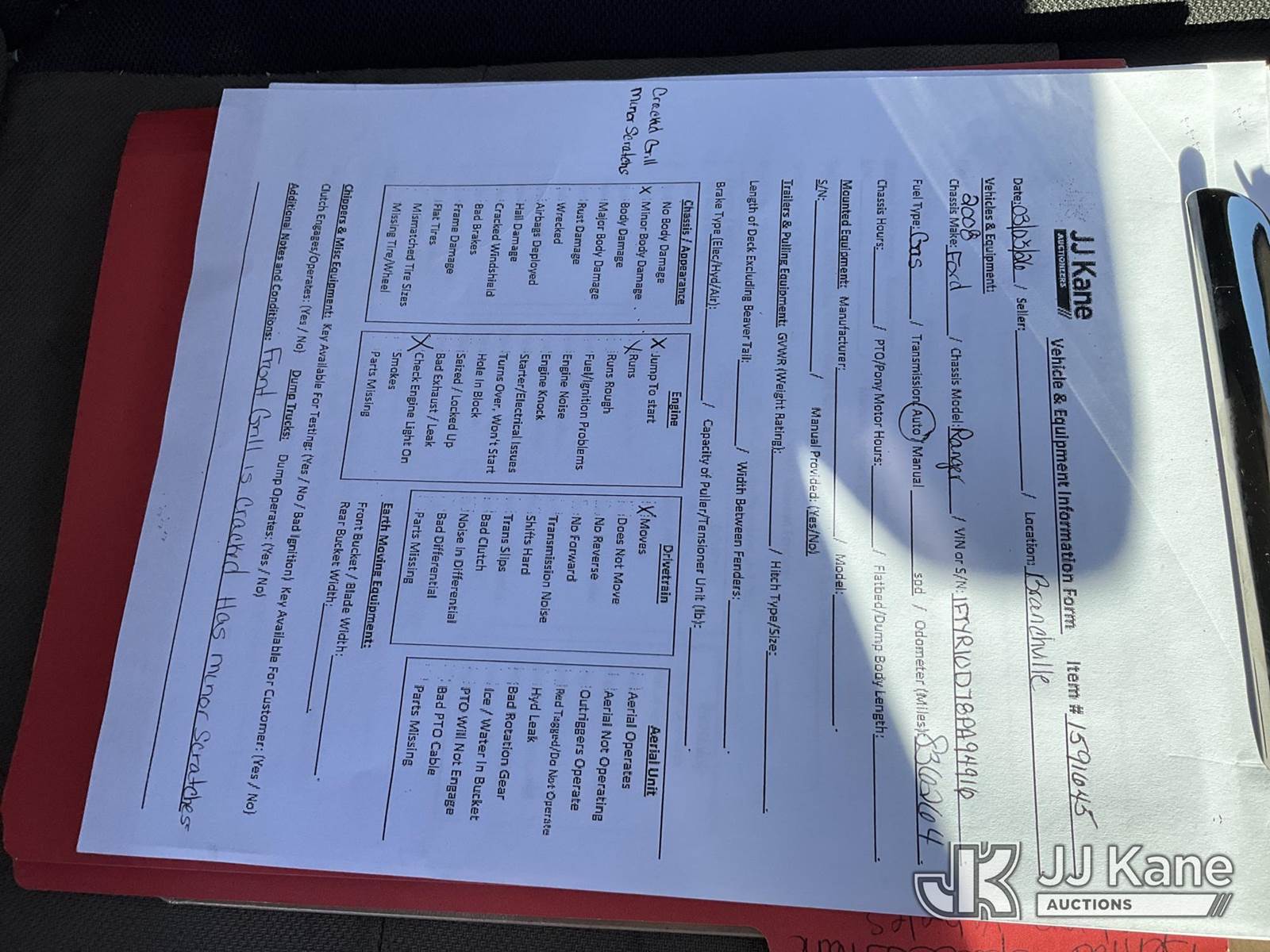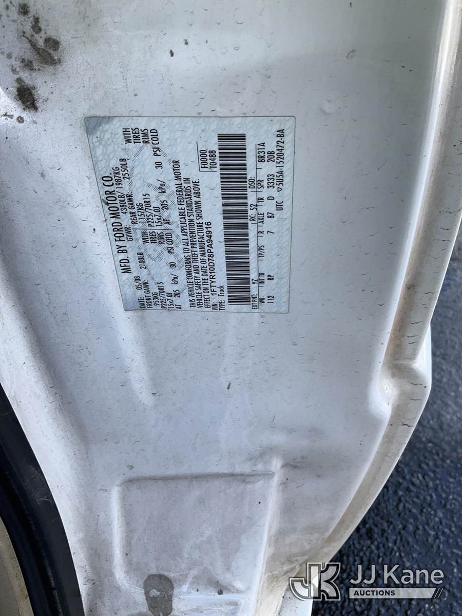 2008 Ford Ranger 2WD Pickup Truck, 4-cyl gas, Auto, A/C, (83,626 miles) (Runs & Moves, Jump to Start, Engine Light On) (Removal is by Appointment Only, Buyer MUST make a appointment prior to picking up, Buyer/Transporter Must have PAID IN FULL RELEASE. No onsite assistance available, Please Come prepared.) This is a Titled Item NOTE: This unit is being sold AS IS/WHERE IS via Timed Auction and is located in Branchville, NJ. Inspection & preview days for this unit are by appointment only; please contact us at contact@jjkane.com or 84-Go-JJKane for more details. For pre-sale questions, please contact the on-site office @ (973) 948-2026 or wtrbranchville@gmail.com. (Buyer is responsible for removal. Assistance by consignor or JJ Kane Auctions is not assured.)