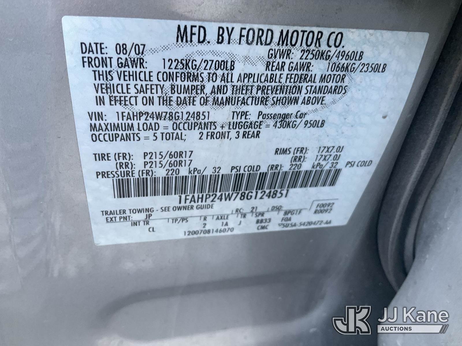 2008 Ford Taurus 4-Door Sedan, 6-cyl gas, Auto, A/C, (104,859 miles) (Runs & Moves) (Trunk Will Not Shut, Paint/Body Damage) (Seller States: Possible Mechanical/Overheating Issues) This is a Titled Item NOTE: This unit is being sold AS IS/WHERE IS via Timed Auction and is located in Las Vegas, NV. Inspection & preview days for this unit are the 2 business days prior to the first day of items closing for this auction, item is located at 14655 Grand Valley Pkwy Las Vegas, NV 89165 and hours of operations are 8a-4p. Titles executed exactly as bidder registered. Ensure your name and/or business name and address in JJ Kane and/or ProxiBid is correct before bidding. For pre-sale questions, please contact Office Staff @ (801) 519-0123 and provide sale date and lot number. Las Vegas Dealer License Number DLR000053086 / OHV000053094. (Buyer is responsible for removal. Assistance by consignor or JJ Kane Auctioneers is not assured.)