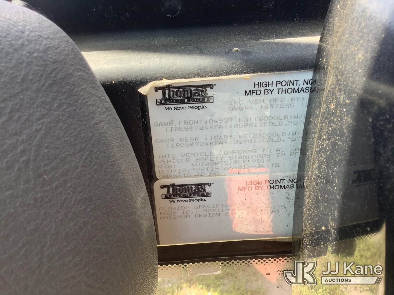 2008 Freightliner B2 School Bus, 6.4L L6 diesel, Auto, A/C, (224,441 miles) (Not Running, Condition Unknown) (No Key) (Reads 9,469 hours) This is a Titled Item NOTE: This unit is being sold AS IS/WHERE IS via Timed Auction and is located in Thonotosassa, FL. Inspection & preview days for this unit are the 2 business days prior to the first day of items closing for this auction, item is located at 11720 N US 301 Thonotosassa, Fl 33592 and hours of operations are 8a-4p. For pre-sale questions, please contact Office Staff @ (813) 986-2485. (Buyer is responsible for removal. Assistance by consignor or JJ Kane Auctioneers is not assured.)