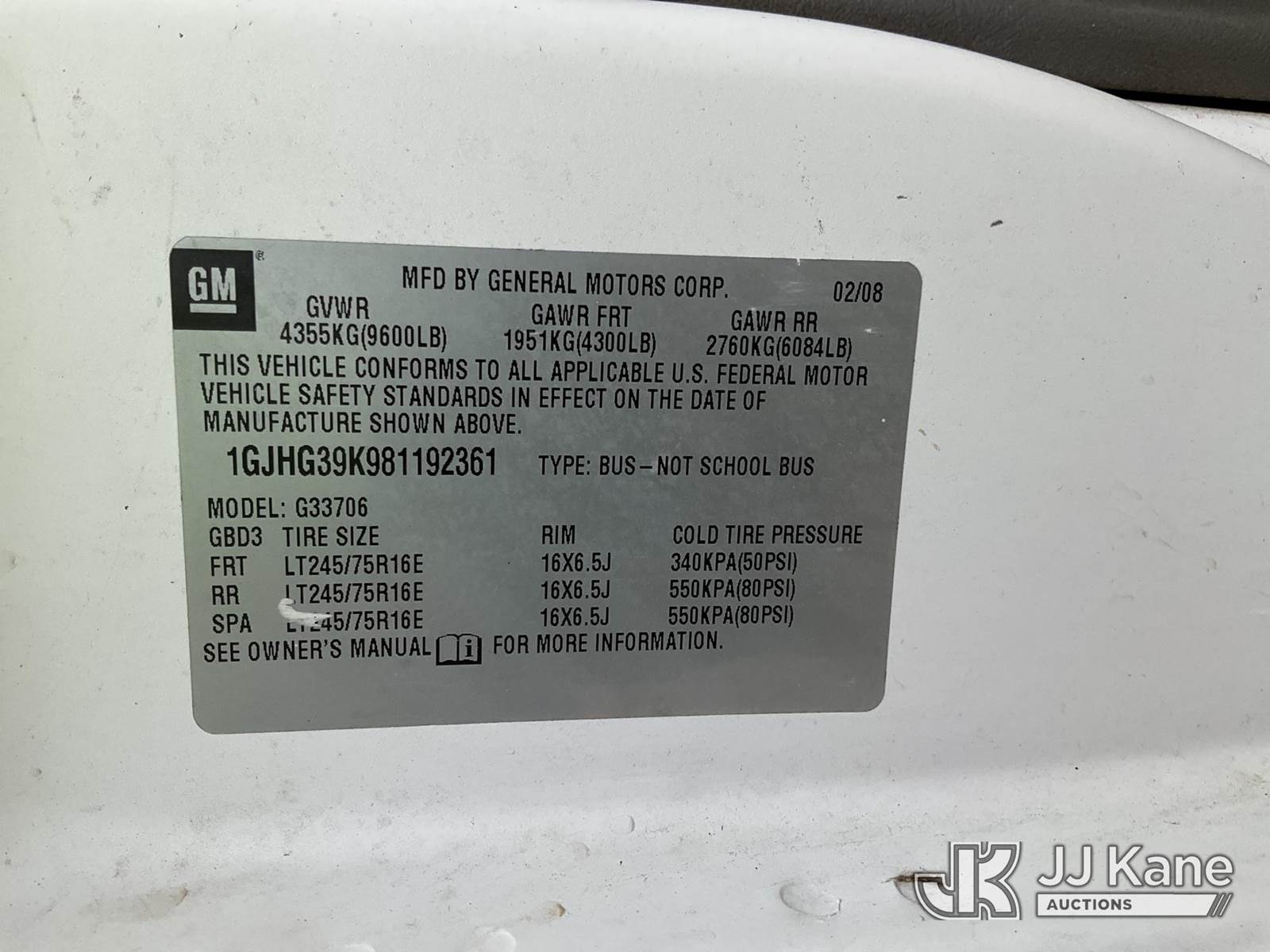 2008 GMC Savana Extended Passenger Van, 6.0L V8 OHV 16V RWD, GAS, 4-Speed Automatic, A/C, with 14 Seats , (121,308 miles) (Runs, Moves)( Engine Light, Brake Light, Traction Control Light, Jump To Start, Rust, Body Damage, Back Window Latch Broken ) (Reads 5,969 hours) This is a Titled Item NOTE: This unit is being sold AS IS/WHERE IS via Timed Auction and is located in Charlotte, MI. Inspection & preview days for this unit are the 2 business days prior to the first day of items closing for this auction, item is located at 750 Island Hwy Charlotte, MI 48813 and hours of operations are 8a-4p. For pre-sale questions, please contact Corey Cook at (517) 983-0796 or corey.cook@jjkane.com (Buyer is responsible for removal. Assistance by consignor or JJ Kane Auctions is not assured.)