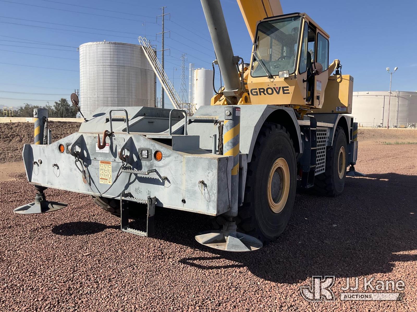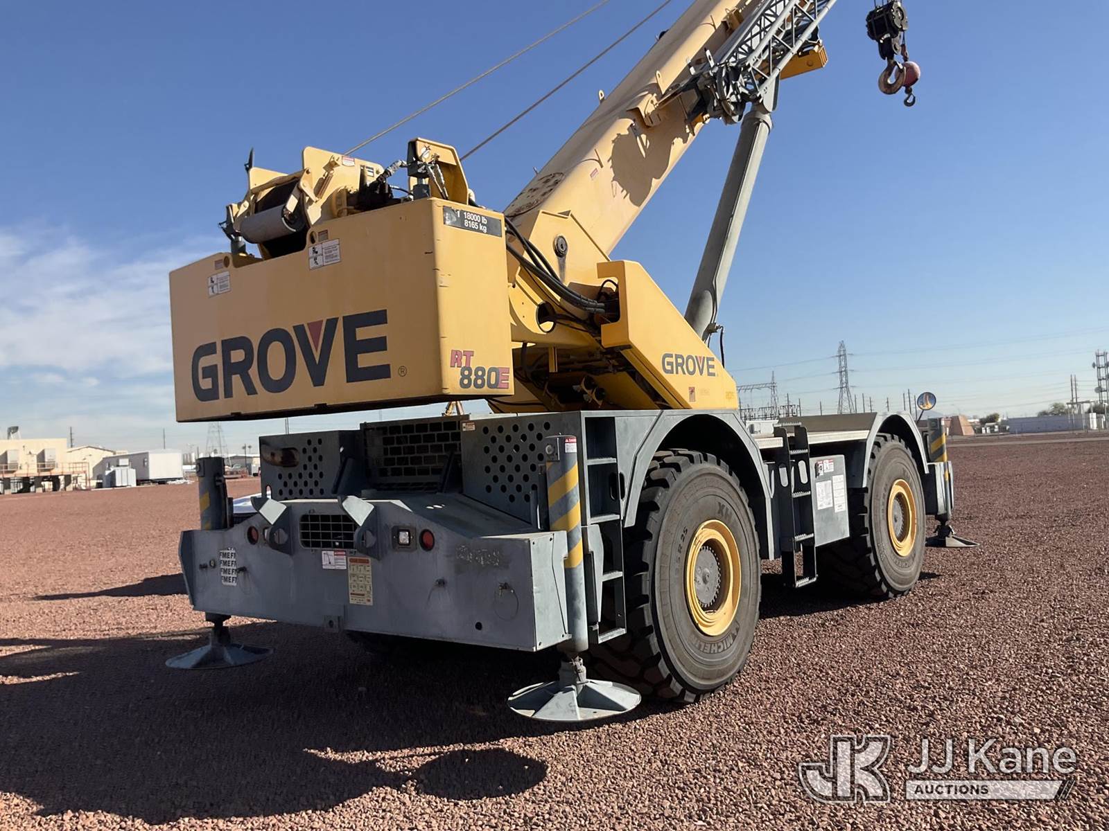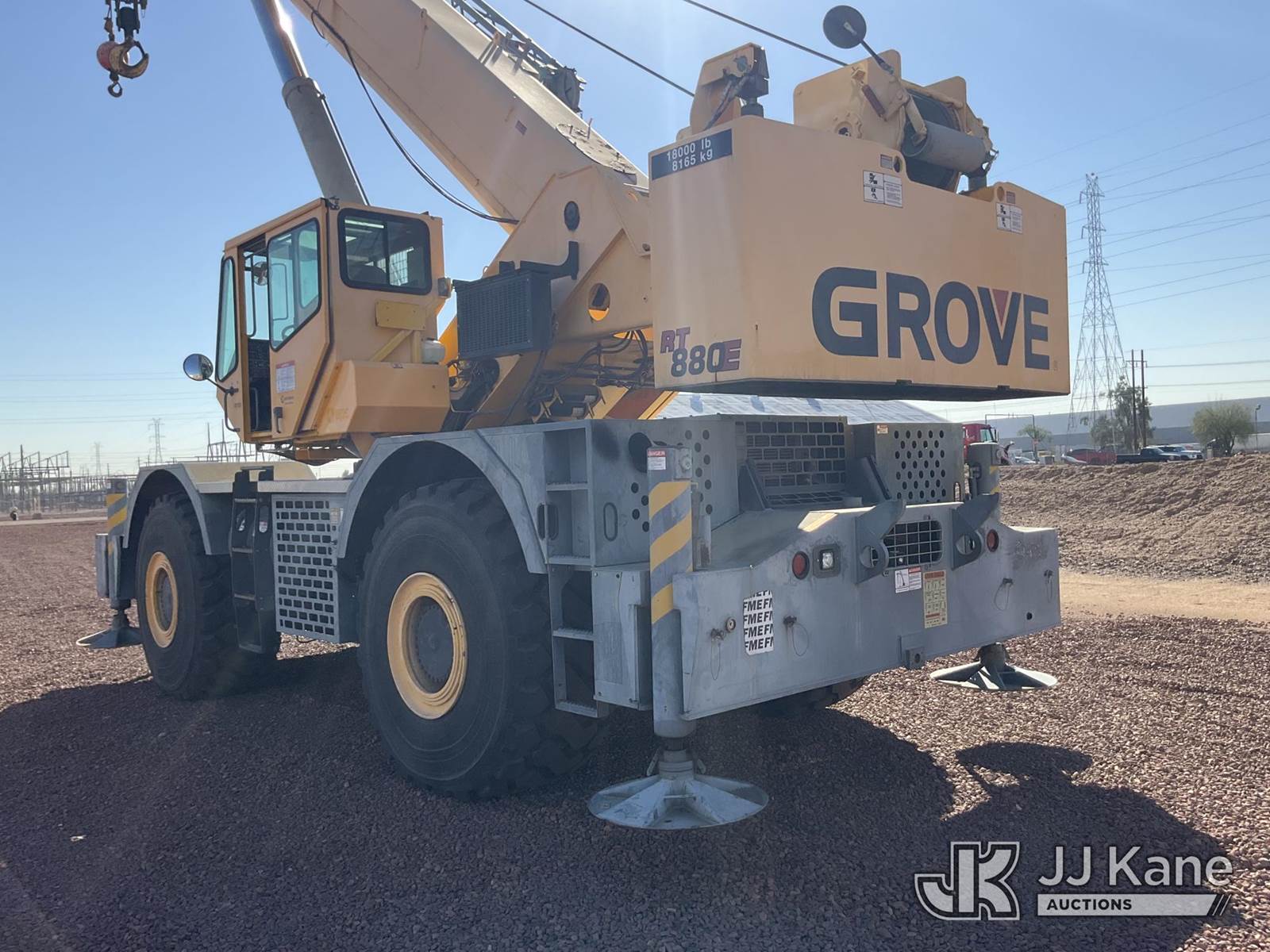 2008 Grove RT880E 4x4 Rough Terrain Crane, s/n 228190, Cummins 6.7L diesel, diesel, powershift, with 41 ft - 128 ft boom, 80 ton capacity, anti two-block, headache ball, 29.5-25 Tires, (Runs, Moves & Operates) (Reads 3,492 hours) NOTE: This unit is being sold AS IS/WHERE IS via Timed Auction and is located in Phoenix, AZ. For more information & removal arrangements please contact Carson Wenner @ (480) 617-3620. (Buyer is responsible for removal. Assistance by consignor or JJ Kane Auctions is not assured.)