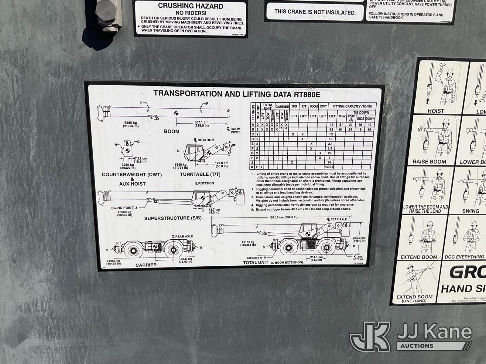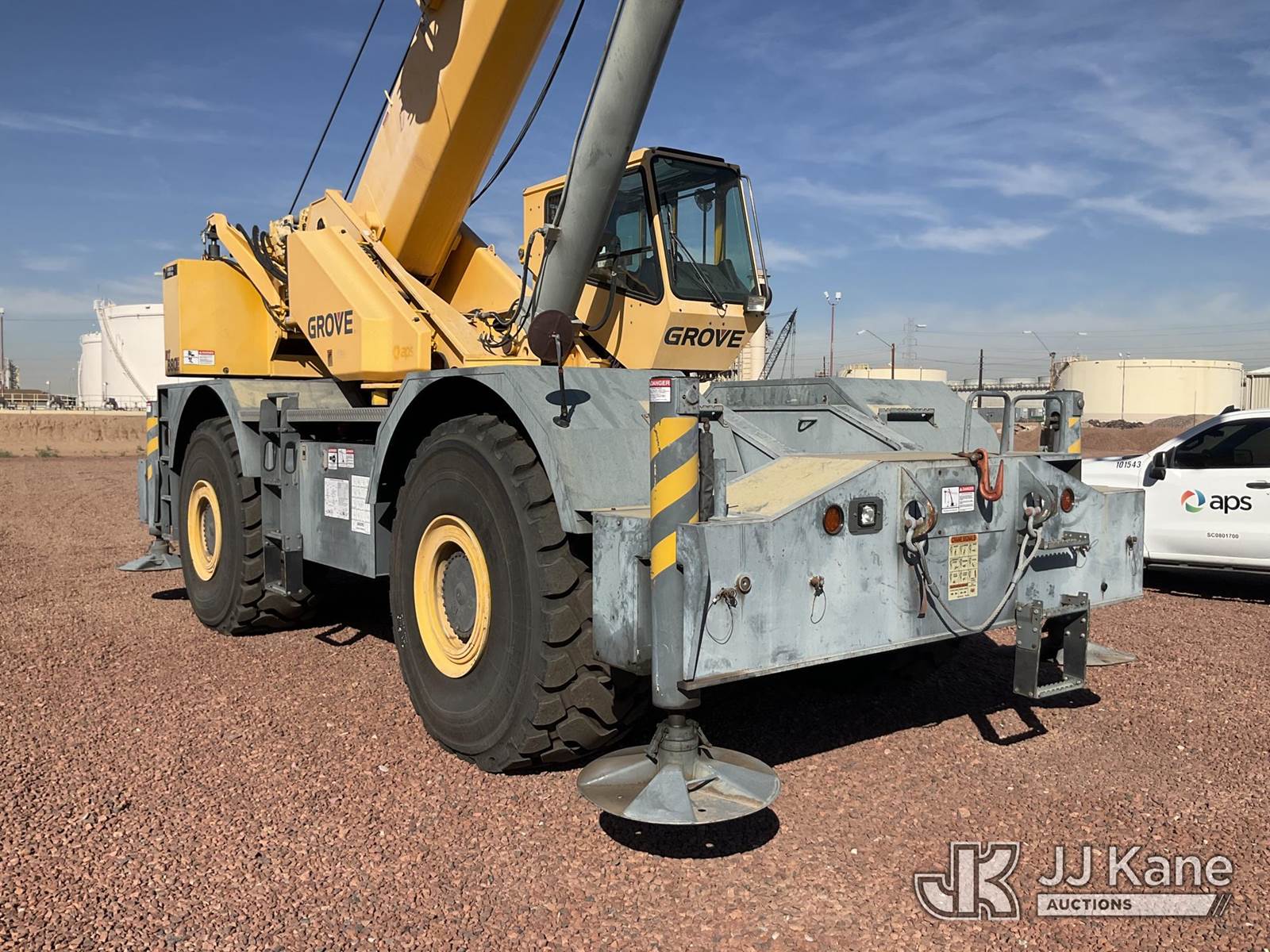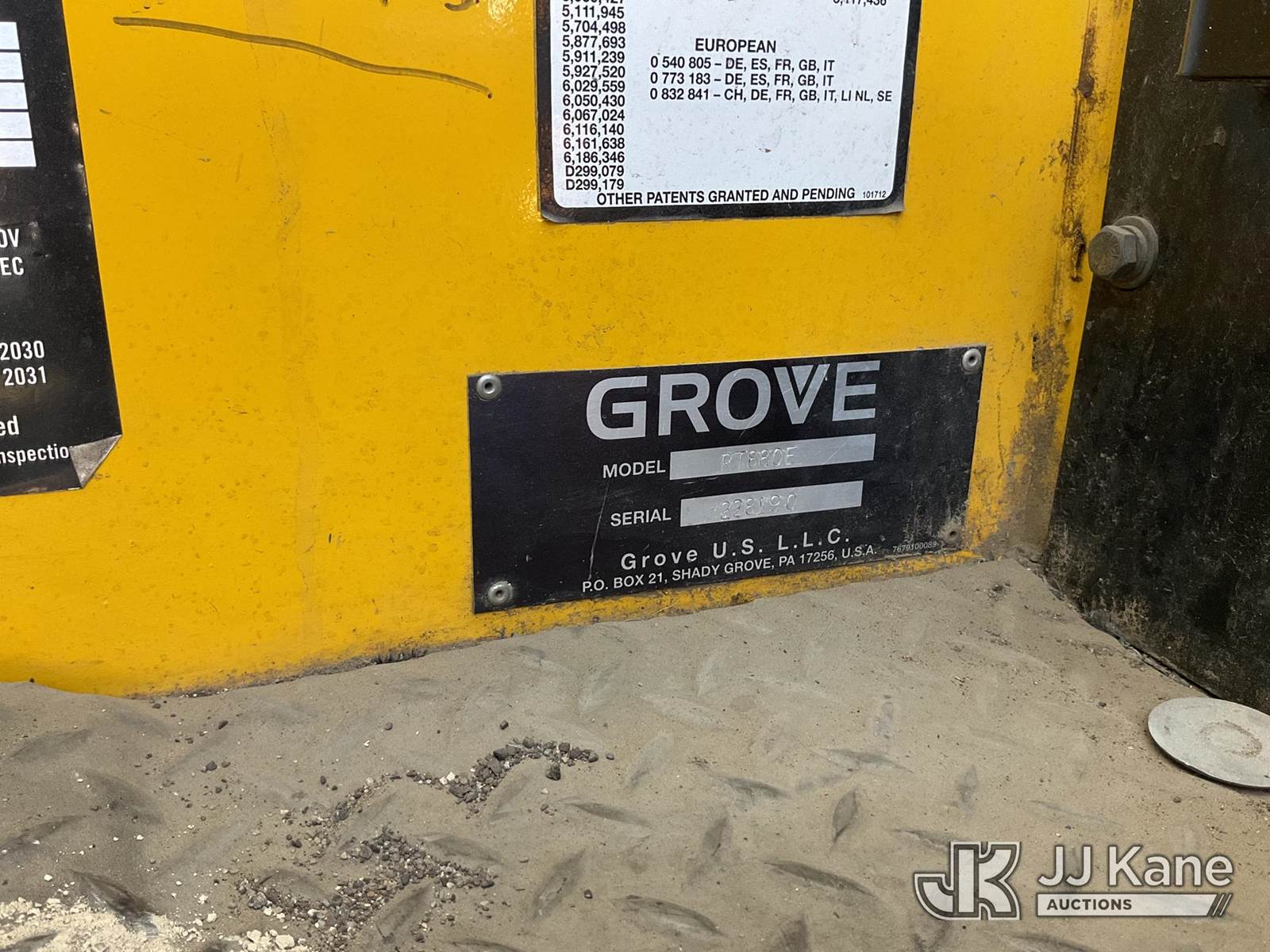 2008 Grove RT880E 4x4 Rough Terrain Crane, s/n 228190, Cummins 6.7L diesel, diesel, powershift, with 41 ft - 128 ft boom, 80 ton capacity, anti two-block, headache ball, 29.5-25 Tires, (Runs, Moves & Operates) (Reads 3,492 hours) NOTE: This unit is being sold AS IS/WHERE IS via Timed Auction and is located in Phoenix, AZ. For more information & removal arrangements please contact Carson Wenner @ (480) 617-3620. (Buyer is responsible for removal. Assistance by consignor or JJ Kane Auctions is not assured.)