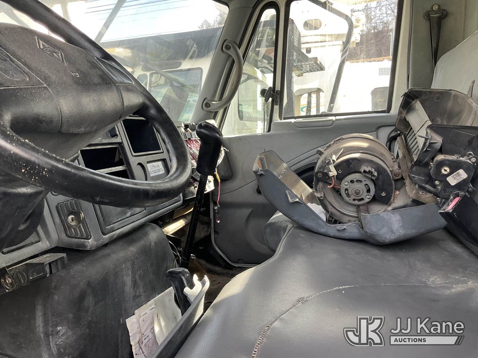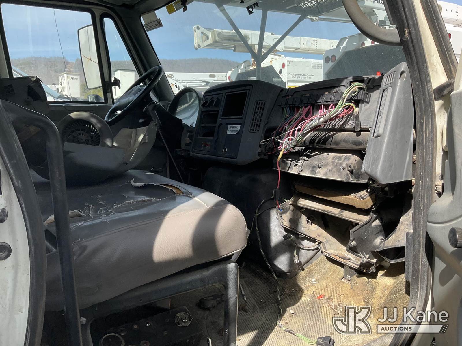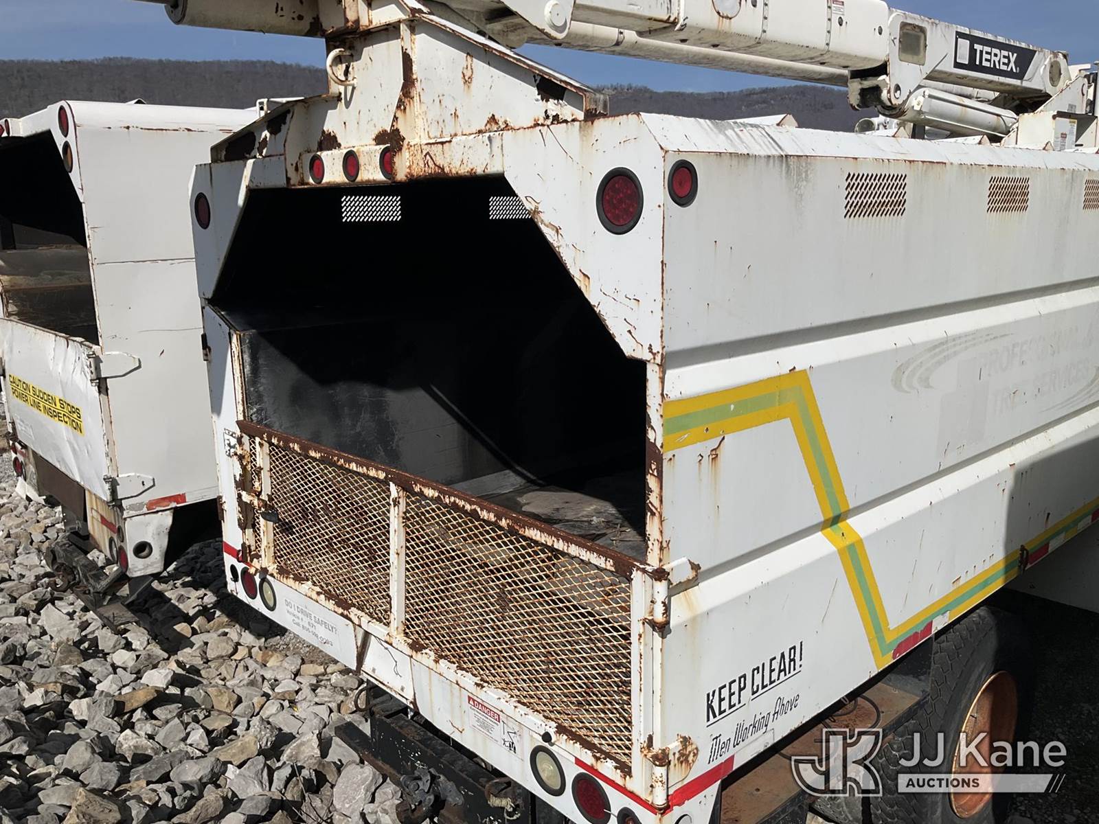 HiRanger XT55, 60 ft, Over-Center Bucket Truck s/n 2070533555, with single man bucket, mounted behind cab on 2008 International 4300 Chipper Dump Truck, 7.6L diesel, 4X2, manual, True Mileage Unknown (Not Running, Condition Unknown) This is a Titled Item NOTE: This unit is being sold AS IS/WHERE IS via Timed Auction and is located in Jacksboro, TN. For more information & removal arrangements please contact Charlie de Kanter @ (281) 910-7147. (Missing manuals, See Auction Company for Manufacturers Information to obtain manuals) (Buyer is responsible for removal. Assistance by consignor or JJ Kane Auctions is not assured.)