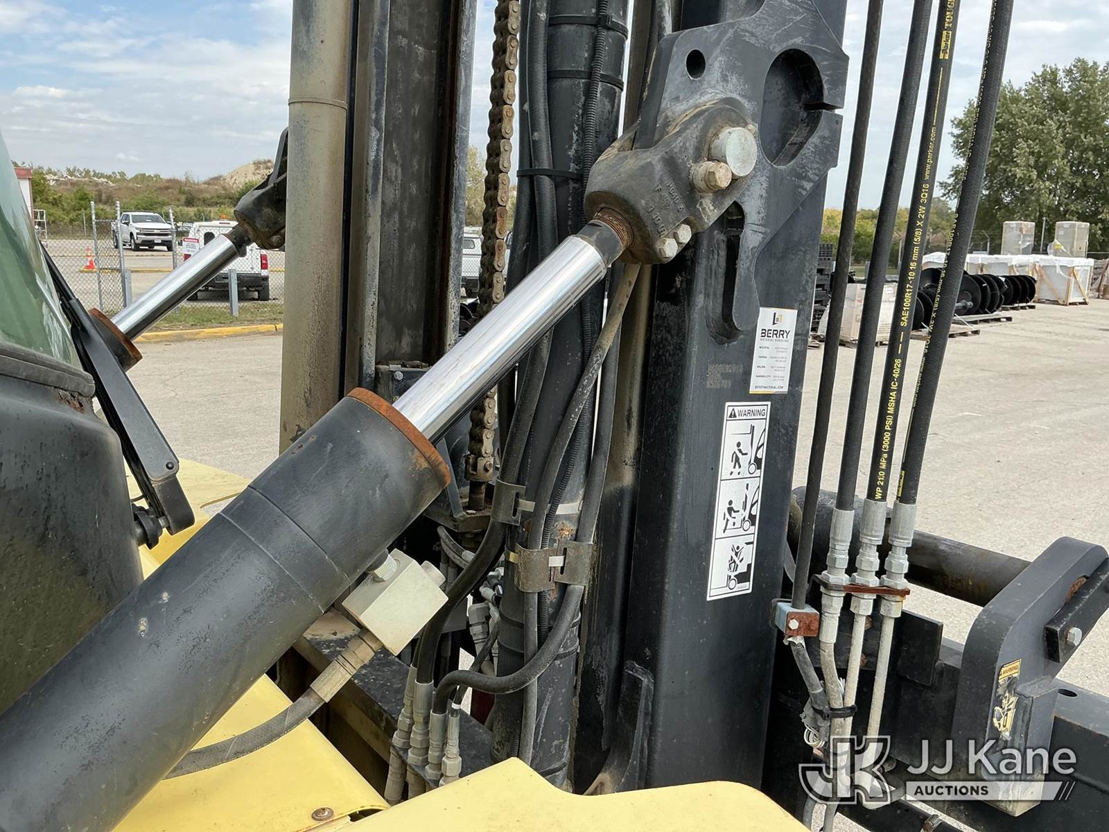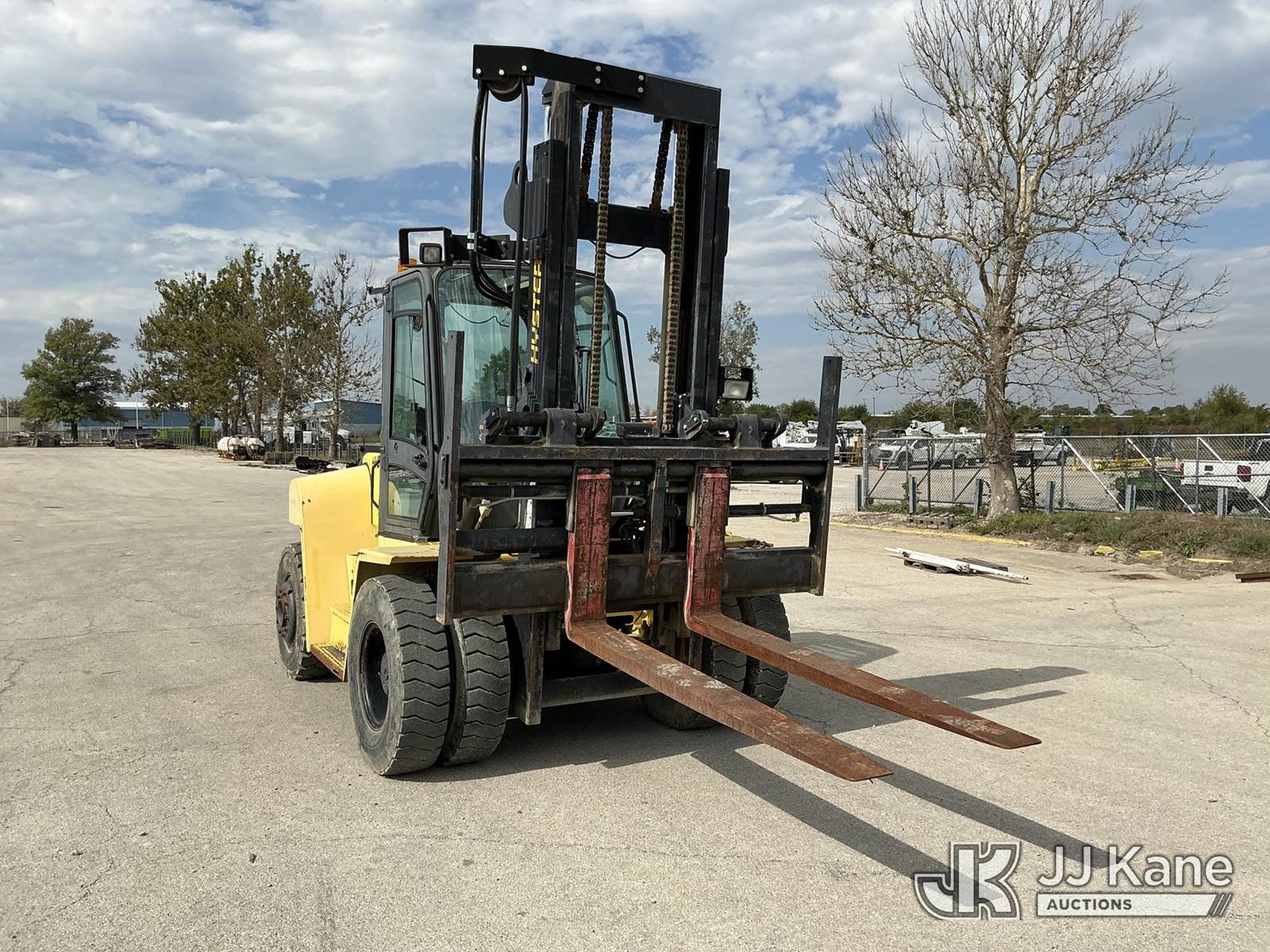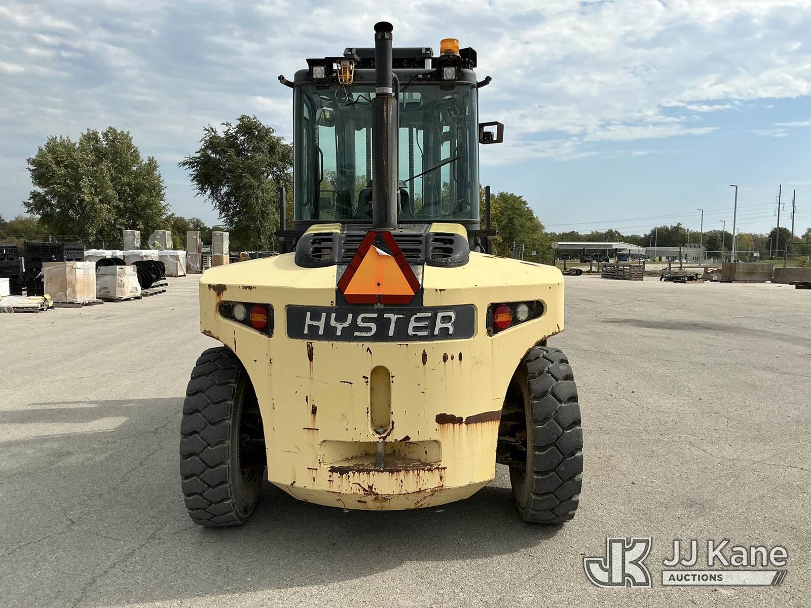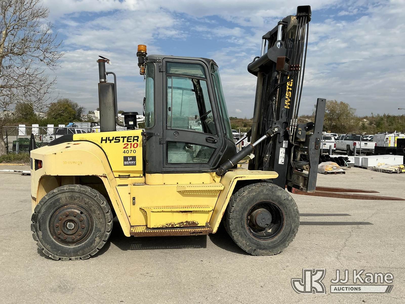 2008 Hyster H210HD Pneumatic Tired Forklift, s/n H007E01929F, Cummins Shuttle, diesel, A/C, with EROPS, Pneumatic Tires, Hydraulic Side Shift, Hydraulic Fork Positioning, 18750lb Capacity, 83in Forks, 212in 2 Stage Mast, (Runs, Moves & Operates ( Front Wiper Does Not Shut Off/ Rust & Paint Damage ) (Reads 1,570 hours) NOTE: This unit is being sold AS IS/WHERE IS via Timed Auction and is located in Kansas City, MO. Inspection & preview days for this unit are the 2 business days prior to the first day of items closing for this auction, item is located at 962 Tel Aviv Ave Kansas City, MO 64153 and hours of operations are 8a-4p. For pre-sale questions, please contact Ricky McPherson @ (816) 610-2250. (Buyer is responsible for removal. Assistance by consignor or JJ Kane Auctioneers is not assured.)