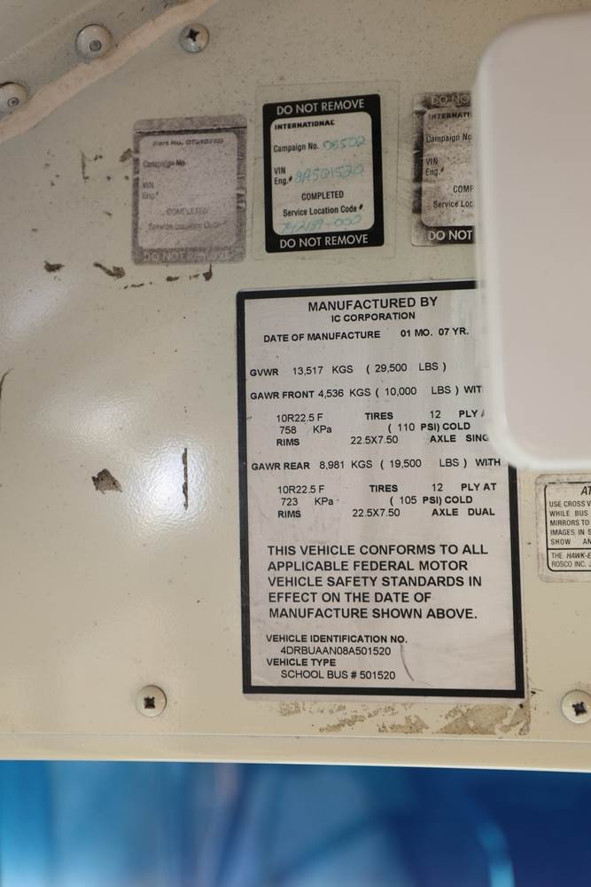 2008 IC Bus CE Series School Bus. VIN: 4DRBUAAN08A501520. Body: School Bus 1D. Engine: 7.6L I6 DI Diesel. Asset #: 119. Odometer reading: 212733. Seller reports: Does not operate, parts missing, Used for spare parts, must be towed, contents not included. Title & key available.