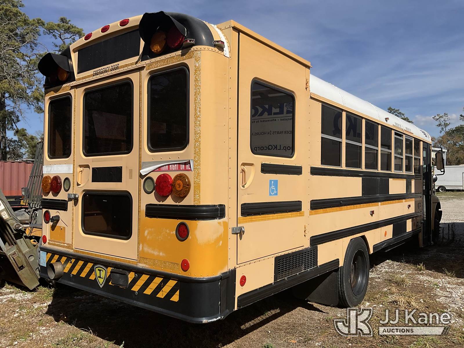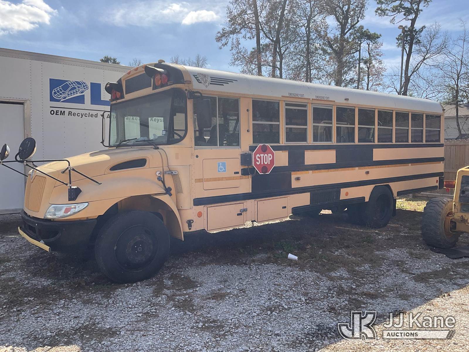 2008 International 3000 School Bus, 6.4L V8 DIESEL Auto, (177,640 miles) (Starts with a Jump, Runs, Does Not Move, Needs New Batteries; Per Seller, Has Oil Leak and must be repaired), (Must be towed or hauled away, no driveaway)) This is a Titled Item NOTE: This unit is being sold AS IS/WHERE IS via Timed Auction and is located in Spring, TX. (Buyer is responsible for removal. Assistance by consignor or JJ Kane Auctions is not assured.)