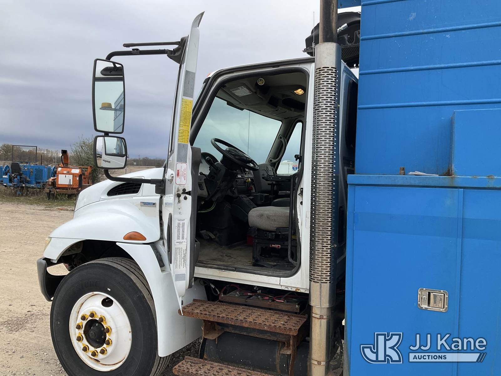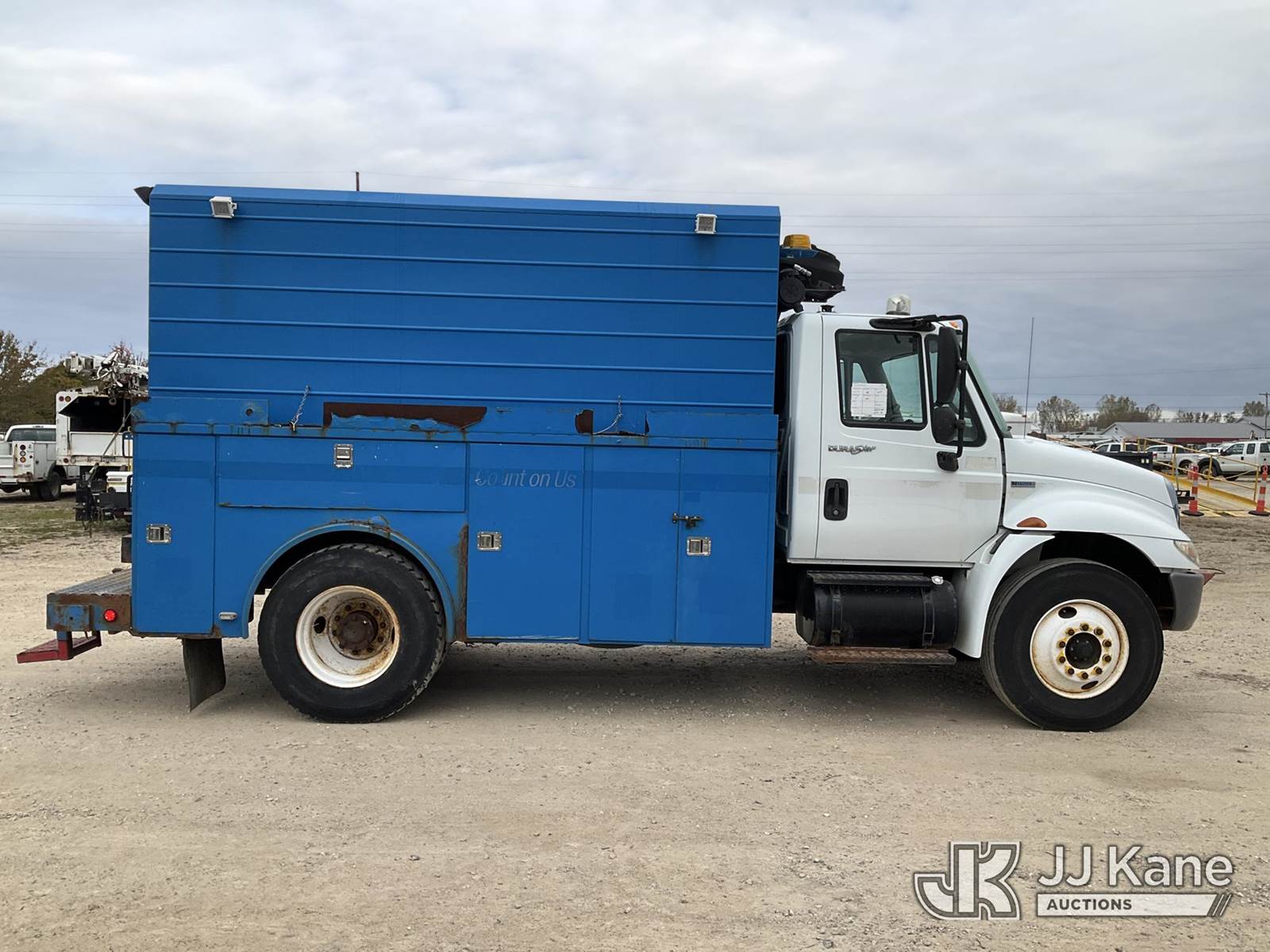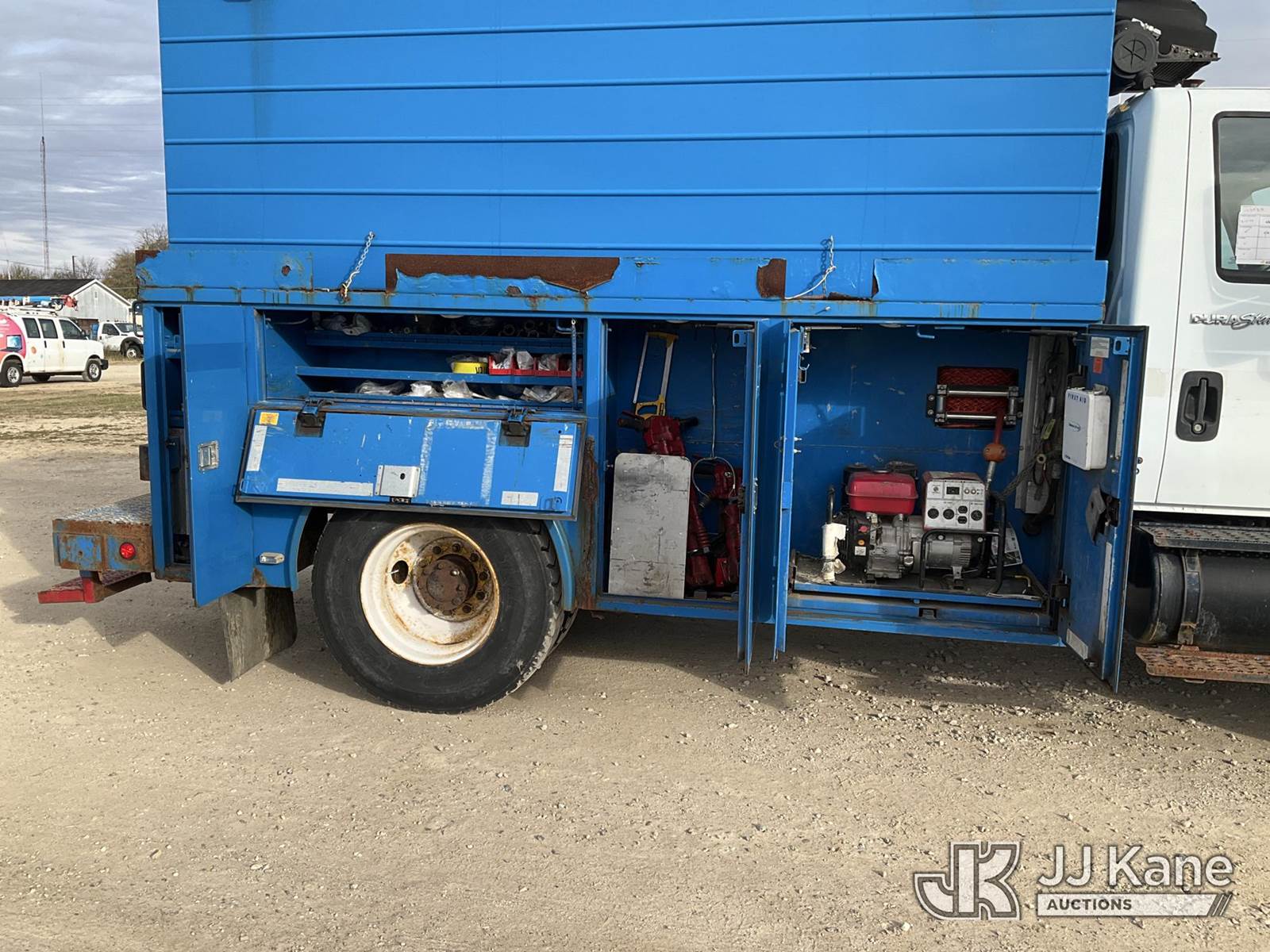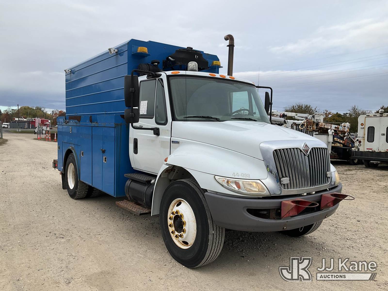 2008 International 4300 Air Compressor Utility Truck, MaxxForce Auto, diesel, with Honda generator - condition unknown, inverter, (145,251 miles) (Runs, Moves & Operates - Makes Air) (Jump To Start, ABS Light, Amber Warning Light) (Reads 13,717 hours) This is a Titled Item NOTE: This unit is being sold AS IS/WHERE IS via Timed Auction and is located in Charlotte, MI. For specific technical information or questions about this item, contact Corey Cook at (517) 983-0796 or corey.cook@jjkane.com (Monday through Friday 8:00 am to 4:00 pm EST). For load-out and pickup information, reference the hauler sheet sent out after purchase. These items are used and may contain defects that are not immediately detectable. Text descriptions and photos given are meant to be used as a guide only. The Buyer is responsible for inspecting the item before bidding. All information provided is believed to be correct but no warranty as such is either intended or implied. All items are sold AS IS - WHERE IS AND WITH ALL FAULTS AND DEFECTS THEREIN. (Buyer is responsible for removal. Assistance by consignor or JJ Kane Auctioneers is not assured.)