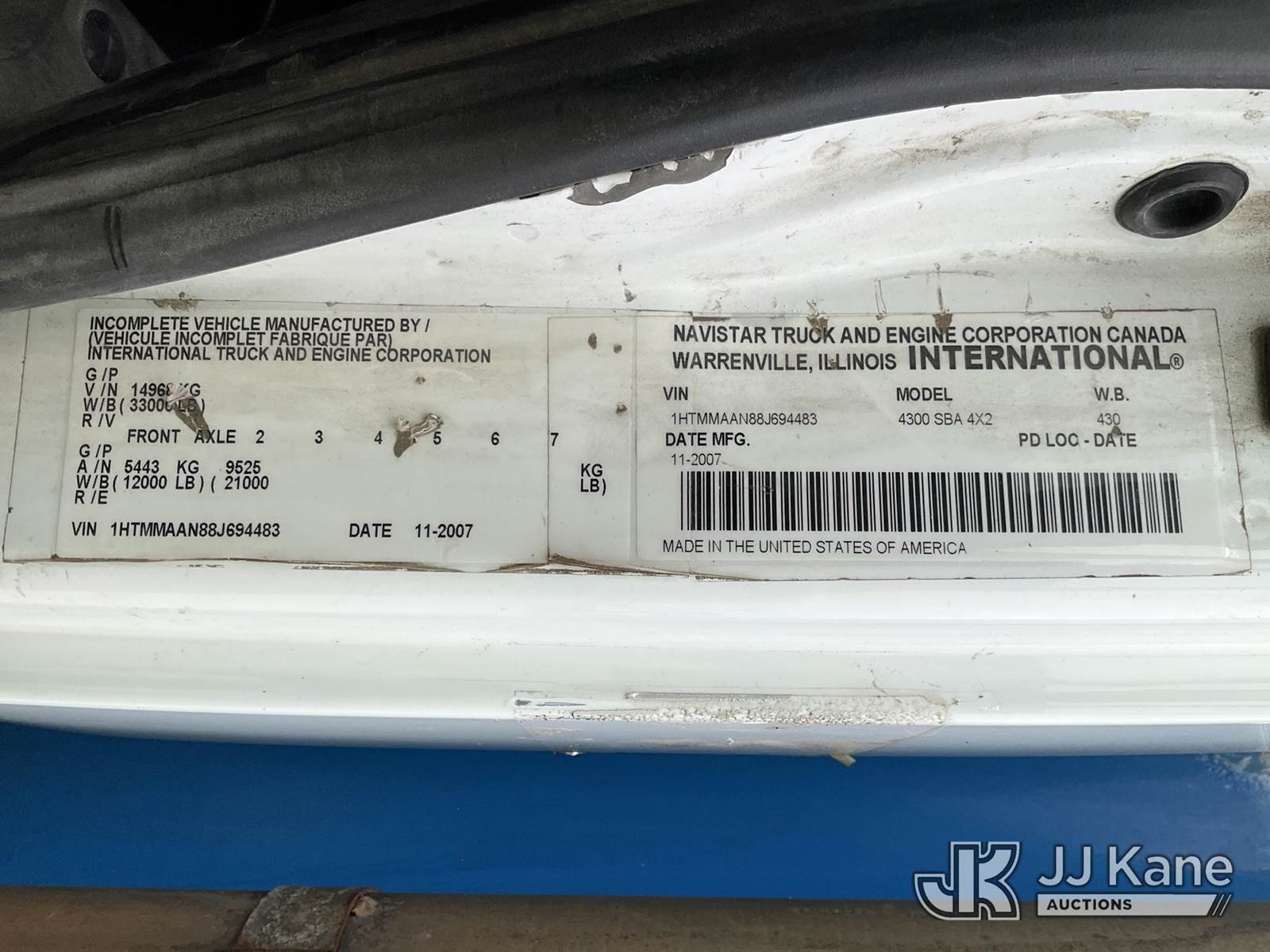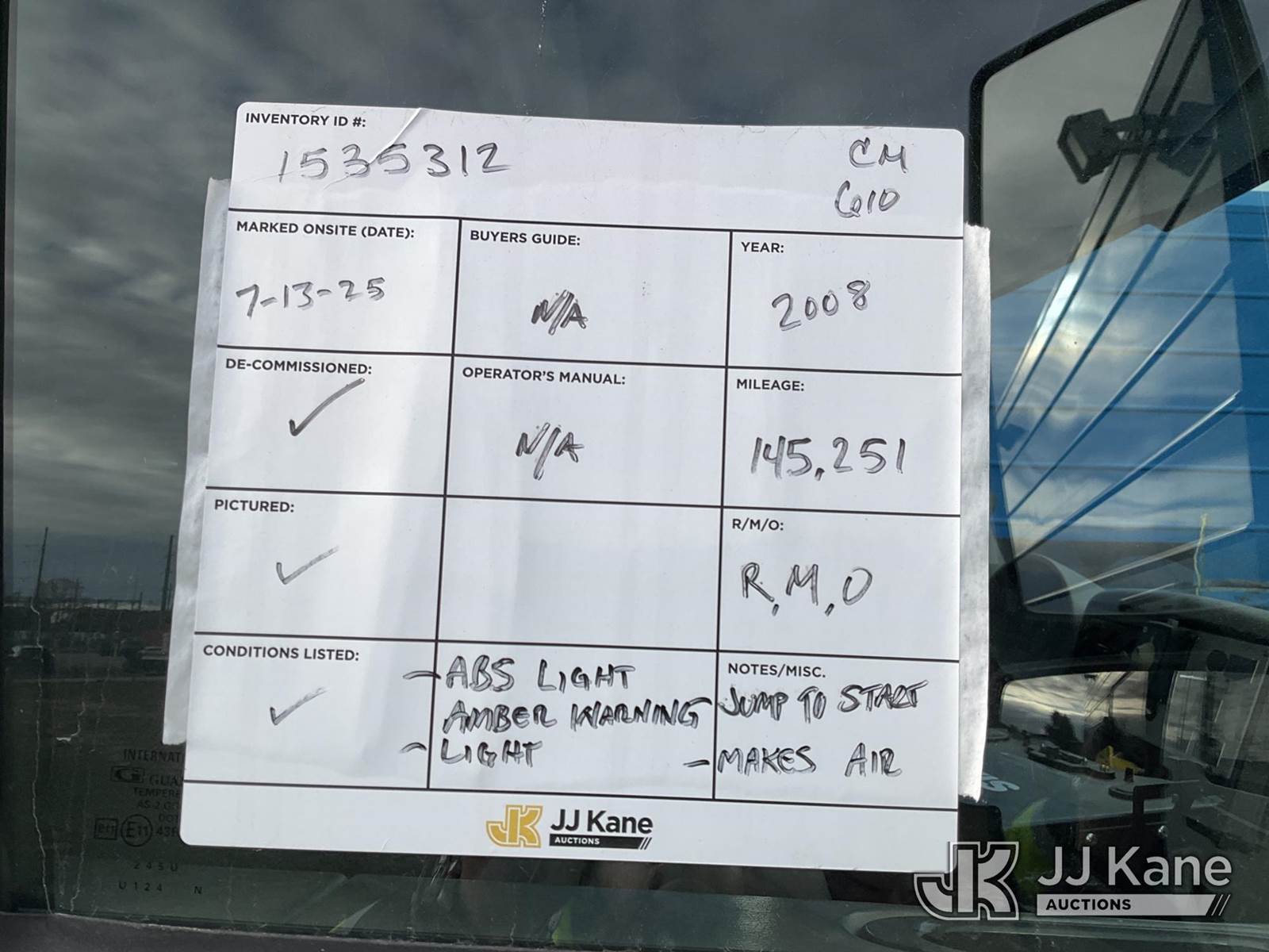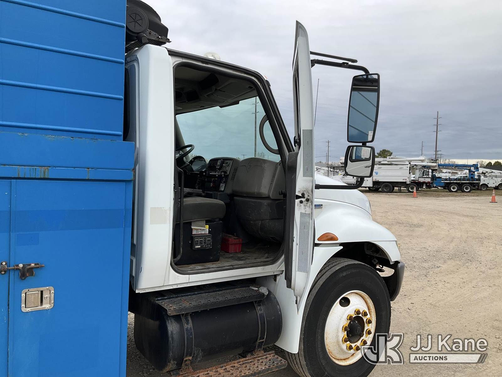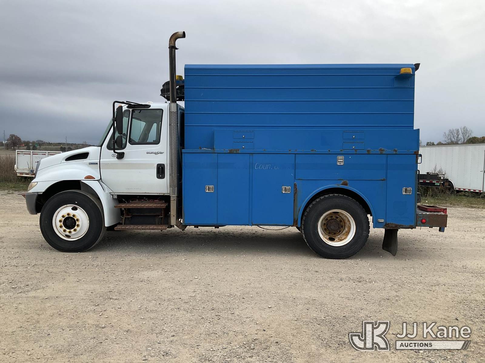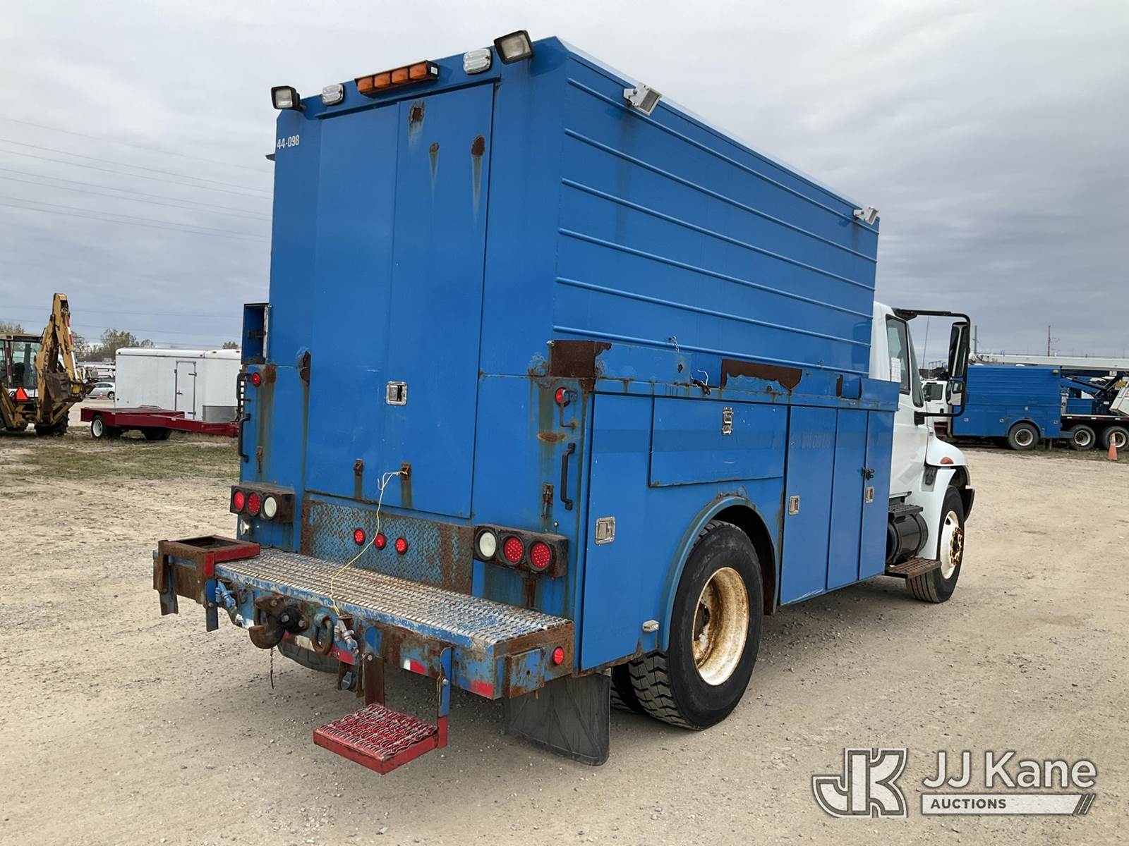 2008 International 4300 Air Compressor Utility Truck, MaxxForce Auto, diesel, with Honda generator - condition unknown, inverter, (145,251 miles) (Runs, Moves & Operates - Makes Air) (Jump To Start, ABS Light, Amber Warning Light) (Reads 13,717 hours) This is a Titled Item NOTE: This unit is being sold AS IS/WHERE IS via Timed Auction and is located in Charlotte, MI. For specific technical information or questions about this item, contact Corey Cook at (517) 983-0796 or corey.cook@jjkane.com (Monday through Friday 8:00 am to 4:00 pm EST). For load-out and pickup information, reference the hauler sheet sent out after purchase. These items are used and may contain defects that are not immediately detectable. Text descriptions and photos given are meant to be used as a guide only. The Buyer is responsible for inspecting the item before bidding. All information provided is believed to be correct but no warranty as such is either intended or implied. All items are sold AS IS - WHERE IS AND WITH ALL FAULTS AND DEFECTS THEREIN. (Buyer is responsible for removal. Assistance by consignor or JJ Kane Auctioneers is not assured.)