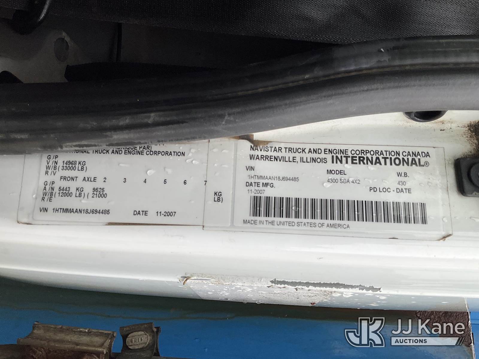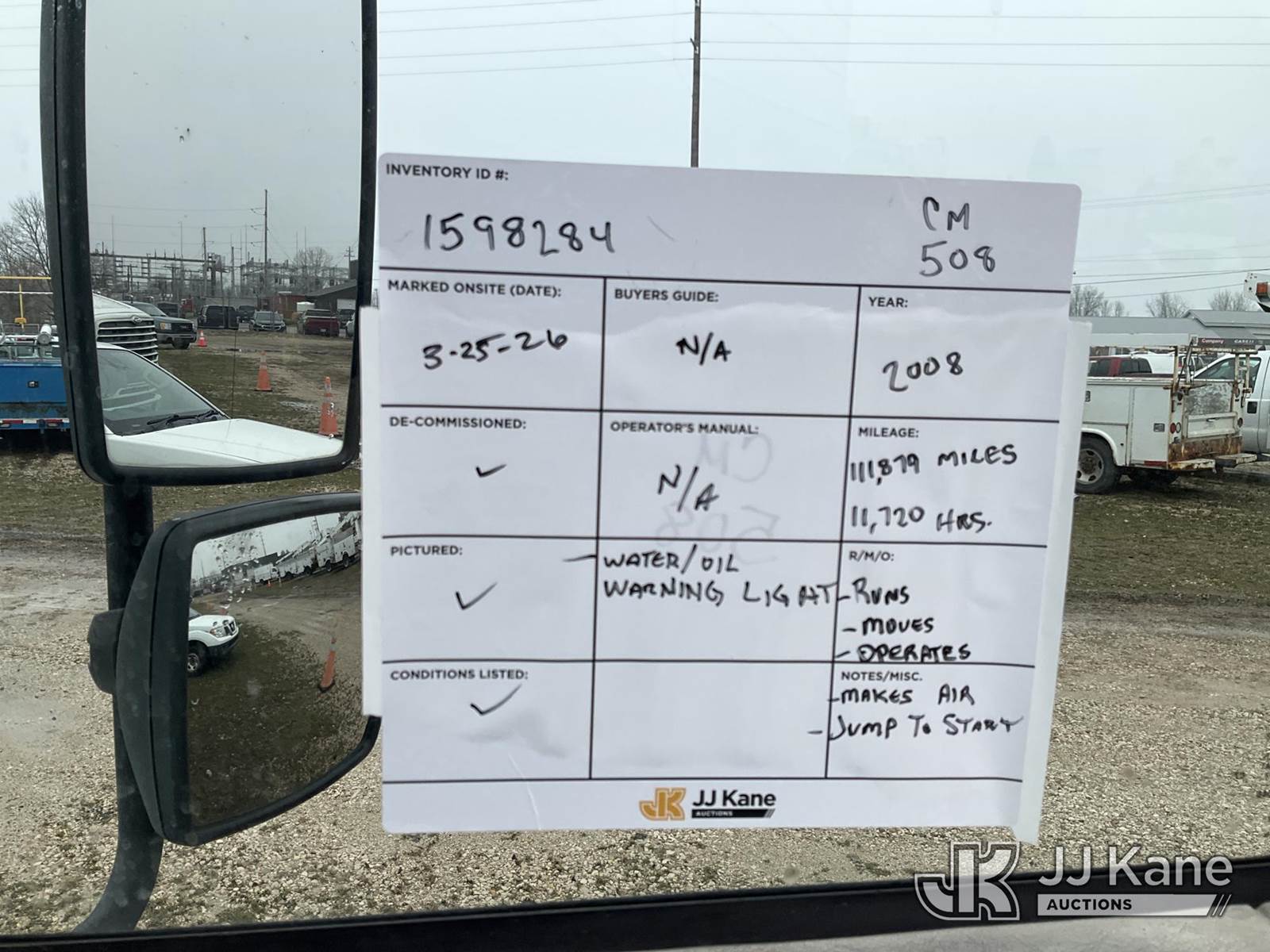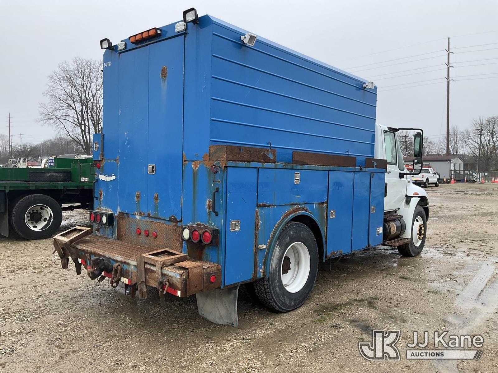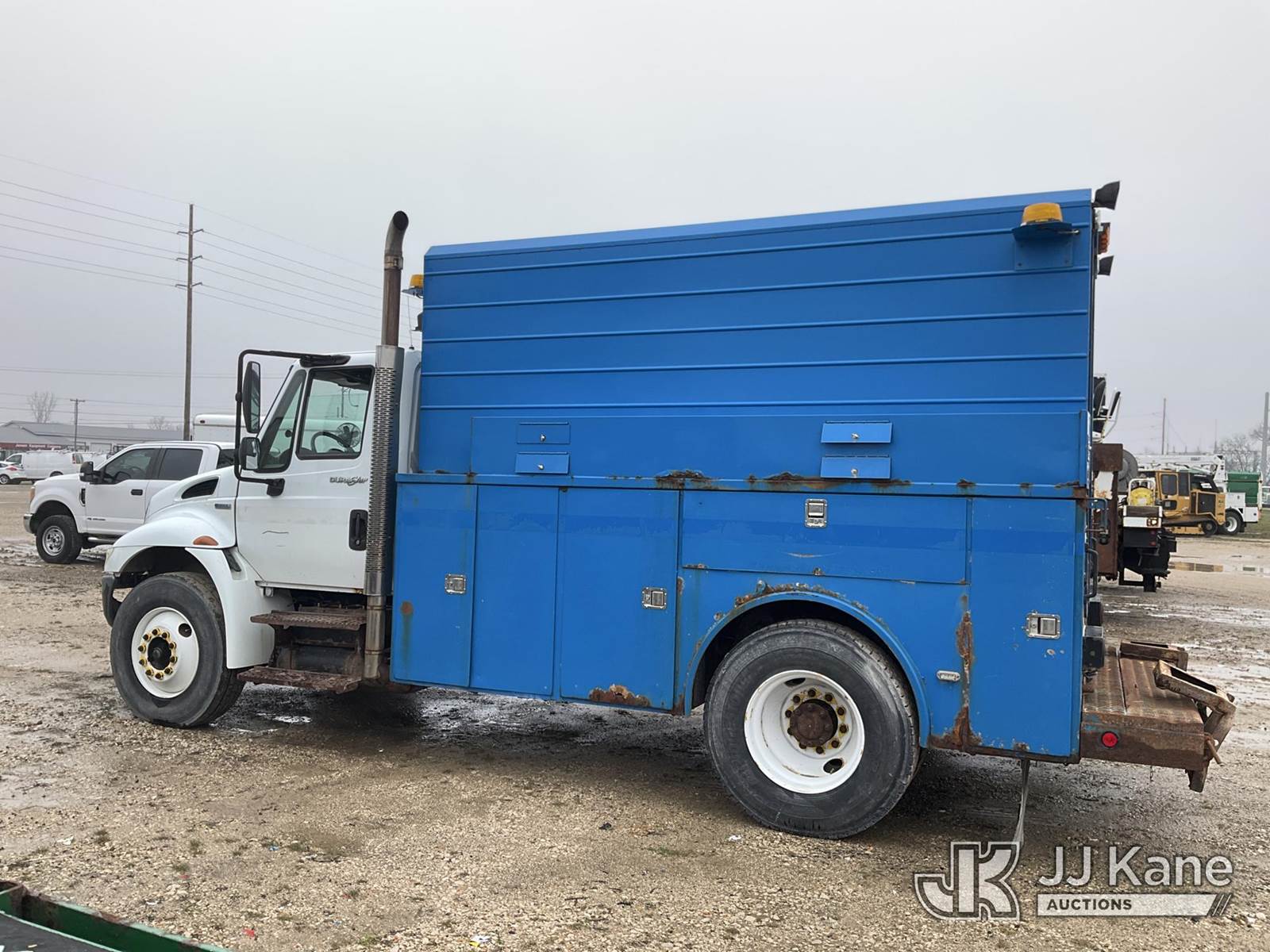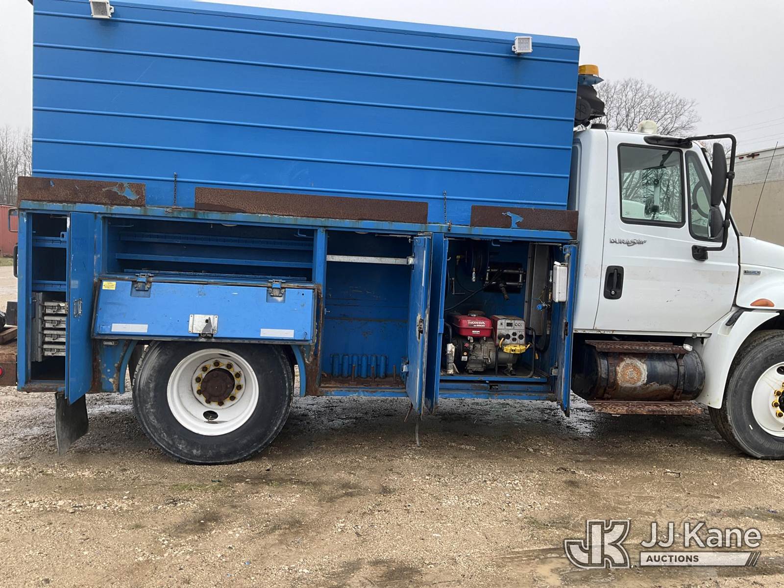 2008 International 4300 Enclosed Utility/Air Compressor Truck, 7.6L L6 4X2, DIESEL, Auto, with Honda EG3500 generator- condition unknown , (111,879 miles) (Runs, Moves, Makes Air)( Jump To Start, Water/ Oil Warning Light/Alarm, ) (Reads 11,720 hours) This is a Titled Item NOTE: This unit is being sold AS IS/WHERE IS via Timed Auction and is located in Charlotte, MI. Inspection & preview days for this unit are the 2 business days prior to the first day of items closing for this auction, item is located at 750 Island Hwy Charlotte, MI 48813 and hours of operations are 8a-4p. For pre-sale questions, please contact Corey Cook at (517) 983-0796 or corey.cook@jjkane.com (Buyer is responsible for removal. Assistance by consignor or JJ Kane Auctions is not assured.)
