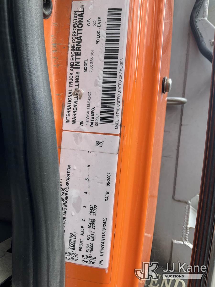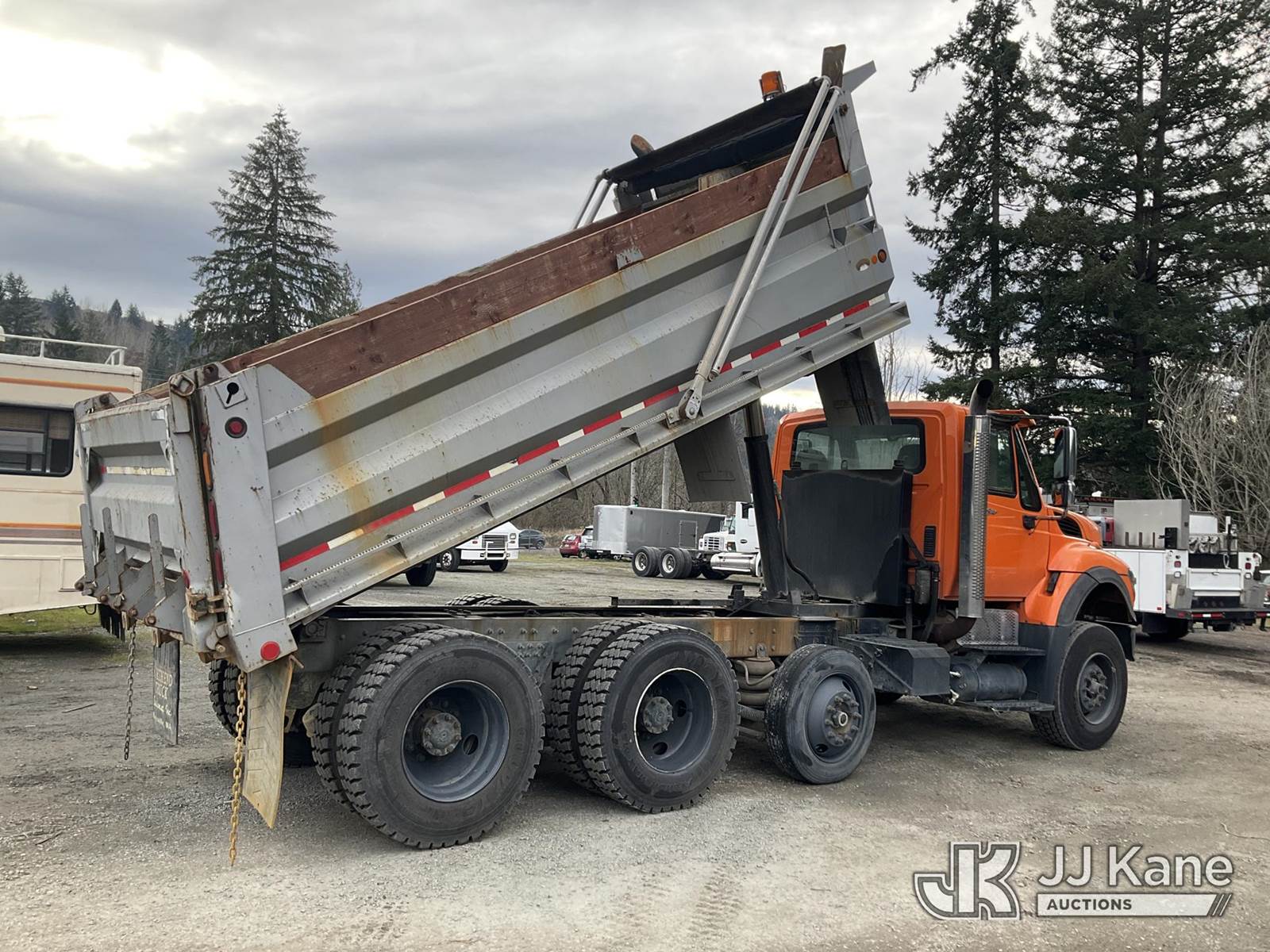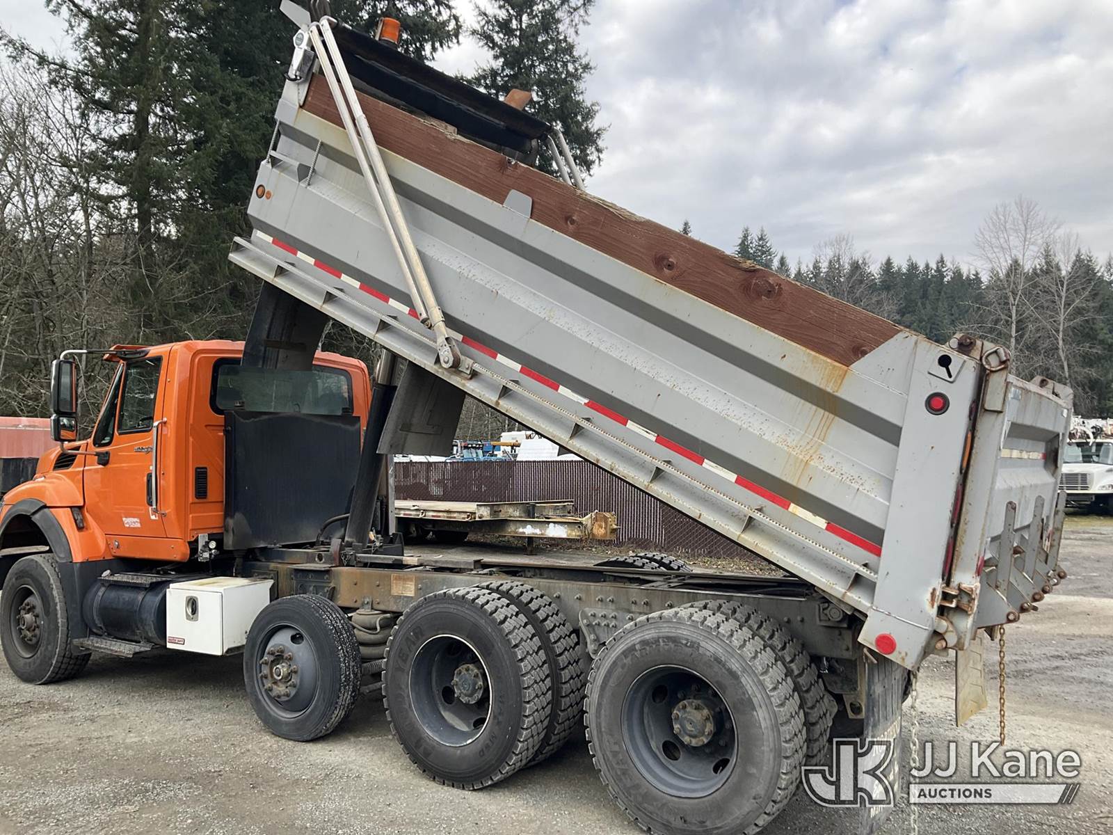 2008 International 7600 T/A Dump Truck, 10.8L diesel, Auto, A/C, with air lift axle, tarp cover, (55,078 miles) (Runs, Moves & Dump Operates) This is a Titled Item NOTE: This unit is being sold AS IS/WHERE IS via Timed Auction and is located in Eatonville, WA. Inspection & preview days for this unit are by appointment only; please contact us at contact@jjkane.com or 84-Go-JJKane for more details. (Buyer is responsible for removal. Assistance by consignor or JJ Kane Auctions is not assured.)