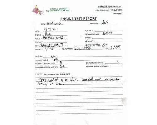 MAXXFORCE DT, 230 HP, S/N 466HM2U3013097, 209,387 Odometer Miles. Runs Good. See Video And Test Report