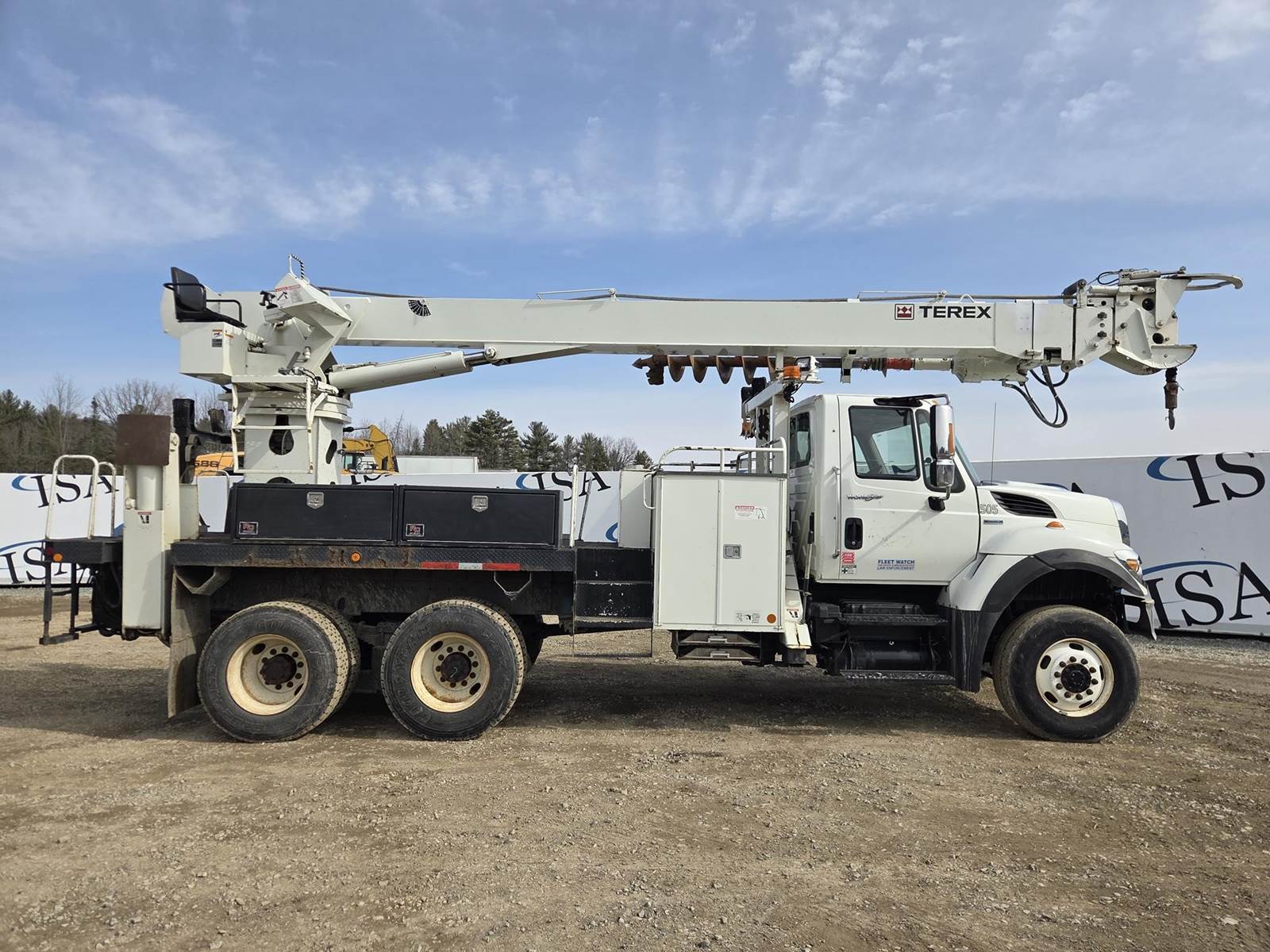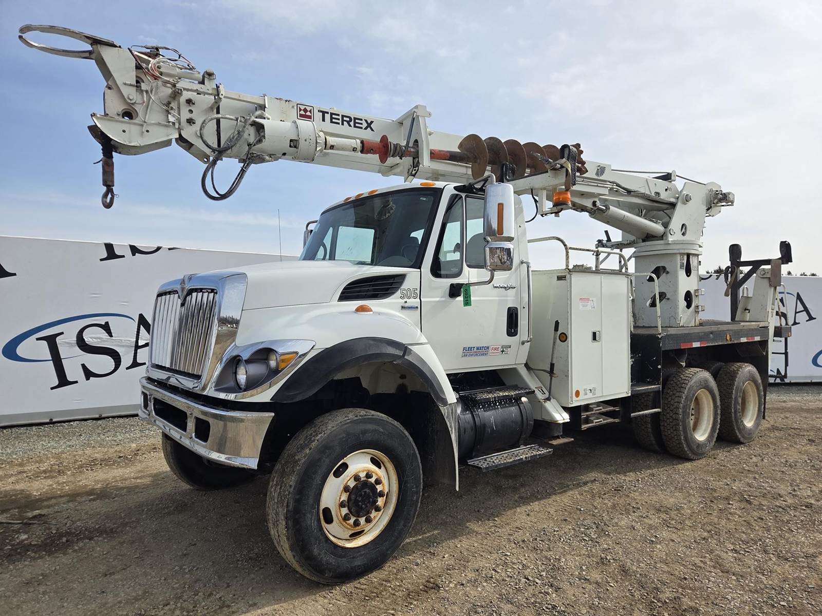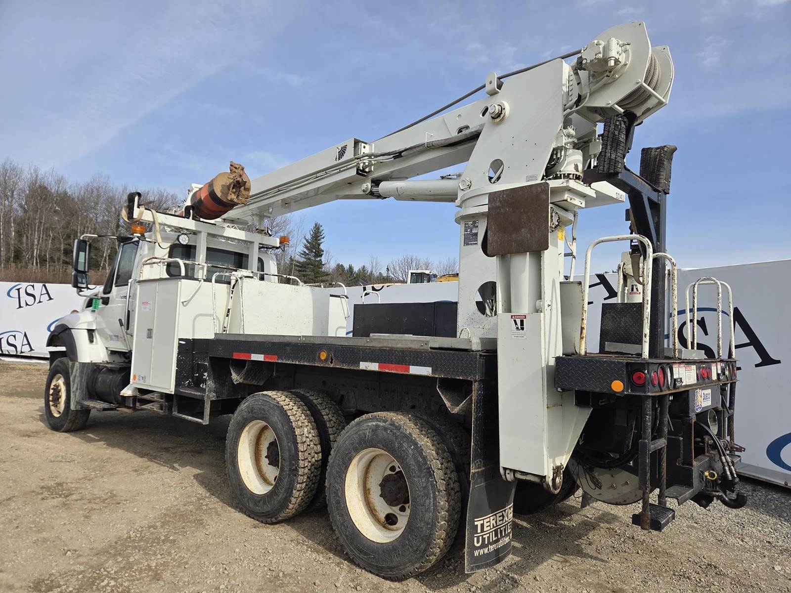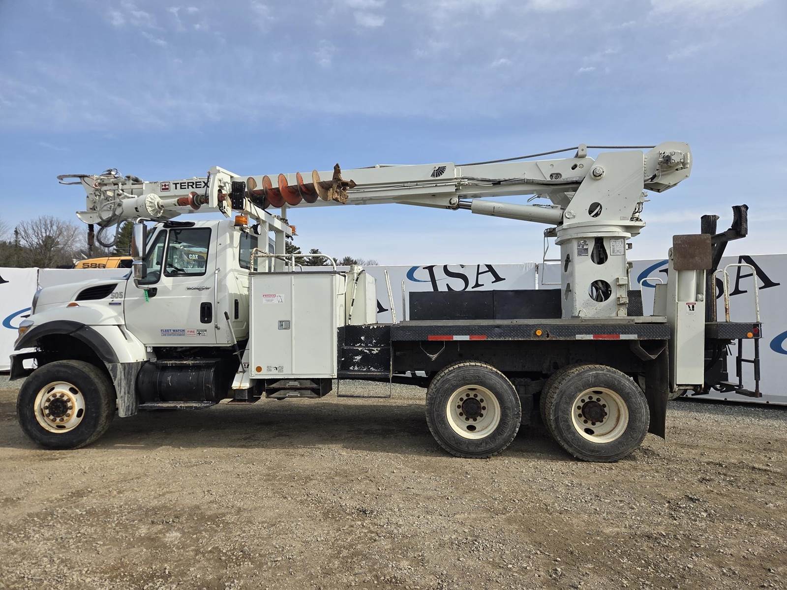 MaxxForce GDT300 Turbo Diesel Engine, Allison Automatic Transmission, Full Lockers, PTO, 56000LB GVWR, 16000LB Front Axle GAWR, Spring Ride Suspension, Double Frame, (4) Tool Cabinets, (4) Outriggers, Terex Commander C6060 Digger Derick, Approx. 16" Auger, Rear Air Couplers, Rear Auxiliary Hydraulics, Pintle Hitch, Heat/AC, Radio, Cruise Control, 315/80R22.5 Front Tires, 11R22.5 Rear Tires, Service Records and Owners Manual in Office