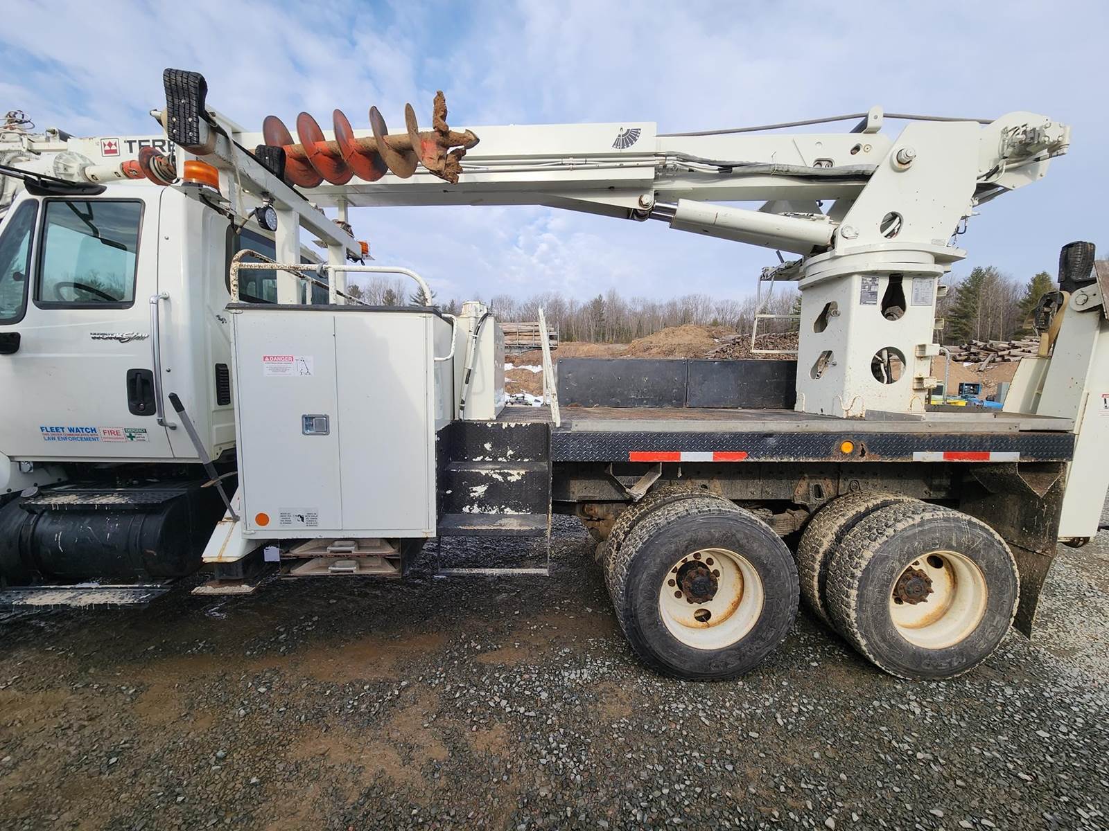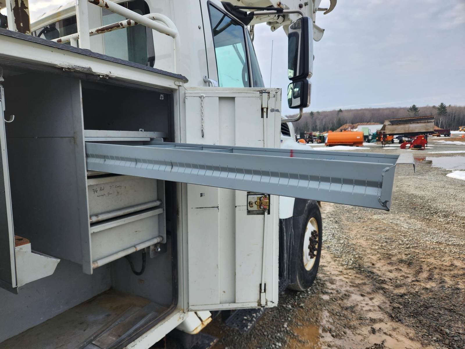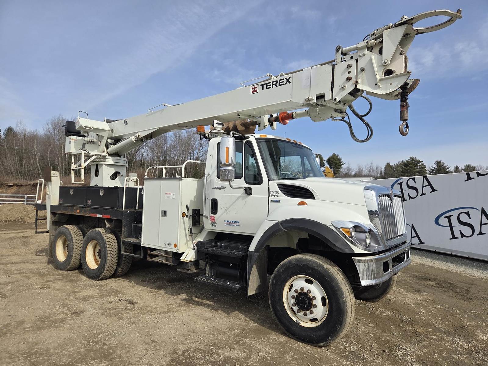MaxxForce GDT300 Turbo Diesel Engine, Allison Automatic Transmission, Full Lockers, PTO, 56000LB GVWR, 16000LB Front Axle GAWR, Spring Ride Suspension, Double Frame, (4) Tool Cabinets, (4) Outriggers, Terex Commander C6060 Digger Derick, Approx. 16" Auger, Rear Air Couplers, Rear Auxiliary Hydraulics, Pintle Hitch, Heat/AC, Radio, Cruise Control, 315/80R22.5 Front Tires, 11R22.5 Rear Tires, Service Records and Owners Manual in Office