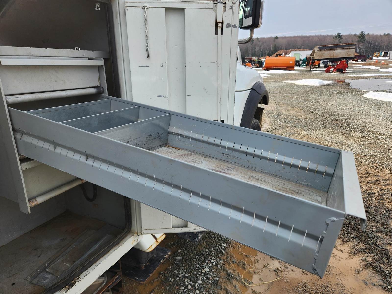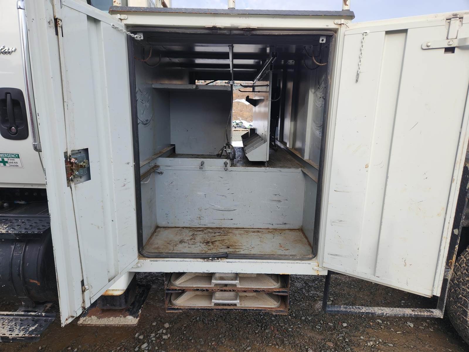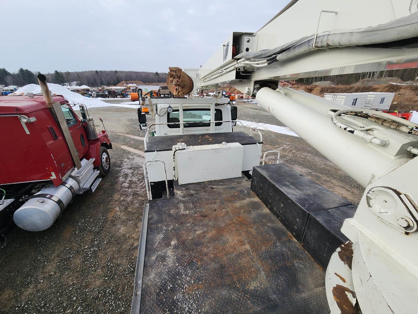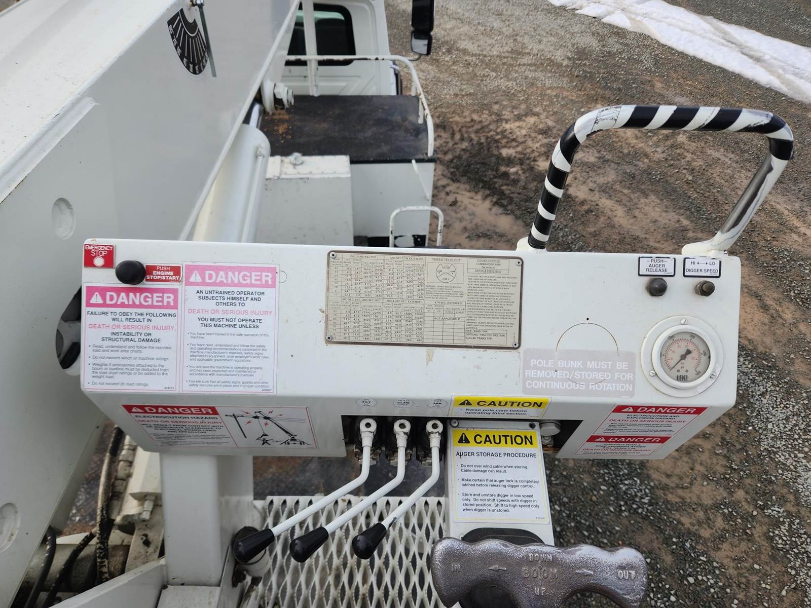 MaxxForce GDT300 Turbo Diesel Engine, Allison Automatic Transmission, Full Lockers, PTO, 56000LB GVWR, 16000LB Front Axle GAWR, Spring Ride Suspension, Double Frame, (4) Tool Cabinets, (4) Outriggers, Terex Commander C6060 Digger Derick, Approx. 16" Auger, Rear Air Couplers, Rear Auxiliary Hydraulics, Pintle Hitch, Heat/AC, Radio, Cruise Control, 315/80R22.5 Front Tires, 11R22.5 Rear Tires, Service Records and Owners Manual in Office