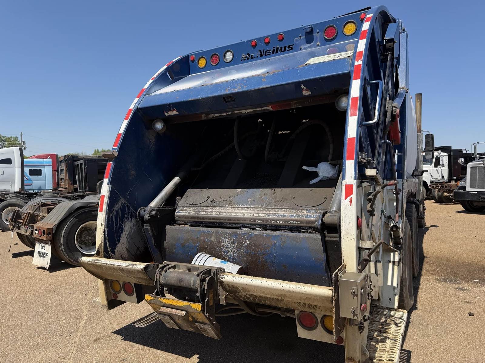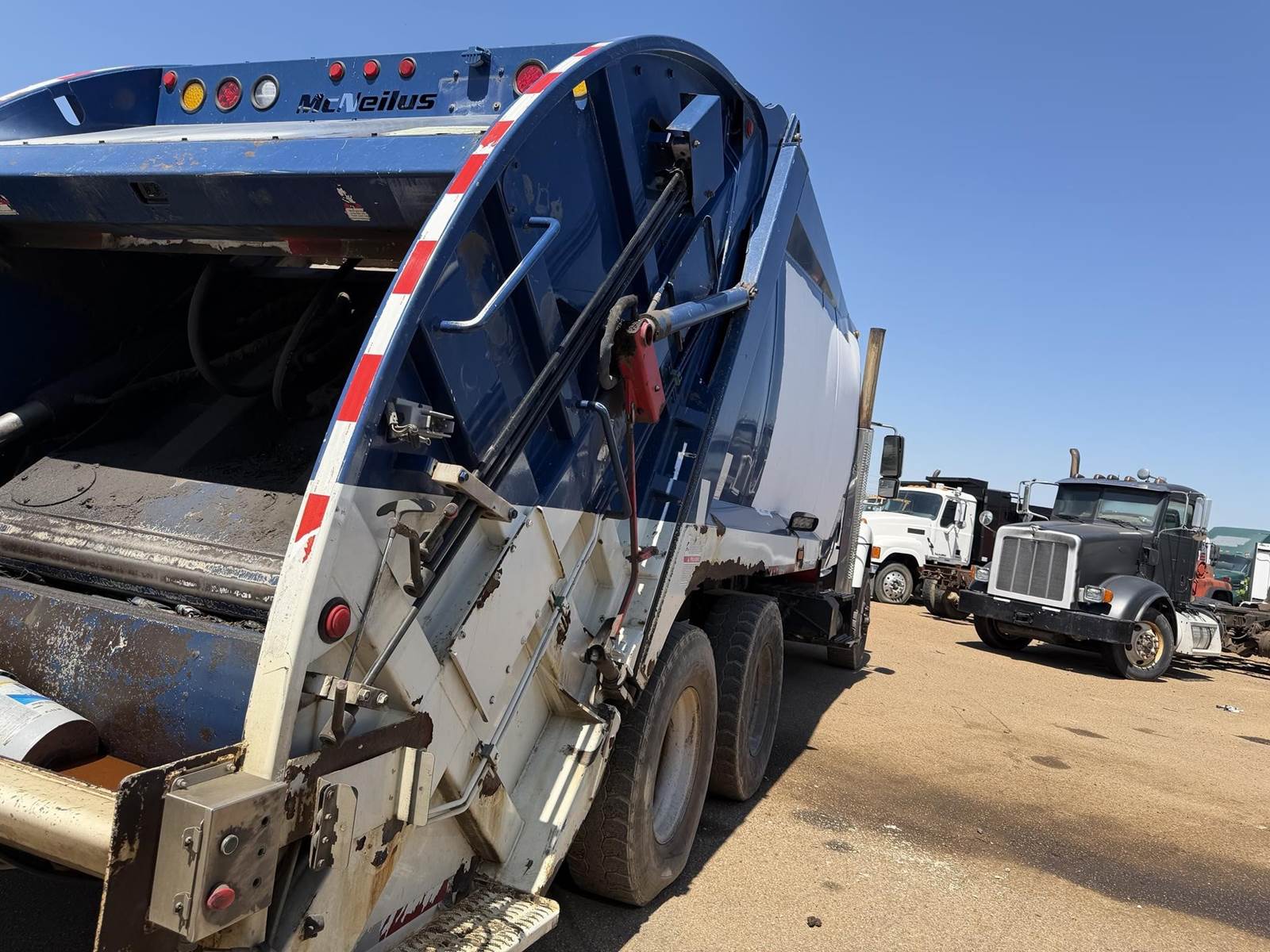 RUNS AND OPERATES, McNELIUS REAR LOAD BODY, DOUBLE FRAME, CART TIPPER, DIFFERENTIAL LOCK!