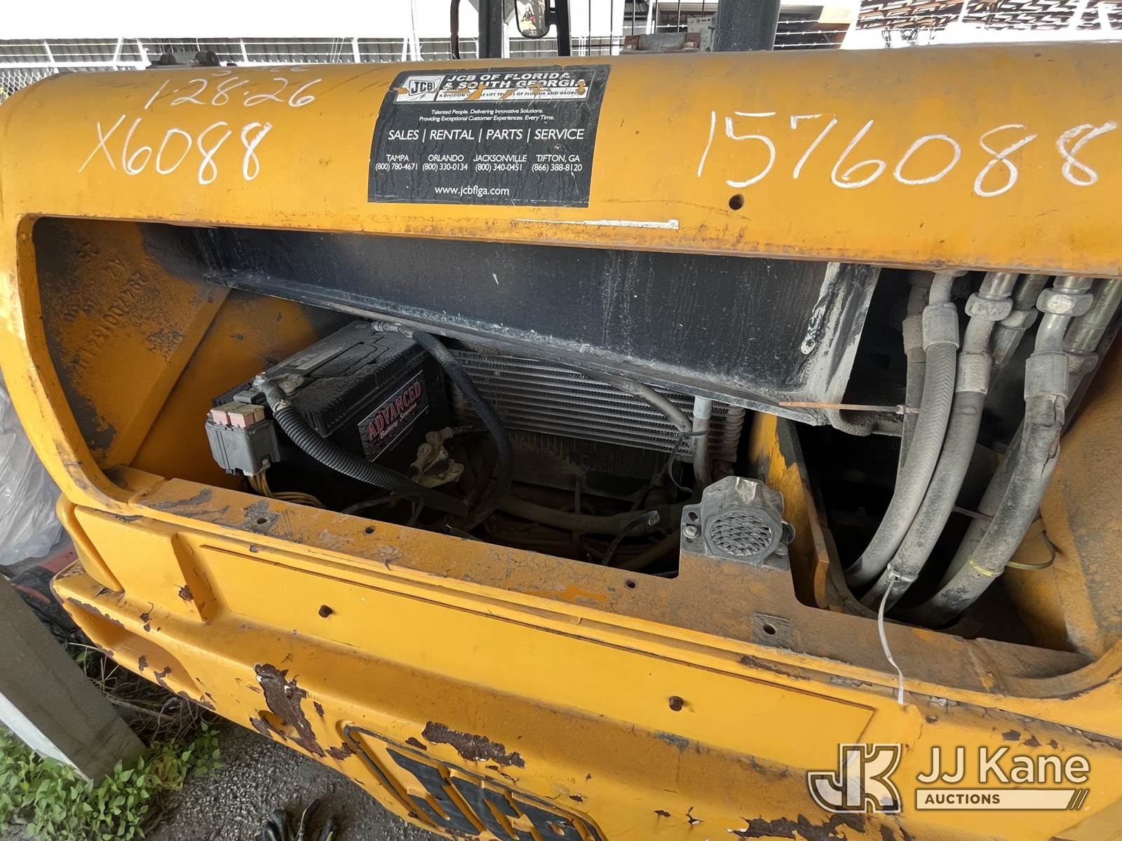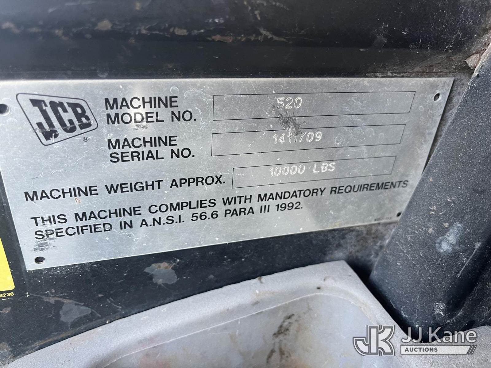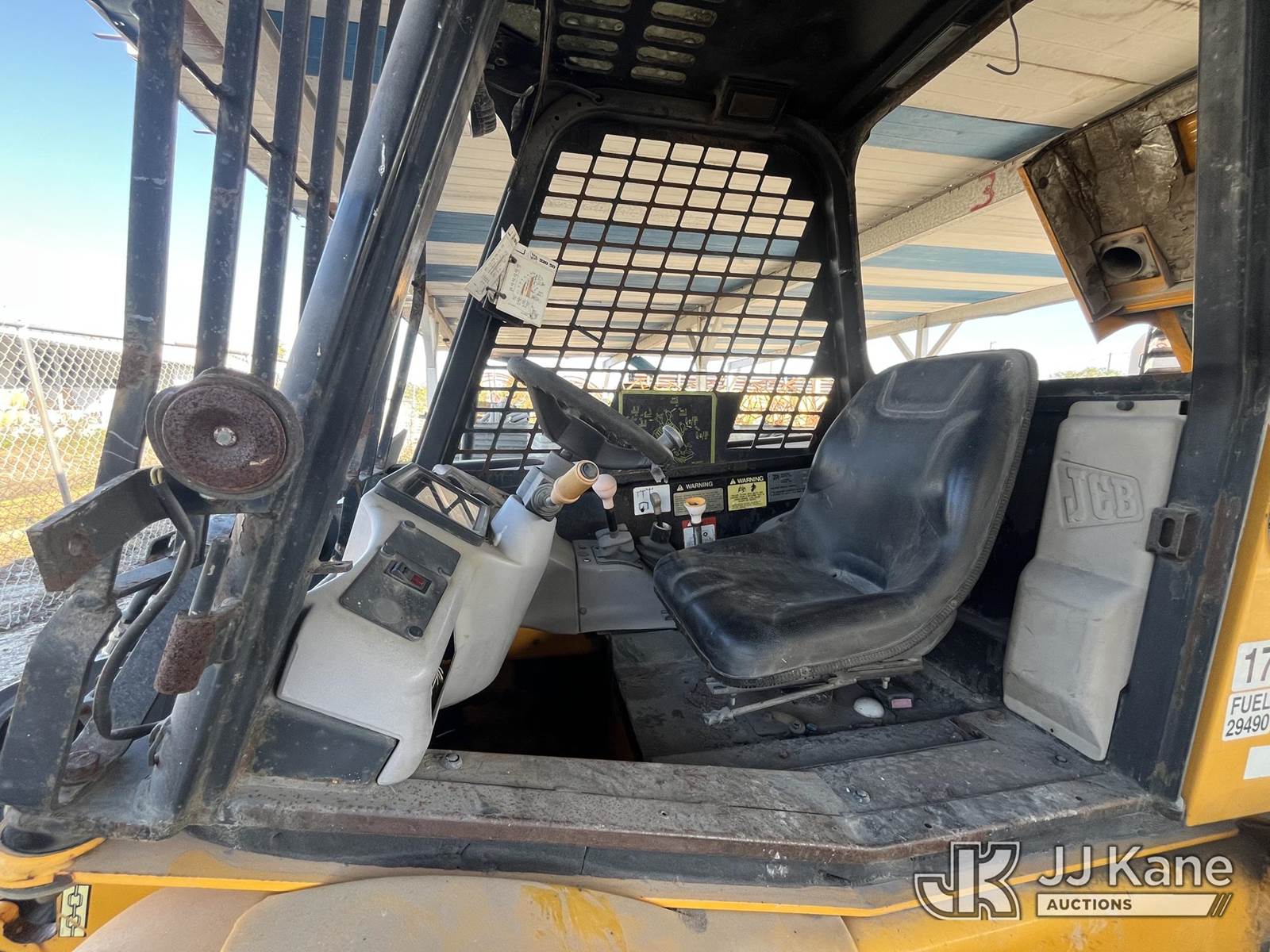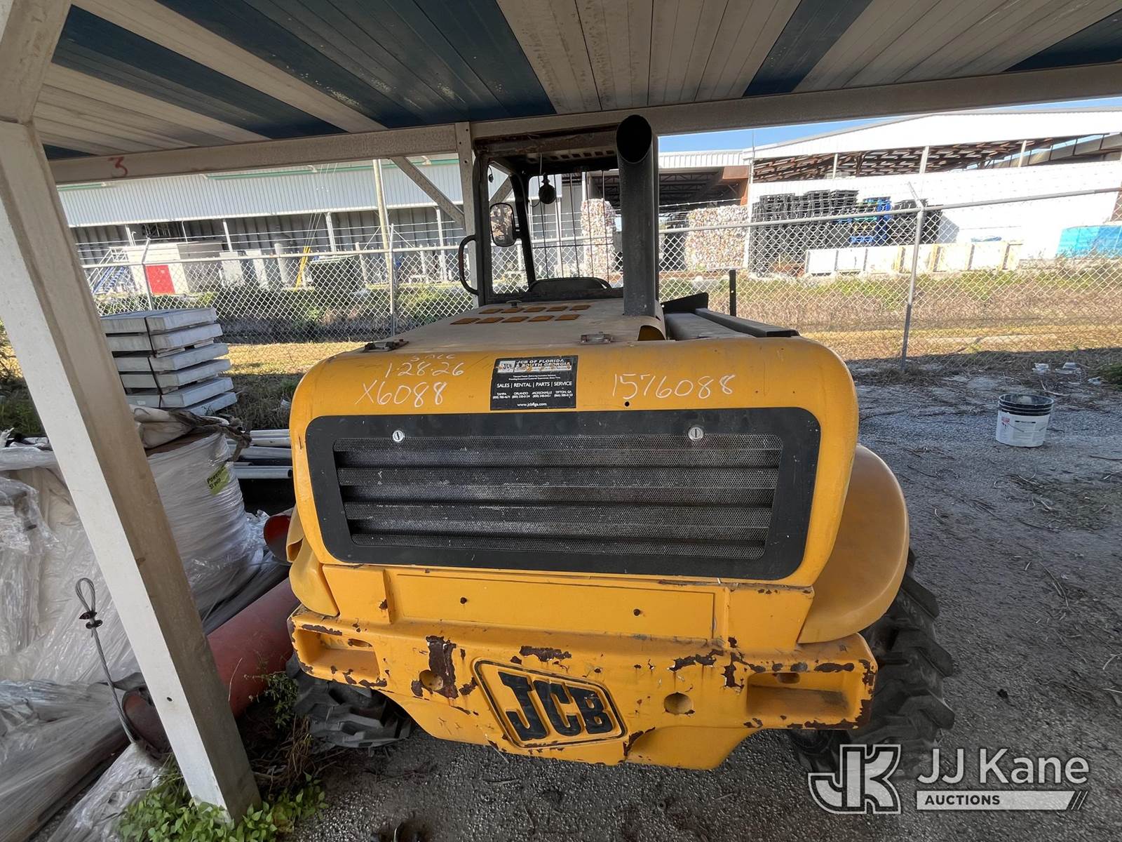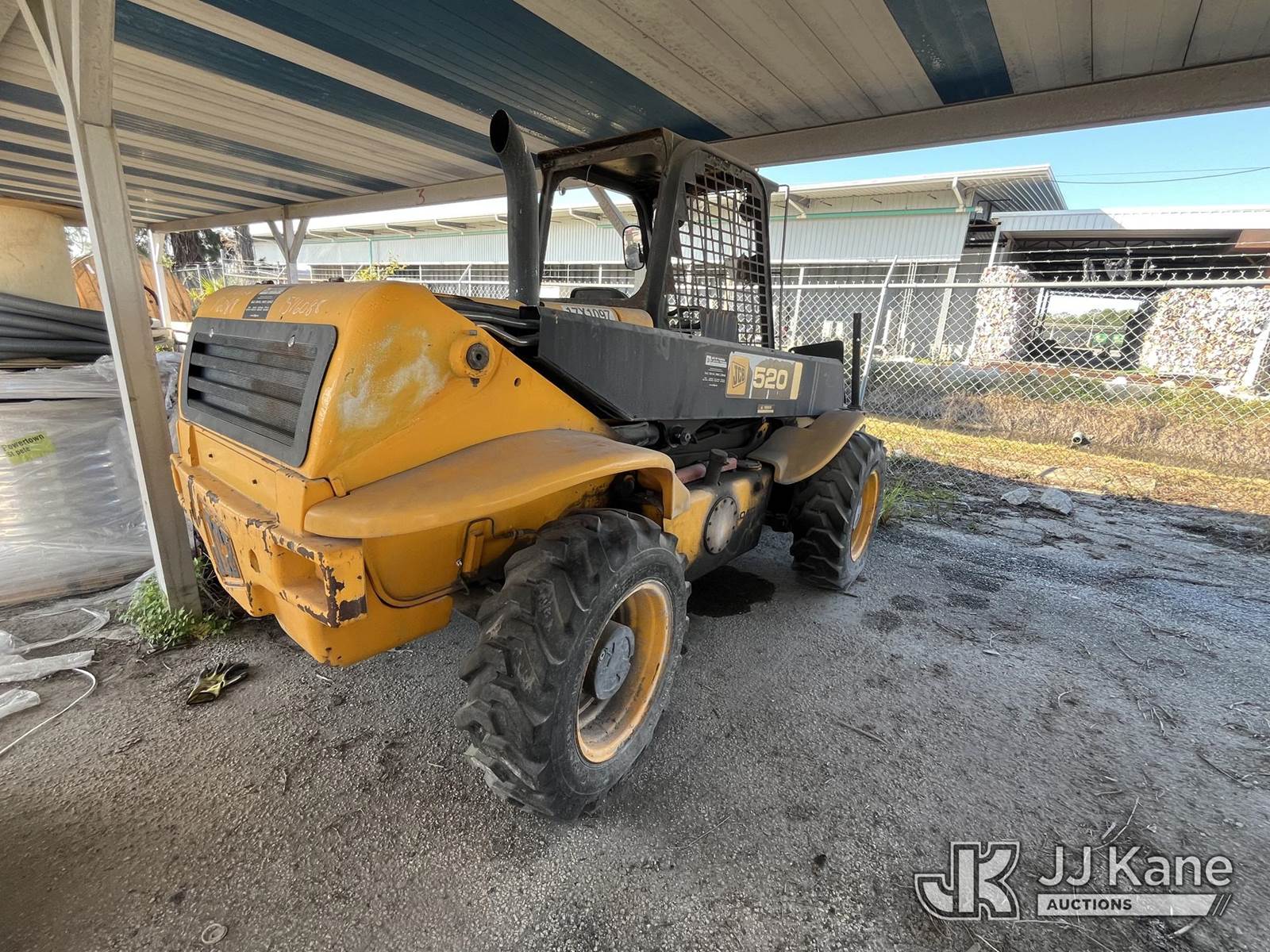 2008 JCB 520 Rough Terrain Telescopic Boom Forklift, s/n 1411709, Shuttle, diesel, with 4,400lb. lift capacity, (Runs, Operating Condition Unknown) (Body Damage, Needs Battery, Jump To Start, Class 2 Hydraulic Leak) (Per Seller: Major Hydraulic Issues, Needs New Lift Cylinders And Hoses. Injector Issues. Buyer Must Load Without Assistance Of Seller) (Reads 3,806 hours) NOTE: This unit is being sold AS IS/WHERE IS via Timed Auction and is located in Pinellas Park, FL. Inspection & preview days for this unit are by appointment only; please contact us at contact@jjkane.com or 84-Go-JJKane for more details. (Buyer is responsible for removal. Assistance by consignor or JJ Kane Auctions is not assured.)