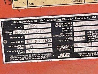 40 ft Max Lift Height, 1000 lb Max Weight Capacity, Power to Platform, Onboard Generator, 4 Cylinder Diesel Engine, 12-16.5 Tires. 4,246 hrs. Please take a good look at the pictures and call with any questions.