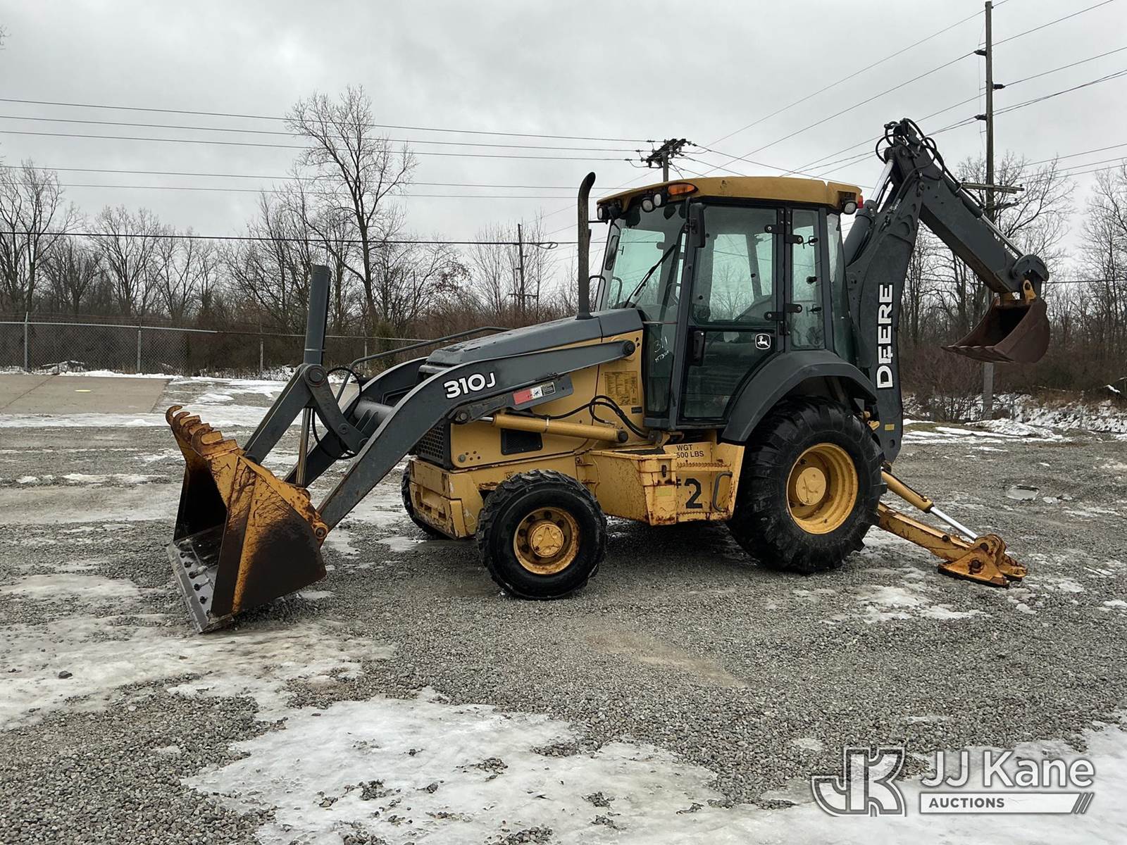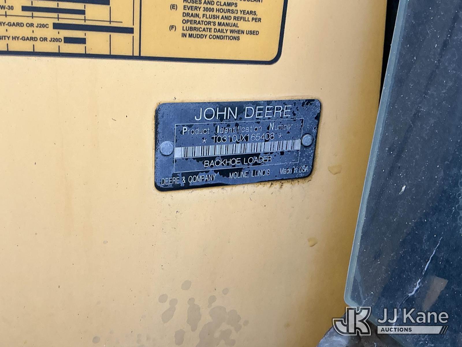 2008 John Deere 310J Tractor Loader Backhoe, s/n T0310JX165408, J.D. diesel, powershift, with GP bucket & EROPS w/A/C, (Runs, Moves & Operates) (Reads 3,020 hours) NOTE: This unit is being sold AS IS/WHERE IS via Timed Auction and is located in Fort Wayne, IN. For more information & removal arrangements please contact Office Staff @ (260) 450-9822. Load out by appointment only, Buyer/Hauler must present copy of paid invoice upon arrival. Purchaser acknowledges ALL lots must be removed within (10) business days of Auction, or a storage fee may be incurred. For load out and pick up information, please reference the hauler sheet sent out after purchase. (Buyer is responsible for removal. Assistance by consignor or JJ Kane Auctions is not assured.)