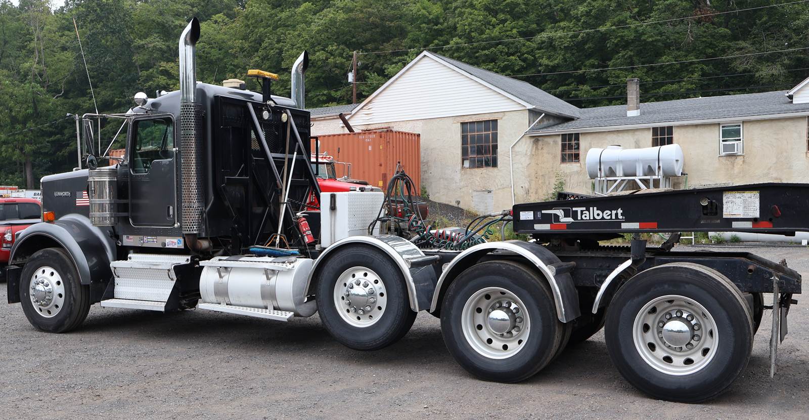 2008 Kenworth W900 Tri-Axle Heavy Haul Truck. 512,813 Miles. CAT C-15 700hp,18 Speed Eaton Manual Transmission, Air Ride Suspension, GVWR 70,220, Axle Rating- Front- 13,200, Steerable Drop Axle- 11,020, Rears 46,000. Wet Line Kit, Headache Rack, Locking Differentials and Air Ride Cab. 295" Wheelbase, Call today!