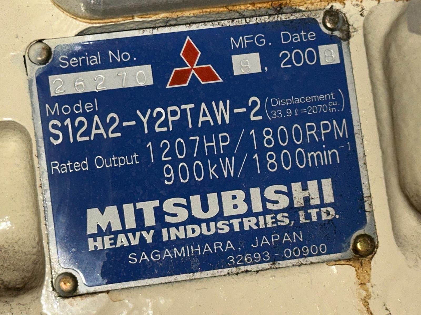 Kohler 800 kW standby (725 kW prime) diesel generator set, model 800REOZMB, SN-2231580. Mitsubishi S12A2-Y2PTAW-2 engine rated 1120 HP at 1800 RPM, SN-26270, EPA Tier 2 emissions. 3/60/277/480V, 12 lead reconnectable to other voltages. 1200 Amp main-line circuit breaker. PMG - permanent magnet generator. UL2200 listed stationary engine generator assembly. Decision-Maker 550 digital control panel. Battery charger. Coolant heater. Weather enclosure. 1500 gallon UL listed sub-base fuel tank with secondary containment. 528 Hrs. Year 2008. Passed load test 1/22/2026. Overall dimensions enclosure 96W x 393L x 132H approx 30,000 lbs, tank 96W x 403L x 36H approx 10,000 lbs. FOB Waukesha, WI