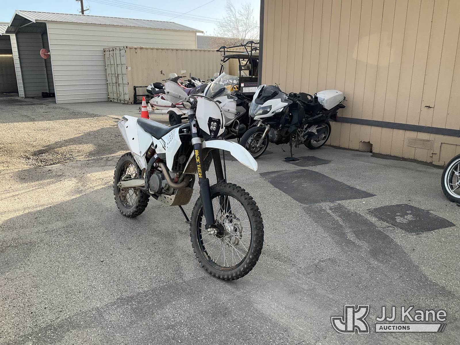 2008 KTM 450 XC Motorcycle, 1-cyl Gas, manual, (4,244 miles) (Runs, Operation Unknown) (Missing Plastic Parts, Needs New Battery) This is a Titled Item NOTE: This unit is being sold AS IS/WHERE IS via Timed Auction and is located in Jurupa Valley, CA. Inspection & preview days for this unit are the 2 business days prior to the first day of items closing for this auction, item is located at 4510 Muth Way Jurupa Valley, CA 92509 and hours of operations are 8a-4p. For pre-sale questions, please contact please contact Office Staff @ (310) 353-7140. Dealer License Number 45696. (Buyer is responsible for removal. Assistance by consignor or JJ Kane Auctions is not assured.)