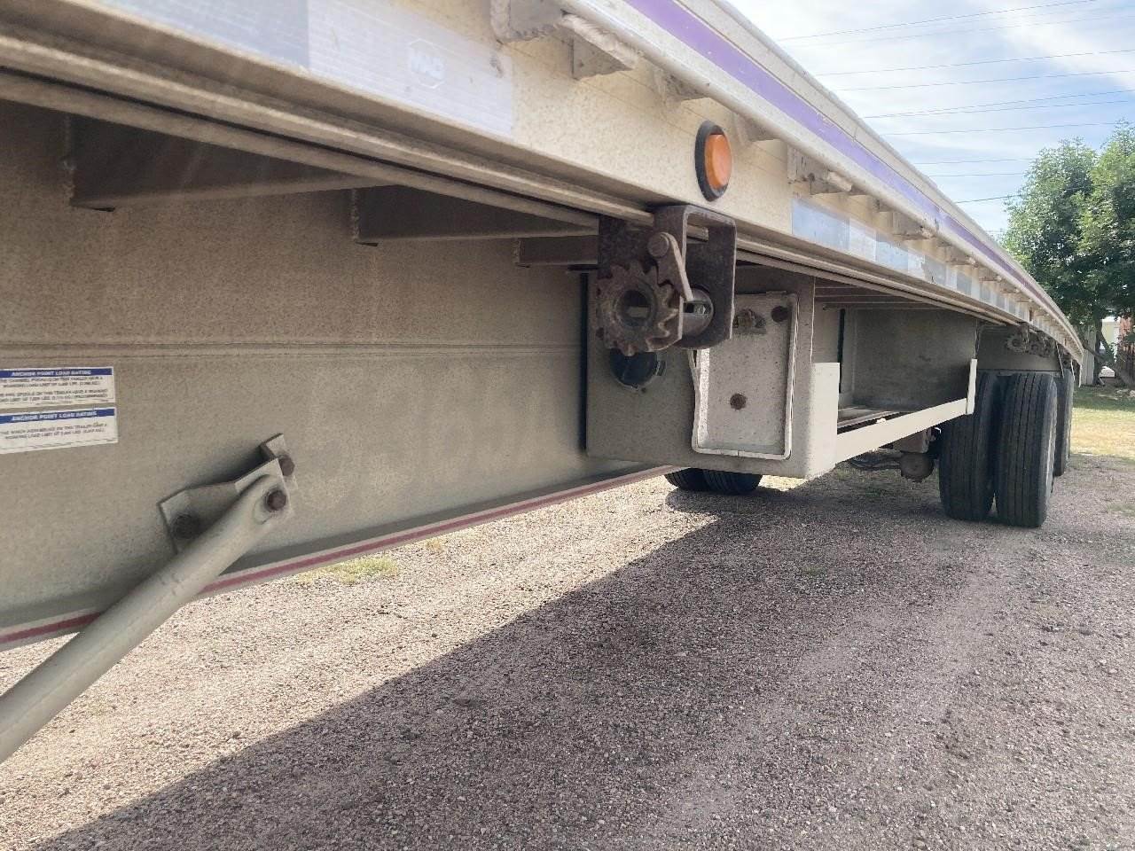 All Aluminum 53' x 102" Mac Flatbed Trailer, in Excellent Condition, 285/75R22.5 Tires and Air Brakes are at 75%, Air Ride, Tandem Spread Axle, 80,000 GVW, 36" Pin, Aluminum Floor, 20 Winches