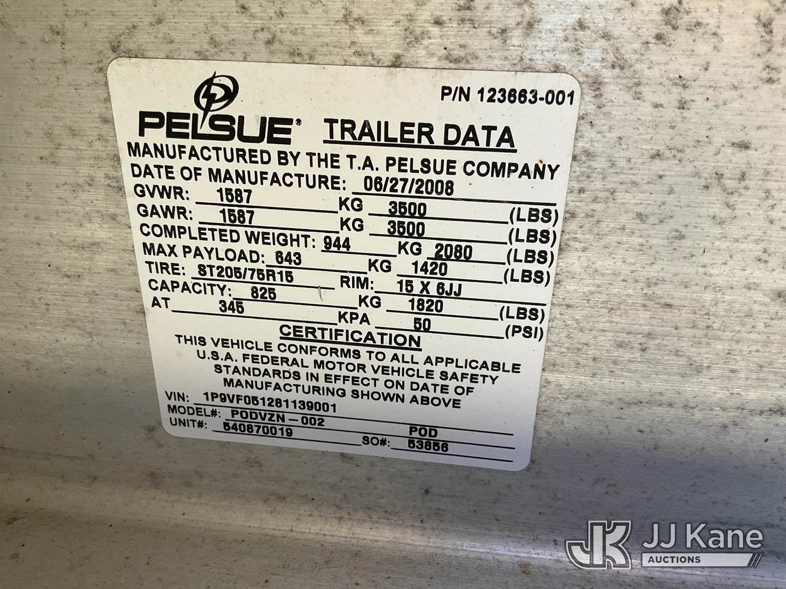 2008 Pelsue PODVZN002 Cable Splicing Trailer, with GVWR: 3,500 LBs) (Roof top A/C, Cummins Onan generator, (Generator Runs) This is a Titled Item NOTE: This unit is being sold AS IS/WHERE IS via Timed Auction and is located in Shrewsbury, MA. Inspection & preview days for this unit are the 2 business days prior to the first day of items closing for this auction, item is located at 11 Fortune Blvd Shrewsbury, MA 01545 and hours of operations are 8a-4p. For pre-sale questions, please contact Rob Gifford @ (508) 864-4126. (Buyer is responsible for removal. Assistance by consignor or JJ Kane Auctions is not assured.)