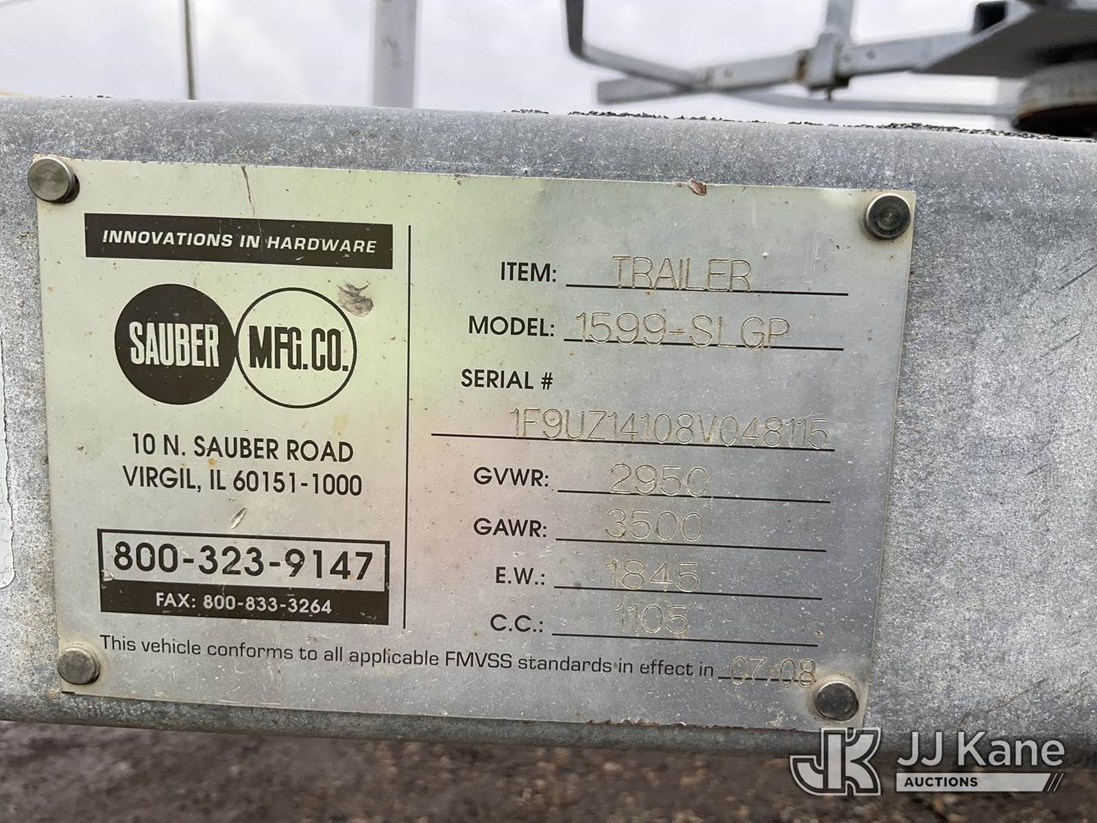 2008 Sauber 1599-SLGP S/A Reel Trailer, with Overall- 11ft long, Between Wheels - 75in wide, This is a Titled Item NOTE: This unit is being sold AS IS/WHERE IS via Timed Auction and is located in South Beloit, IL. Inspection & preview days for this unit are the 2 business days prior to the first day of items closing for this auction, item is located at 14354 Dearborn Ave South Beloit, IL and hours of operations are 8a-4p. For pre-sale questions, please contact Derek Eklund at (608) 904-0618 or (derek.eklund@jjkane.com). (Buyer is responsible for removal. Assistance by consignor or JJ Kane Auctions is not assured.)