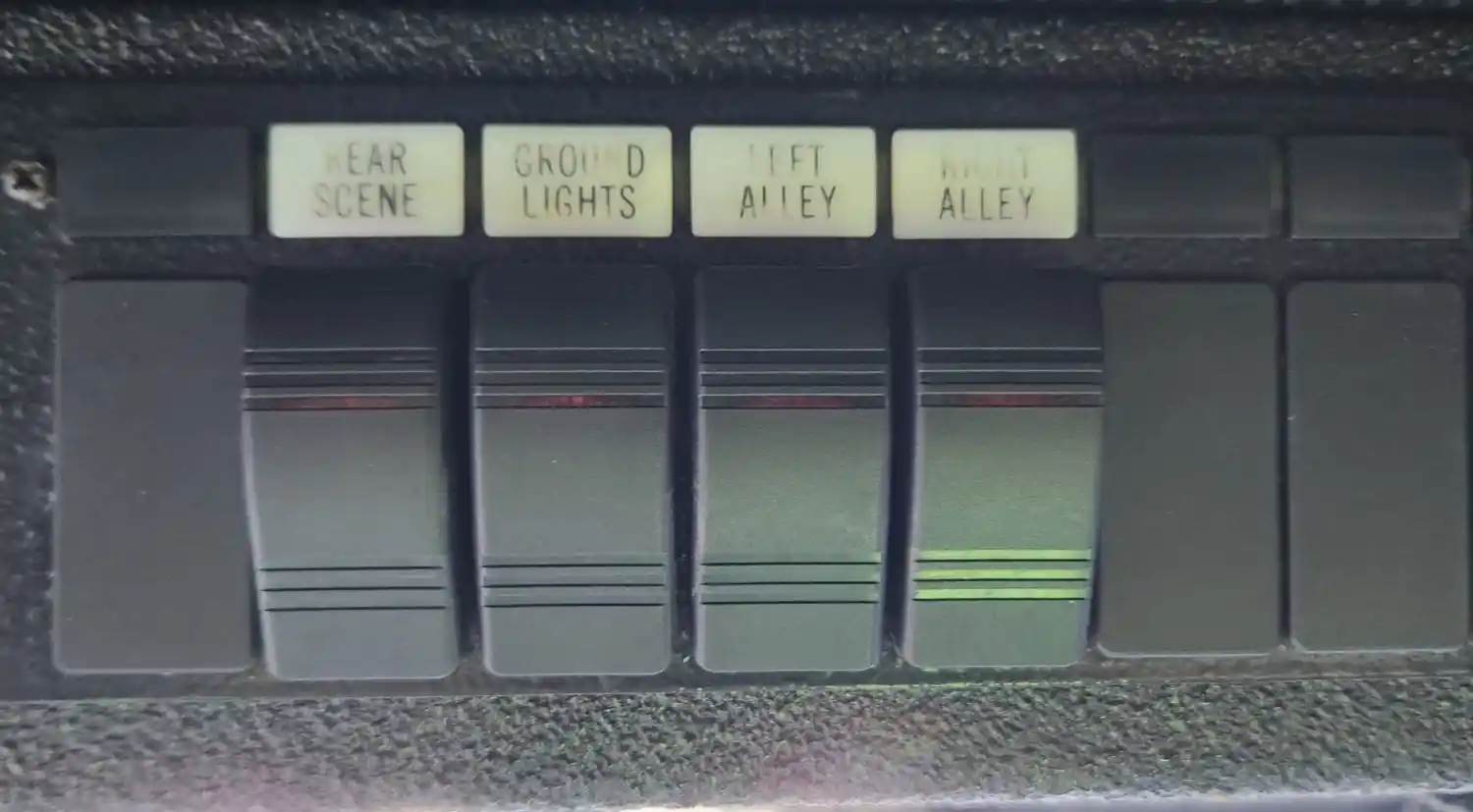 (Used) 2008 Seagrave Pumpers, MISCELLANEOUS DASH SWITCHES- Controls: Rear Scene, Ground Lights, Left Alley, Alarm Disable, Material: Aluminum with Plastic, For more information about this item, give us a call. We ship Worldwide! (CRG HEAVY TRUCK PARTS) 929 W PULASKI HWY ELKTON, MD 21921, Material: Aluminum