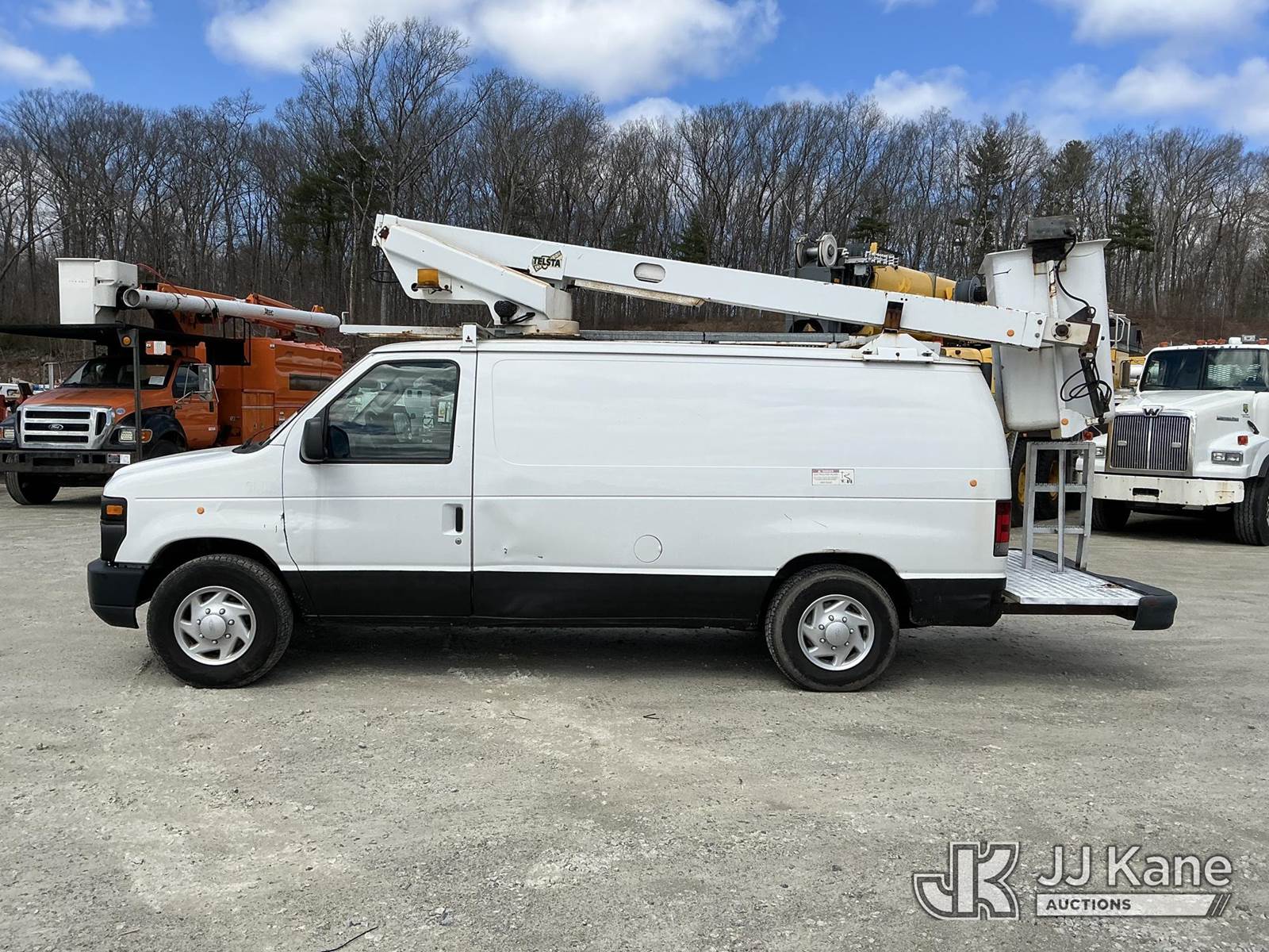 Telsta A28D, 33 ft, Telescopic Non-Insulated Bucket Van s/n 97730051F (1997 REMOUNT), with single-man bucket, mounted behind cab on 2008 Ford E350 Cargo Van, 5.4L V8 RWD, gas, Auto, A/C, (214,541 miles) (**Dealer Only**) (Runs & Moves) (Upper Condition Unknown, Missing Hydraulic On/Off Switch on Dash) (Bidding Restricted to Licensed Vehicle Dealers Only), This is a Titled Item NOTE: This unit is being sold AS IS/WHERE IS via Timed Auction and is located in Shrewsbury, MA. Inspection & preview days for this unit are the 2 business days prior to the first day of items closing for this auction, item is located at 11 Fortune Blvd Shrewsbury, MA 01545 and hours of operations are 8a-4p. For pre-sale questions, please contact Rob Gifford @ (508) 864-4126. (Missing manuals, See Auction Company for Manufacturers Information to obtain manuals) (Buyer is responsible for removal. Assistance by consignor or JJ Kane Auctions is not assured.)