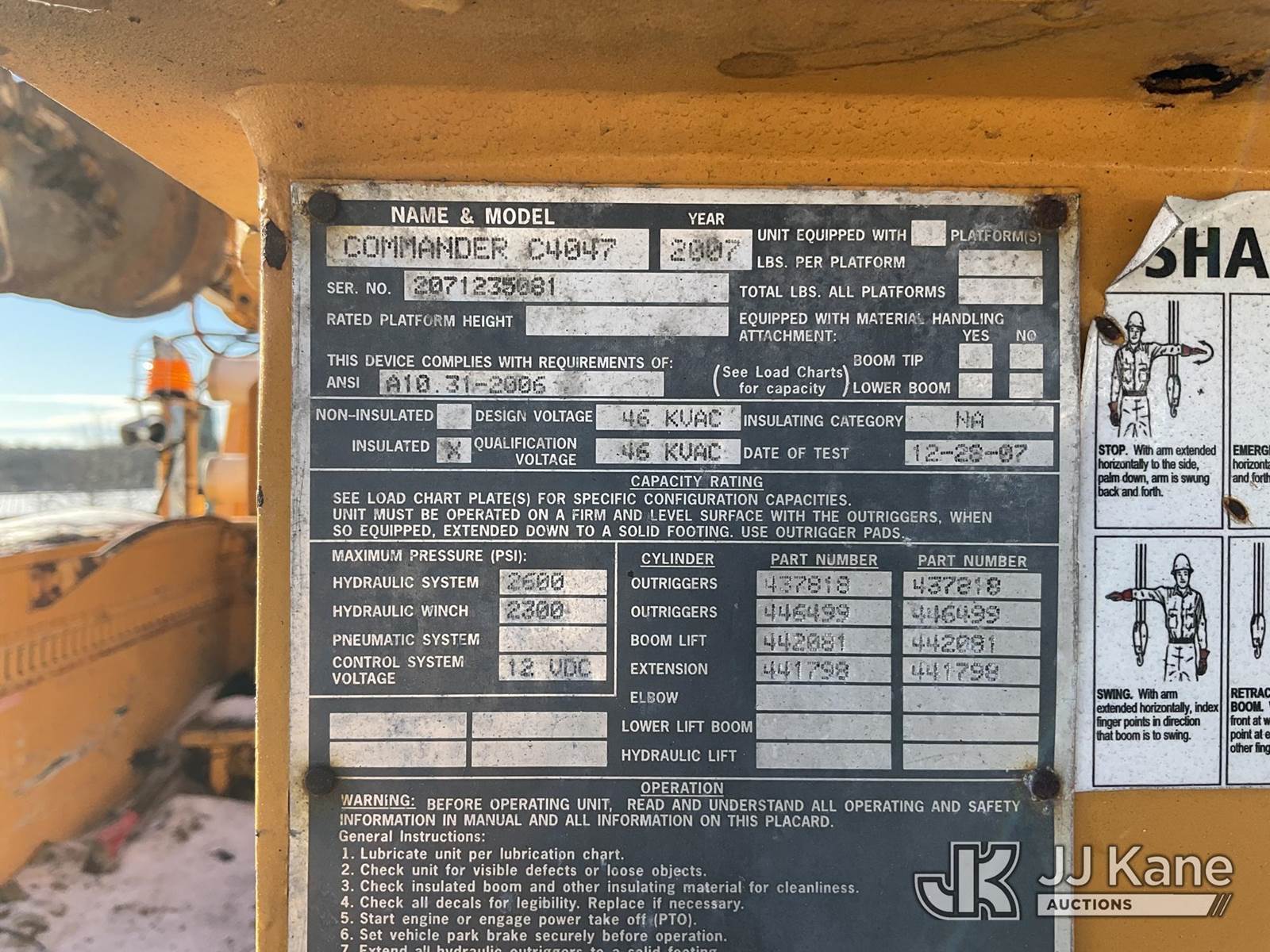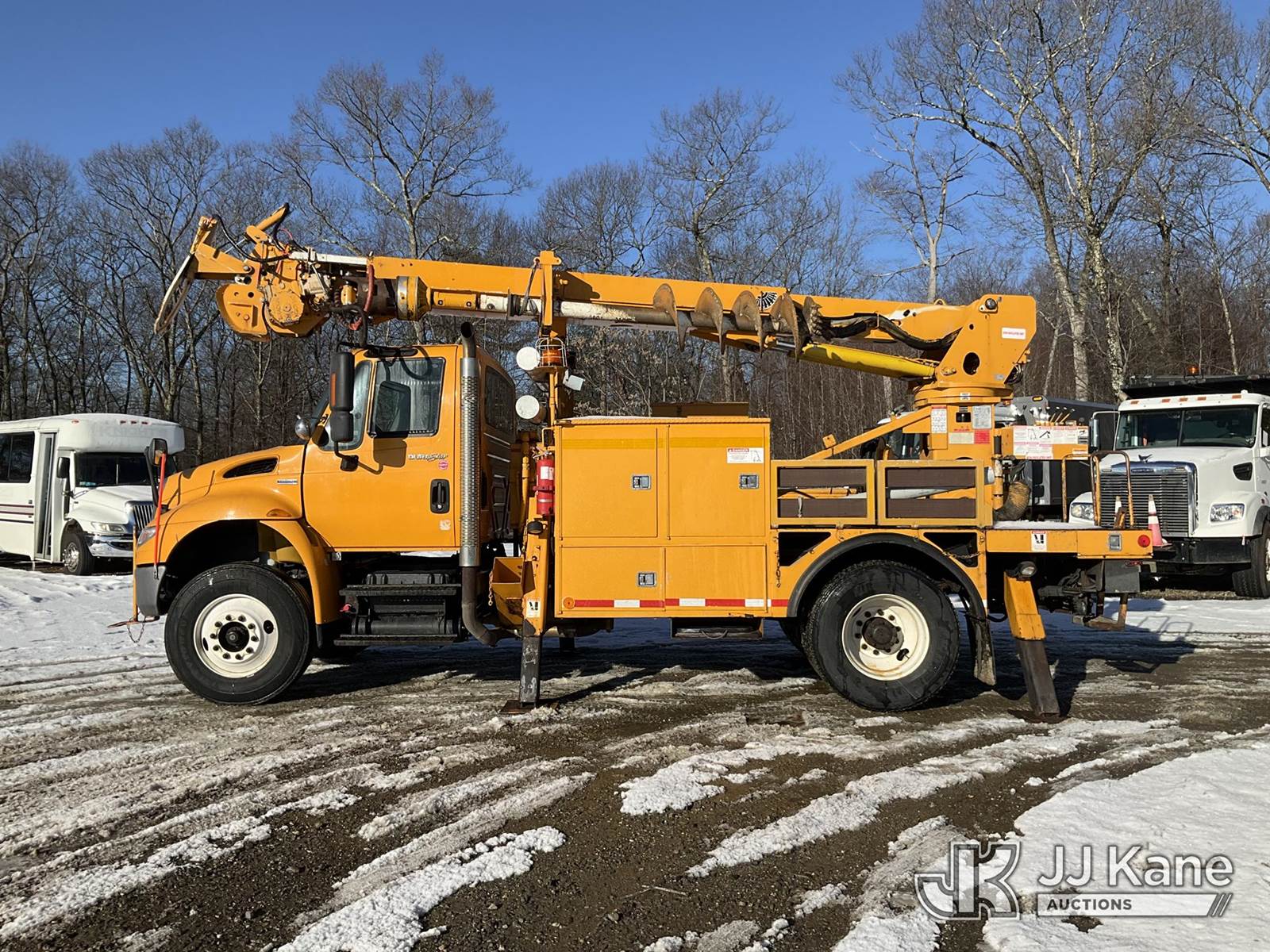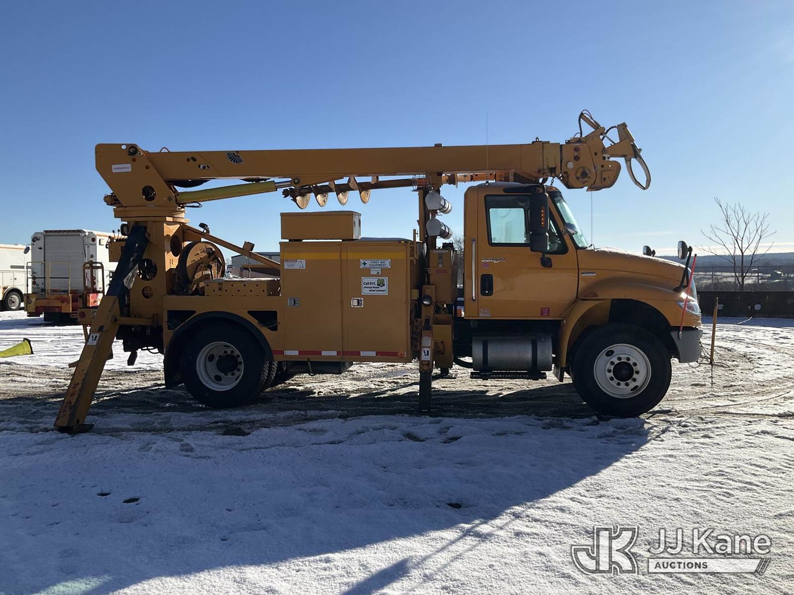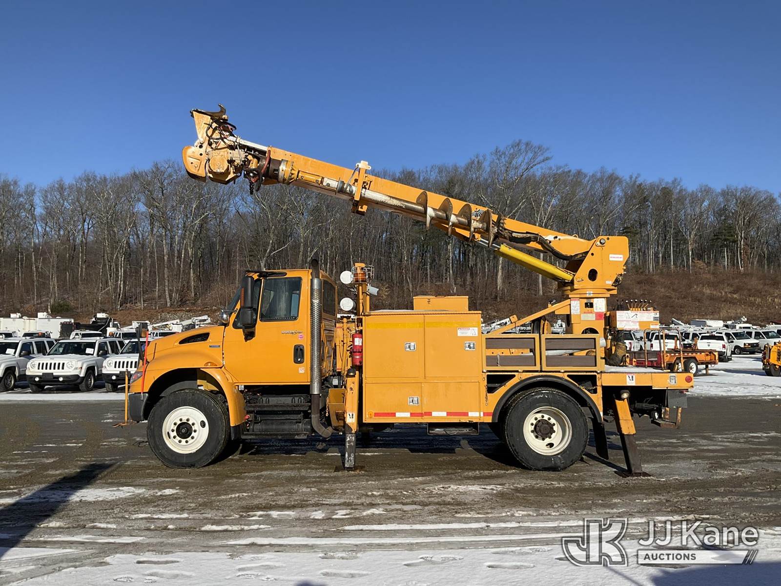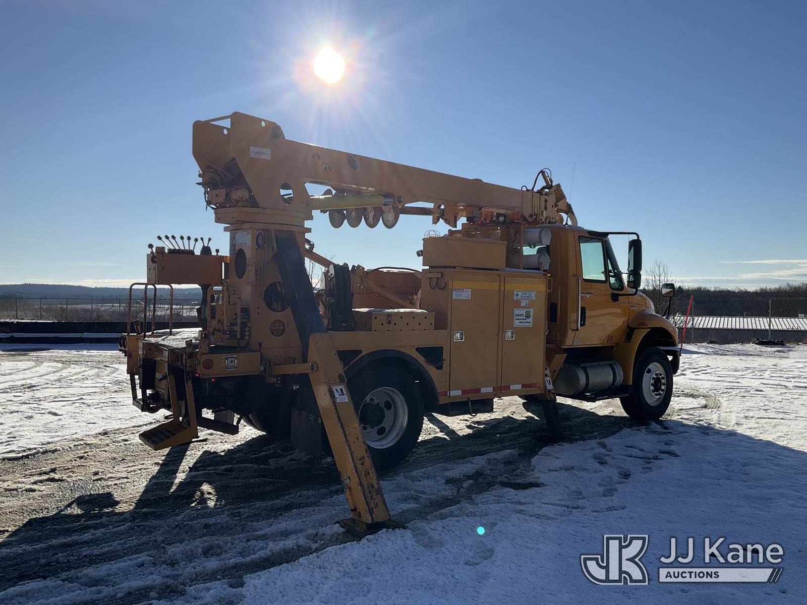 Terex/Telelect Commander C4047, 18,890 Lb Digger Derrick s/n 2071235081, with 47 ft sheave height. 3 section hyd boom, tip winch, pole guides, stand up controls & 4 hyd outriggers, rear mounted on 2008 International DuraStar 4400 Flatbed/Utility Truck, MaxxForce 7.6L Auto, 4X2, diesel, A/C, (81,037 miles) (Runs,Moves & Operates) (Reads 13,193 hours) This is a Titled Item NOTE: This unit is being sold AS IS/WHERE IS via Timed Auction and is located in Shrewsbury, MA. Inspection & preview days for this unit are the 2 business days prior to the first day of items closing for this auction, item is located at 11 Fortune Blvd Shrewsbury, MA 01545 and hours of operations are 8a-4p. For pre-sale questions, please contact Rob Gifford @ (508) 864-4126. (Missing manuals, See Auction Company for Manufacturers Information to obtain manuals) (Buyer is responsible for removal. Assistance by consignor or JJ Kane Auctions is not assured.)