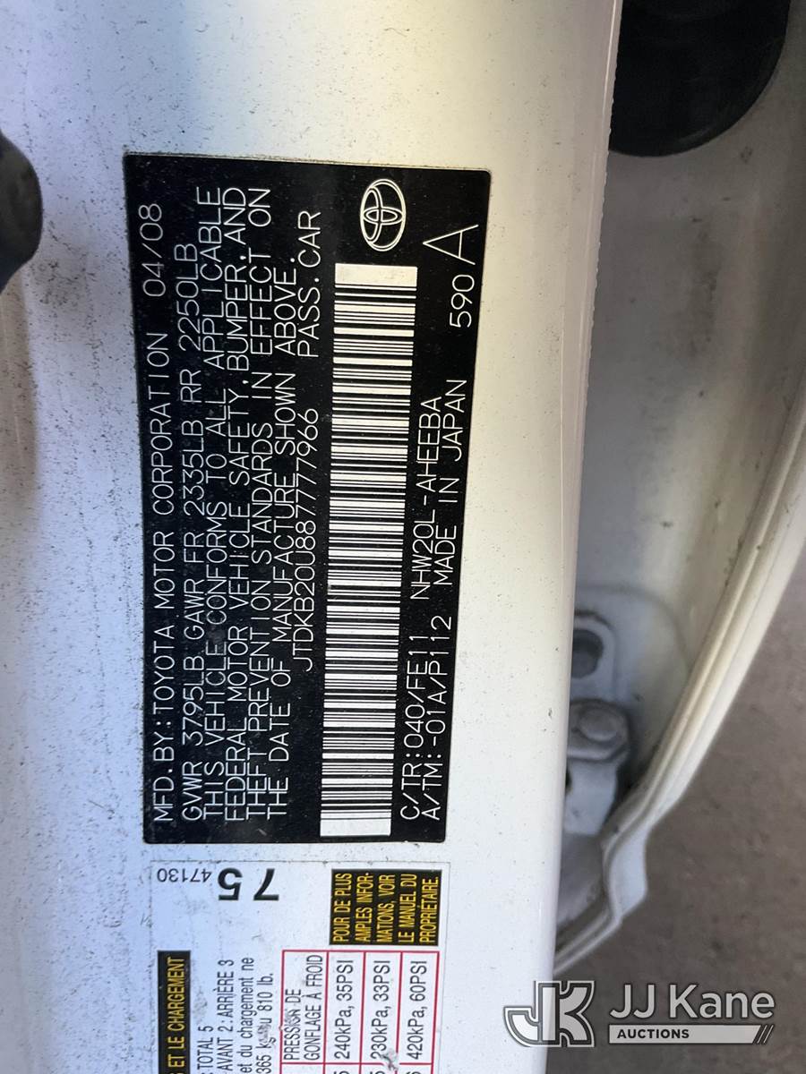 2008 Toyota Prius Hybrid 4-Door Hatch Back, 1.5L L4 DOHC 16V Gas/Electric FWD, Continuously Variable Transmission, A/C, (64,030 miles) (Runs & Moves) This is a Titled Item NOTE: This unit is being sold AS IS/WHERE IS via Timed Auction and is located in Jurupa Valley, CA. Inspection & preview days for this unit are the 2 business days prior to the first day of items closing for this auction, item is located at 4510 Muth Way Jurupa Valley, CA 92509 and hours of operations are 8a-4p. For pre-sale questions, please contact please contact Office Staff @ (310) 353-7140. Dealer License Number 45696. (Buyer is responsible for removal. Assistance by consignor or JJ Kane Auctions is not assured.)