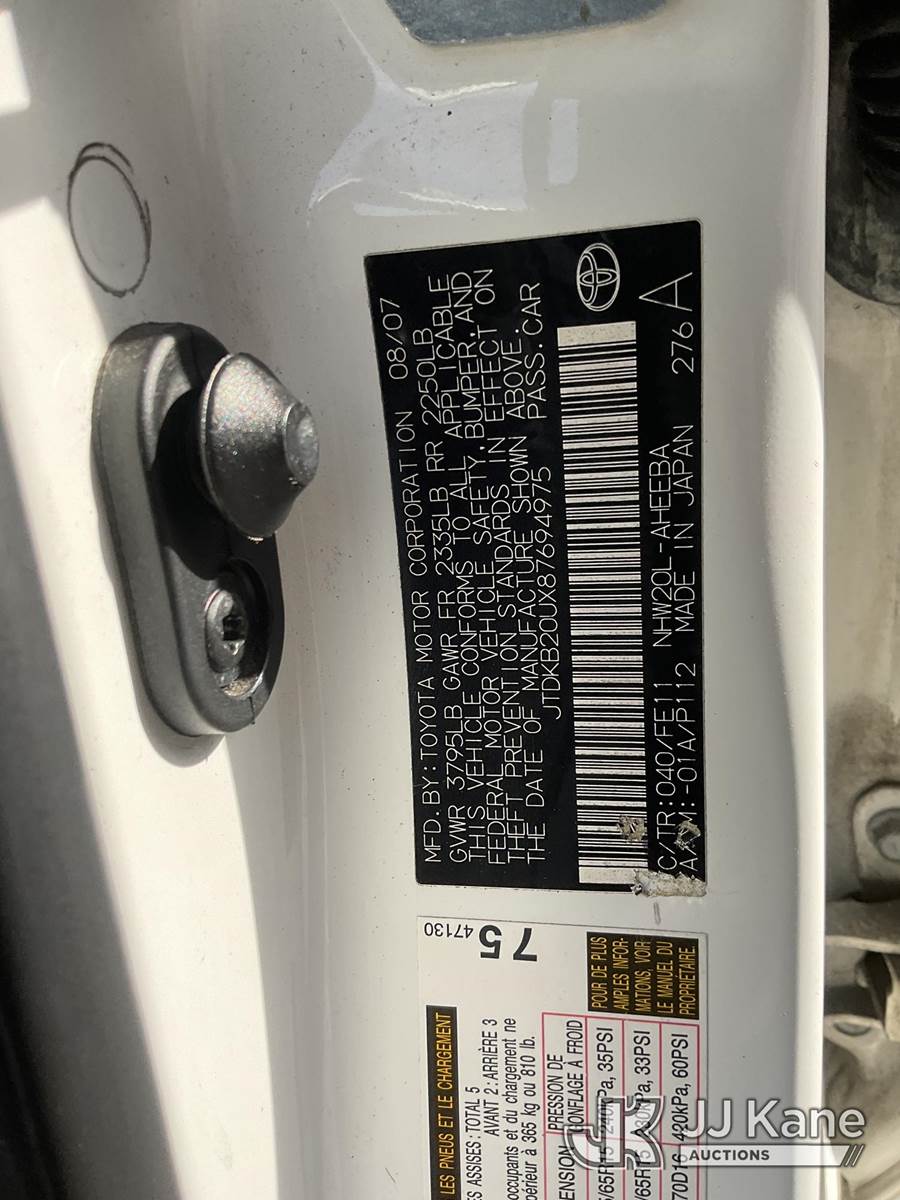 2008 Toyota Prius Hybrid 4-Door Sedan, 1.5L L4 DOHC 16V Gas/Electric Continuously Variable Transmission, FWD, A/C, (68,616 miles) (Runs & Moves) This is a Titled Item NOTE: This unit is being sold AS IS/WHERE IS via Timed Auction and is located in Jurupa Valley, CA. Inspection & preview days for this unit are the 2 business days prior to the first day of items closing for this auction, item is located at 4510 Muth Way Jurupa Valley, CA 92509 and hours of operations are 8a-4p. For pre-sale questions, please contact please contact Office Staff @ (310) 353-7140. Dealer License Number 45696. (Buyer is responsible for removal. Assistance by consignor or JJ Kane Auctions is not assured.)