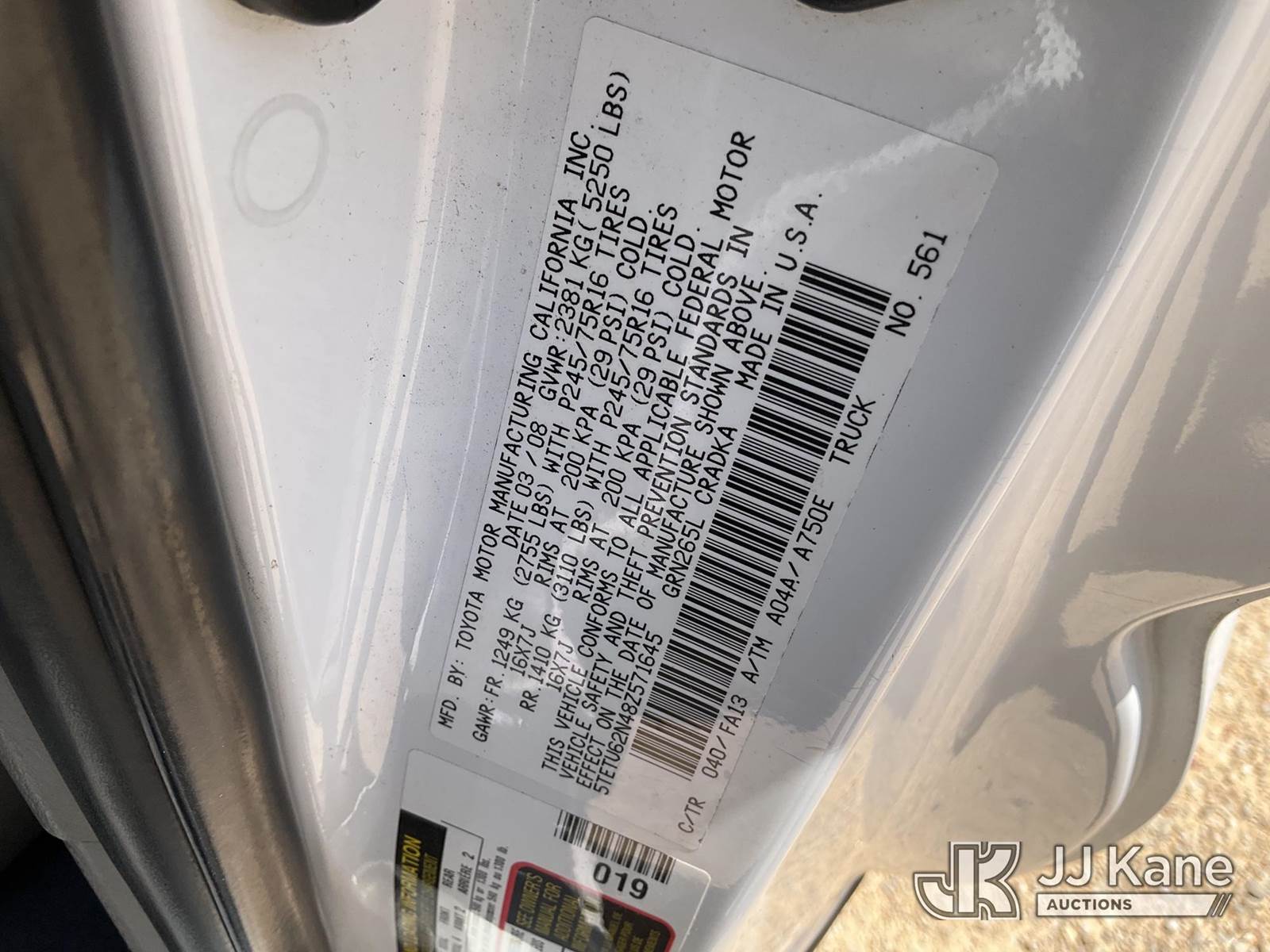 2008 Toyota Tacoma Extended-Cab Pickup Truck, 6-cyl gas, RWD, Auto, A/C, (204,708 miles) (Runs & Moves)(Cracked Windshield) This is a Titled Item NOTE: This unit is being sold AS IS/WHERE IS via Timed Auction and is located in Marion, TX. Inspection & preview days for this unit are the 2 business days prior to the first day of items closing for this auction, item is located at 3292 S Santa Clara Rd Marion, TX 78124 and hours of operations are 8a-4p. For pre-sale questions, please contact Brian Jarrell @ 210-540-3147. (Buyer is responsible for removal. Assistance by consignor or JJ Kane Auctions is not assured.)