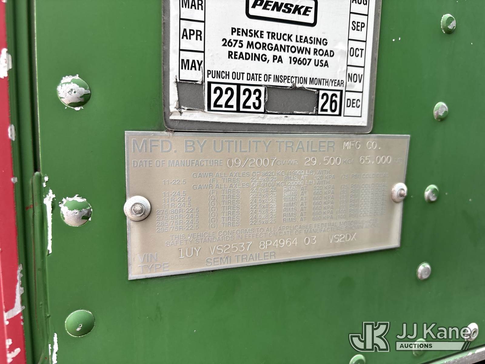 2008 Utility VS2DX T/A Dry Van Trailer, with 53 ft. x 102 in., This is a Titled Item NOTE: This unit is being sold AS IS/WHERE IS via Timed Auction and is located in Dixon, CA. Inspection & preview days for this unit are the 2 business days prior to the first day of items closing for this auction, item is located at 8668 Sparling Ln Dixon, CA 95620 and hours of operations are 8a-4p. For pre-sale questions, please contact JJ Kane Staff at (707) 678-8060 (dixon@jjkane.com). Dealer License Number 45696. (Buyer is responsible for removal. Assistance by consignor or JJ Kane Auctions is not assured.)