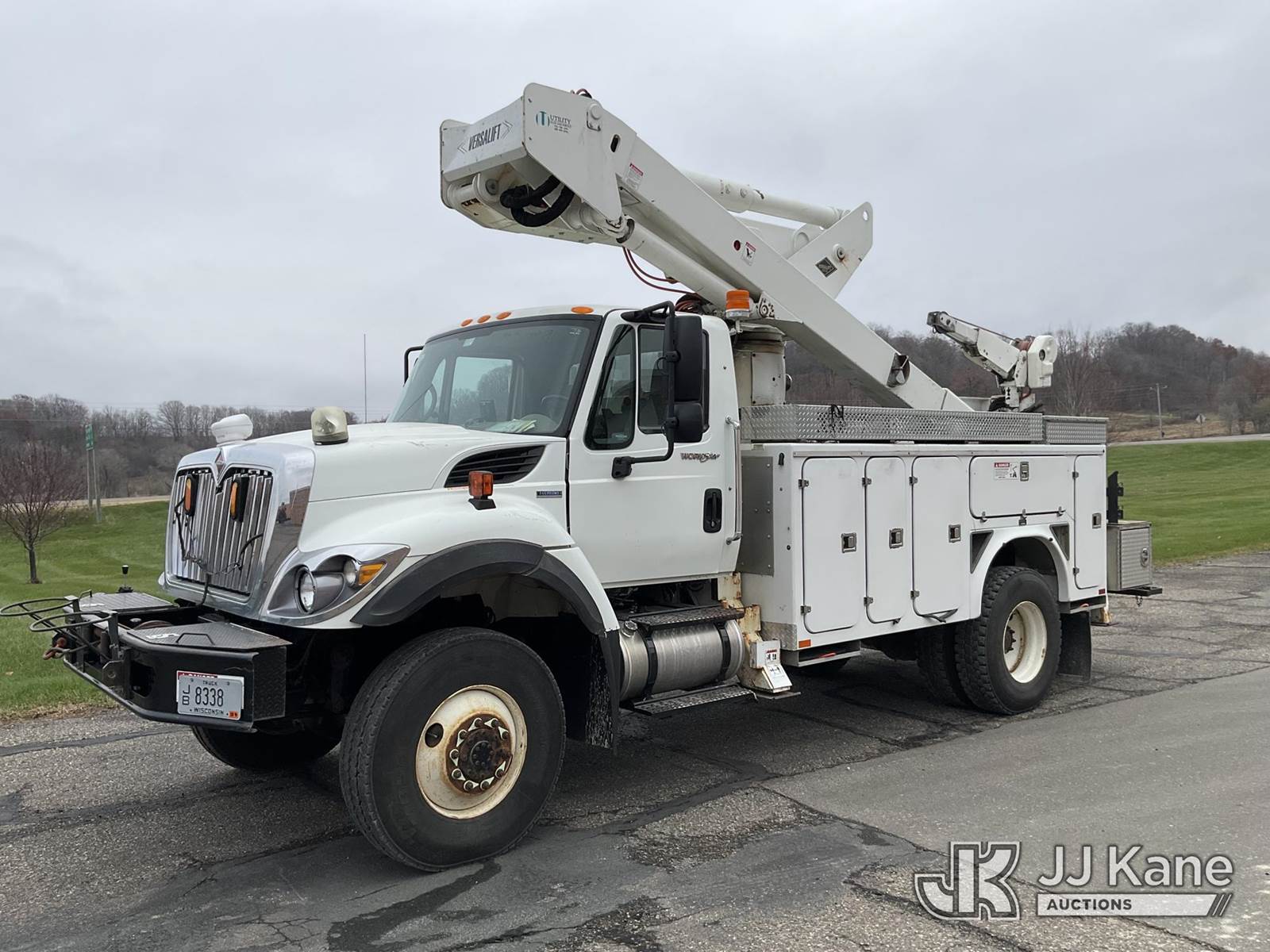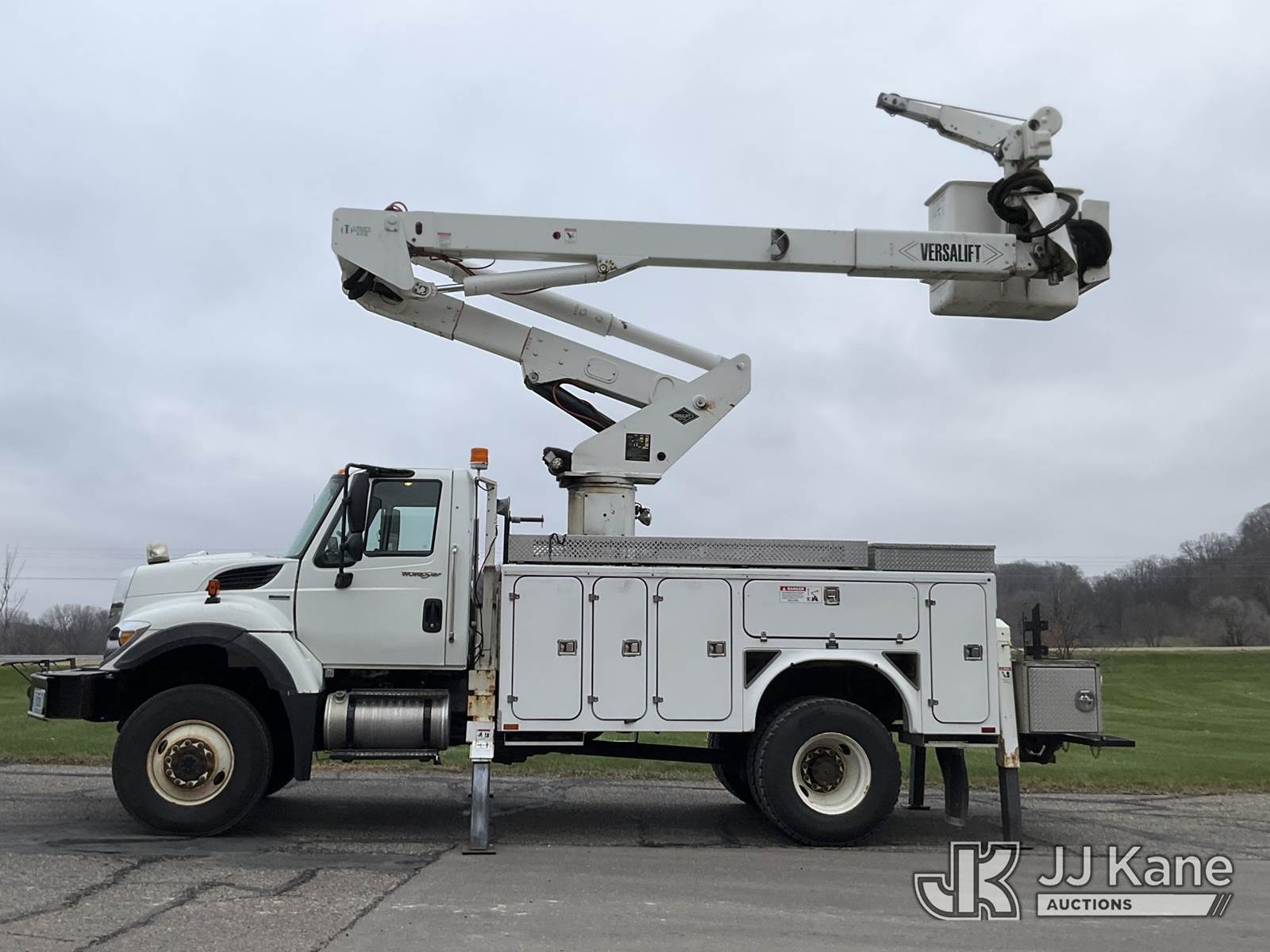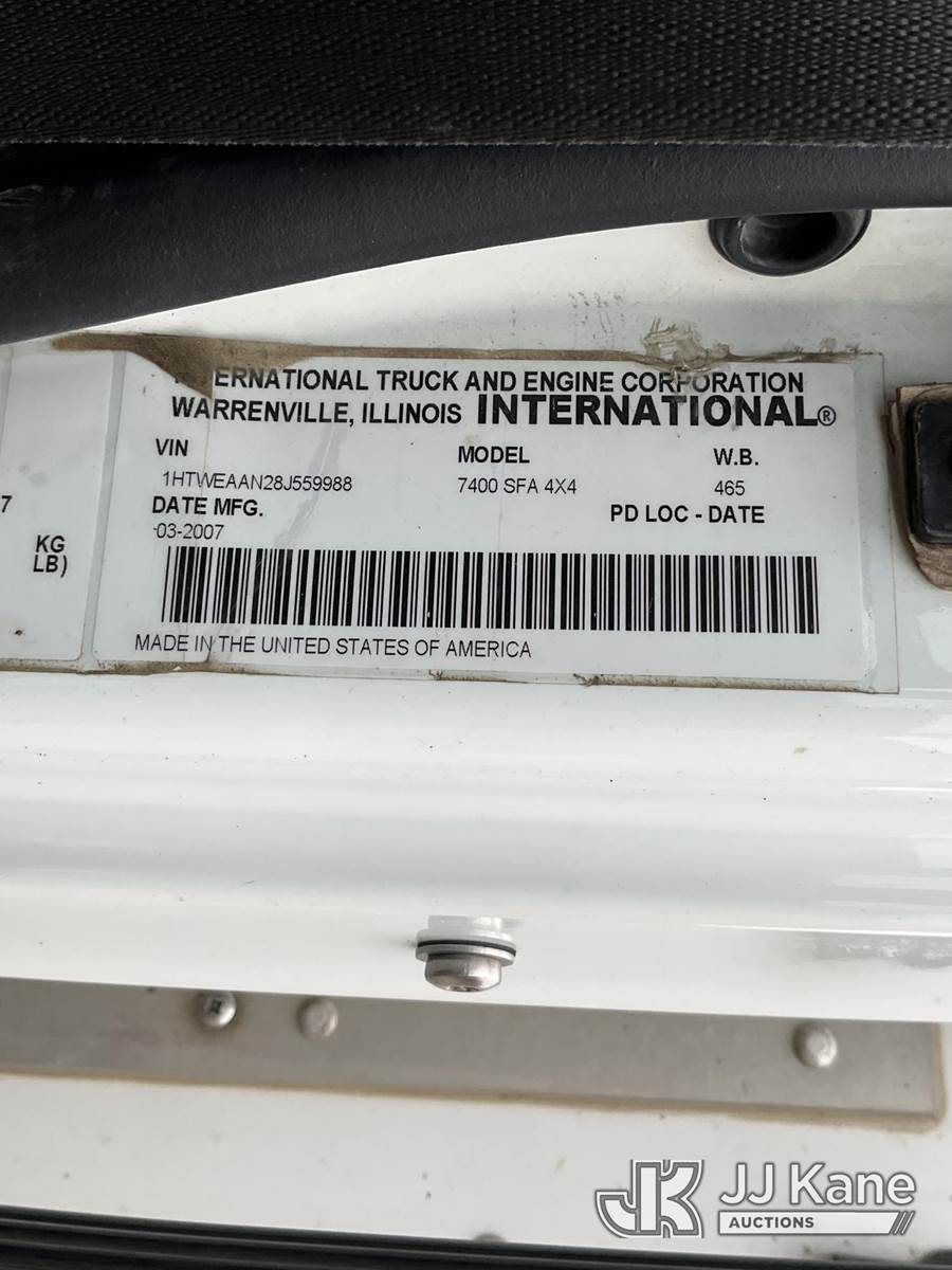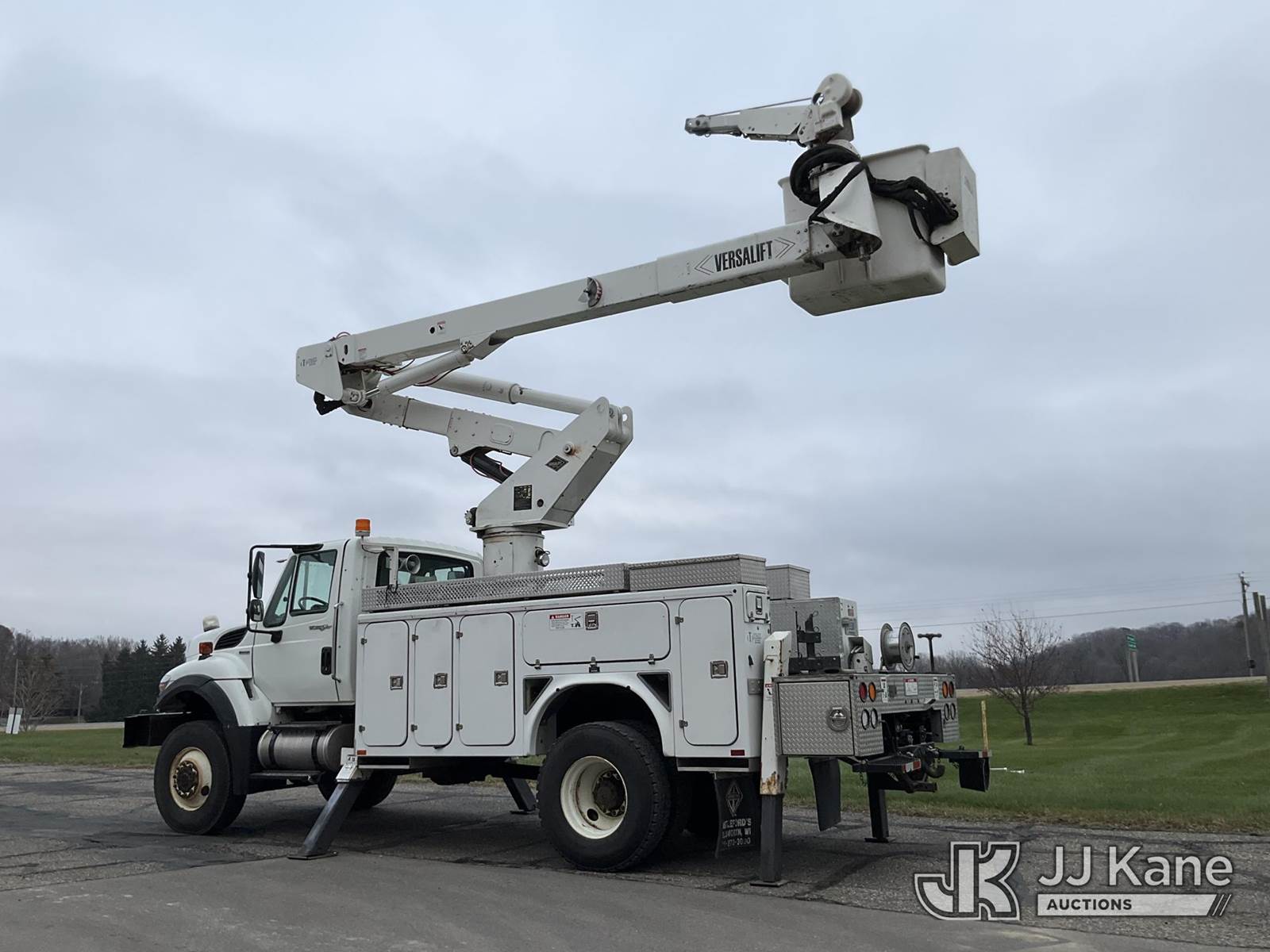 Versalift VST5000I01, 55 ft, Articulating & Telescopic Material Handling Bucket Truck s/n GG060093, with two-man bucket & 4 hyd outriggers, mounted behind cab on 2008 International 7400 4x4 Utility Truck, 7.6L L6 diesel, Auto, A/C, with front winch, (122,035 miles) (Runs, Moves & Upper Operates) This is a Titled Item NOTE: This unit is being sold AS IS/WHERE IS via Timed Auction and is located in Shakopee, MN. Inspection & preview days for this unit are the 2 business days prior to the first day of items closing for this auction, item is located at 1109 Stagecoach Rd Shakopee, MN 55379 and hours of operations are 8a-3p. For pre-sale questions, please contact Joe Hause @ (651) 421-3305. (Manuals provided in cab) (Buyer is responsible for removal. Assistance by consignor or JJ Kane Auctioneers is not assured.)