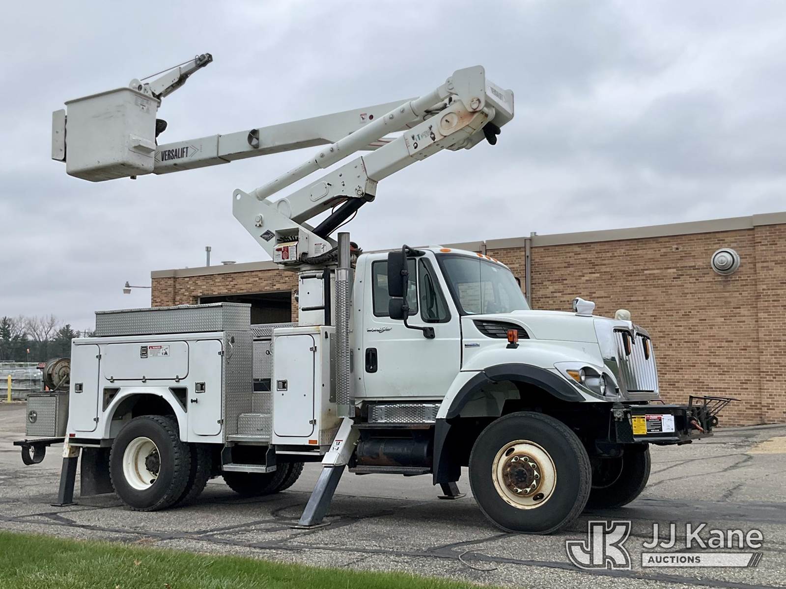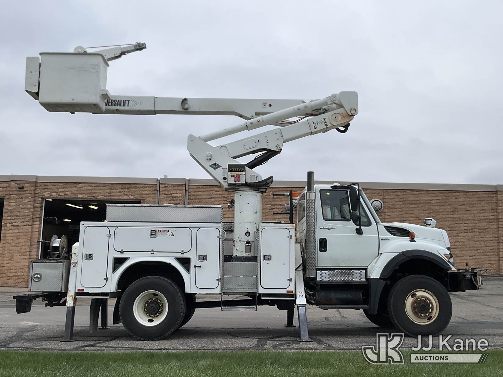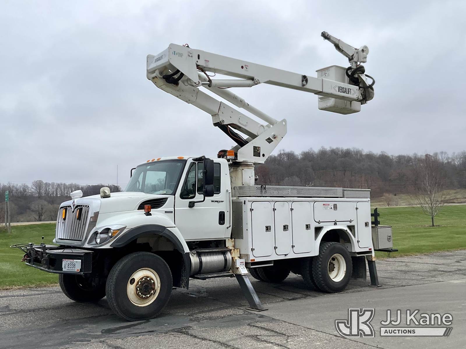 Versalift VST5000I01, 55 ft, Articulating & Telescopic Material Handling Bucket Truck s/n GG060093, with two-man bucket & 4 hyd outriggers, mounted behind cab on 2008 International 7400 4x4 Utility Truck, 7.6L L6 diesel, Auto, A/C, with front winch, (122,035 miles) (Runs, Moves & Upper Operates) This is a Titled Item NOTE: This unit is being sold AS IS/WHERE IS via Timed Auction and is located in Shakopee, MN. Inspection & preview days for this unit are the 2 business days prior to the first day of items closing for this auction, item is located at 1109 Stagecoach Rd Shakopee, MN 55379 and hours of operations are 8a-3p. For pre-sale questions, please contact Joe Hause @ (651) 421-3305. (Manuals provided in cab) (Buyer is responsible for removal. Assistance by consignor or JJ Kane Auctioneers is not assured.)