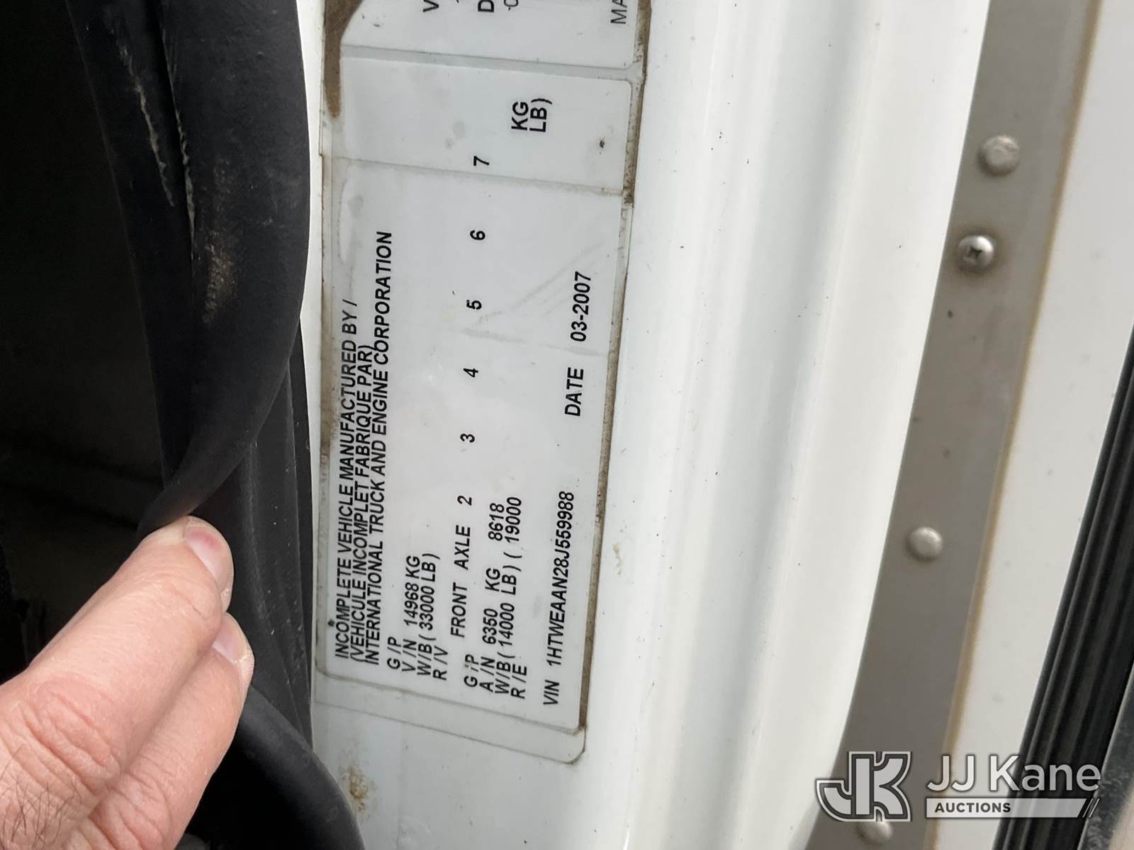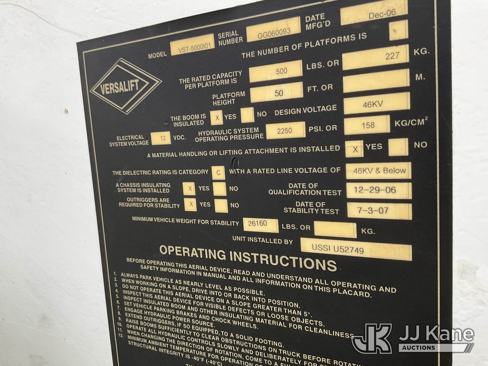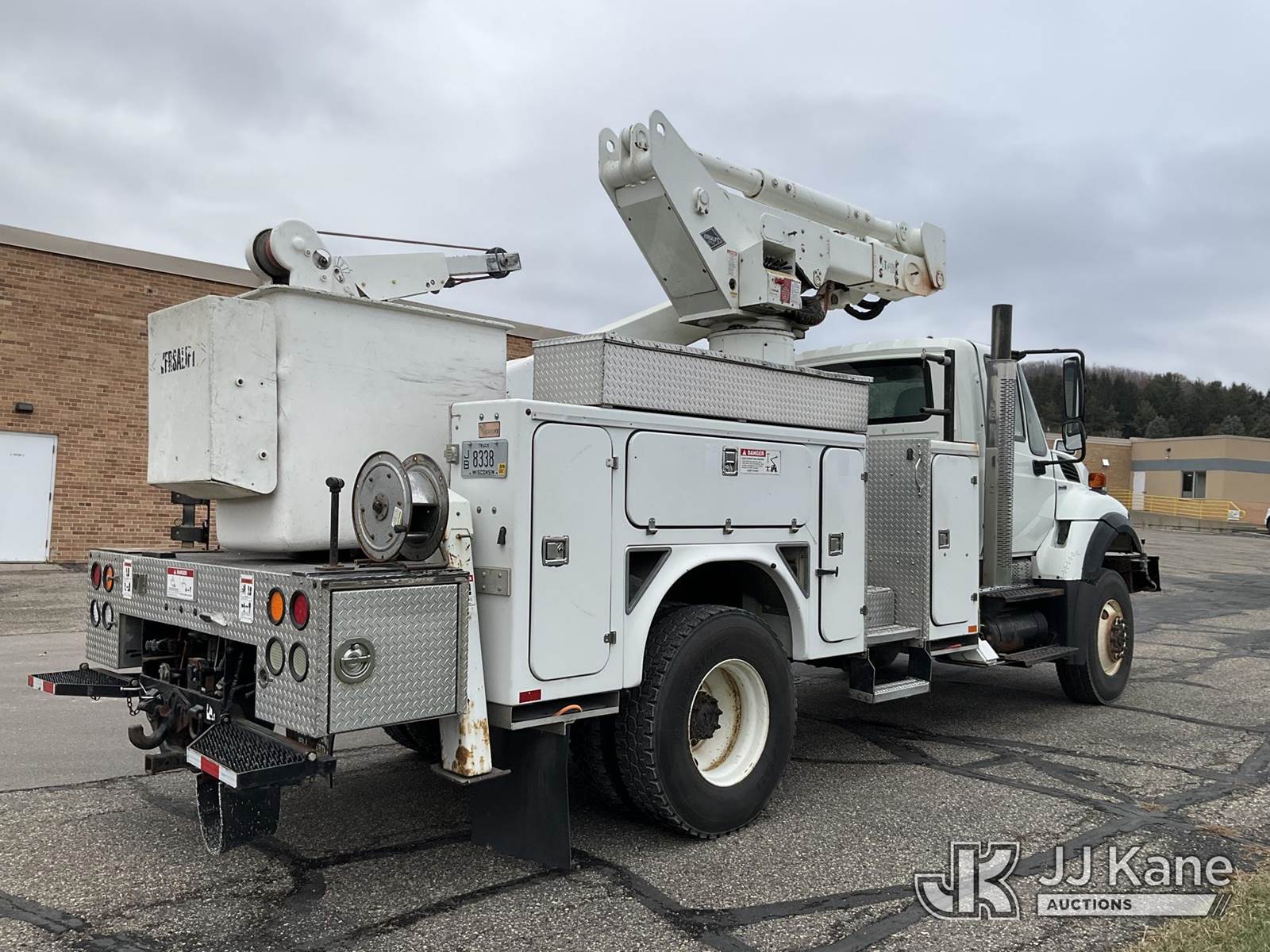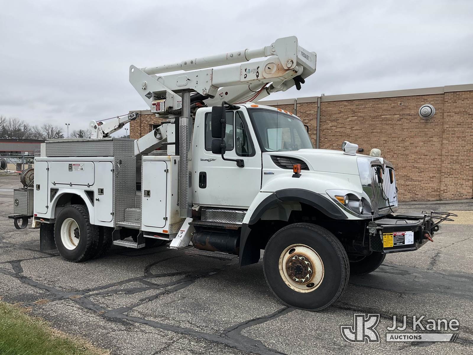 Versalift VST5000I01, 55 ft, Articulating & Telescopic Material Handling Bucket Truck s/n GG060093, with two-man bucket & 4 hyd outriggers, mounted behind cab on 2008 International 7400 4x4 Utility Truck, 7.6L L6 diesel, Auto, A/C, with front winch, (122,035 miles) (Runs, Moves & Upper Operates) This is a Titled Item NOTE: This unit is being sold AS IS/WHERE IS via Timed Auction and is located in Shakopee, MN. Inspection & preview days for this unit are the 2 business days prior to the first day of items closing for this auction, item is located at 1109 Stagecoach Rd Shakopee, MN 55379 and hours of operations are 8a-3p. For pre-sale questions, please contact Joe Hause @ (651) 421-3305. (Manuals provided in cab) (Buyer is responsible for removal. Assistance by consignor or JJ Kane Auctioneers is not assured.)
