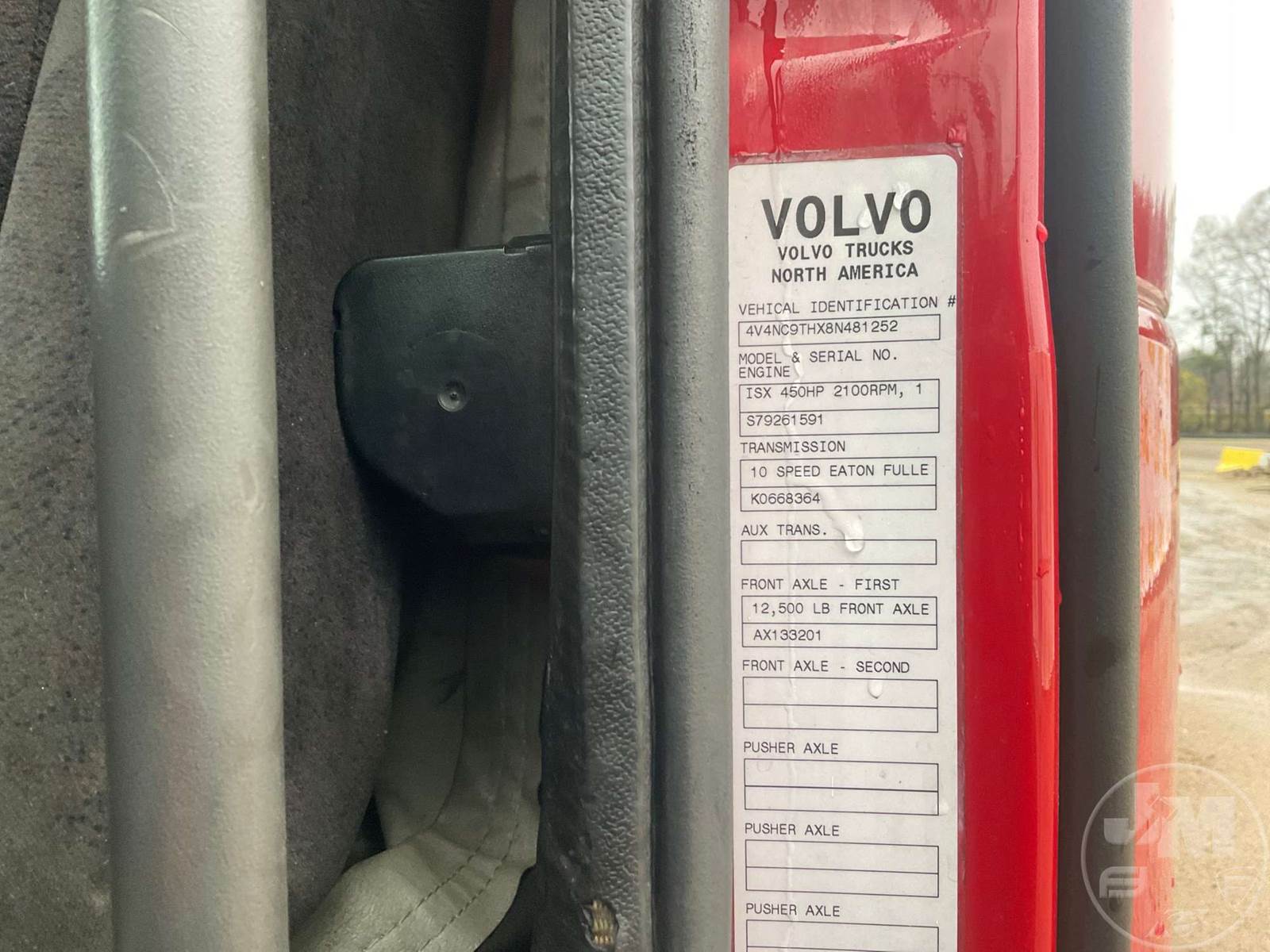 TANDEM AXLE TRUCK TRACTOR, CUMMINS, ISX, HP 450, EATON FULLER, AUTOMATIC, AIR RIDE SUSPENSION, 199 " WB, 12.5K FRONTS, 38K REARS, 50350 GVWR, A/C, AIR DRIVERS SEAT, DUAL AIR SEATS, CRUISE CONTROL, POWER MIRRORS, ENGINE BRAKE, DIFF LOCK, SLEEPER SIZE 64" X 77" X 96", UPPER BUNK, DESK, ALUM DISC WHEELS, 295/75R22.5 STEER TIRES, AIR SLIDE FIFTH WHEEL, 295/75R22.5 TIRES, ODOMETER READS: 856347