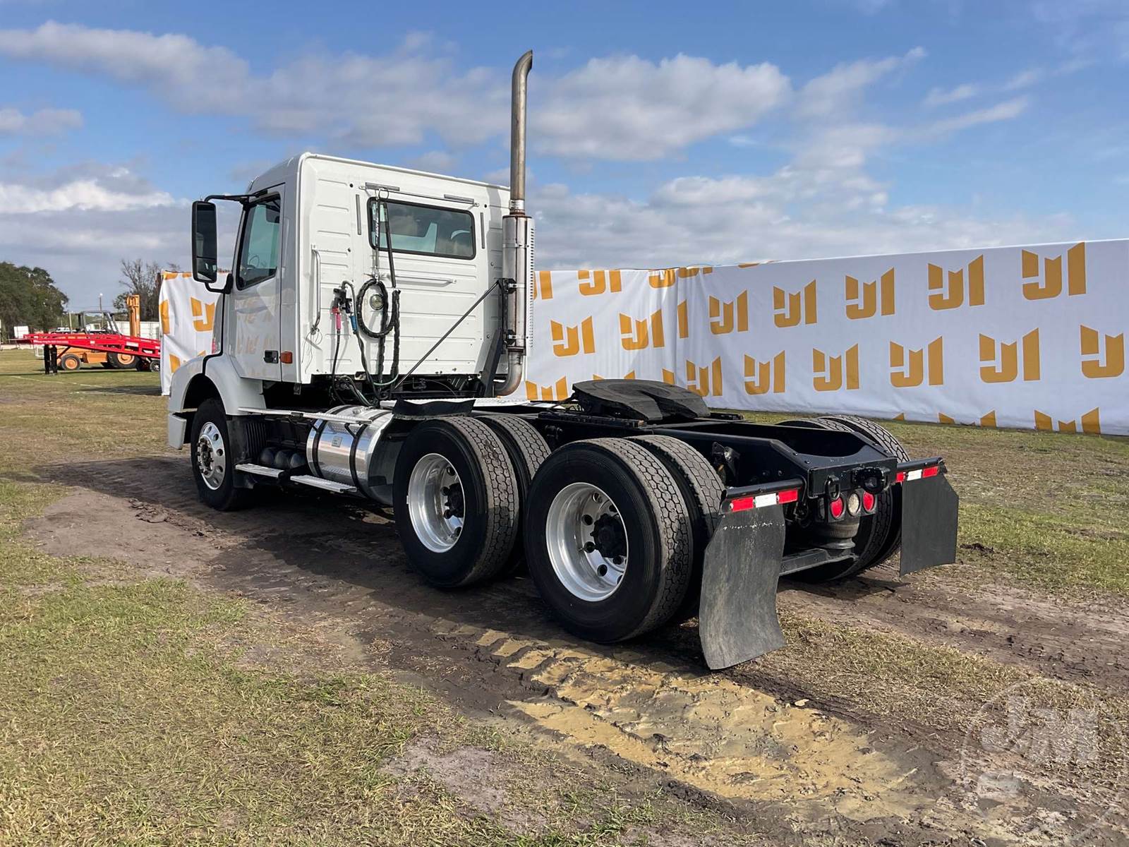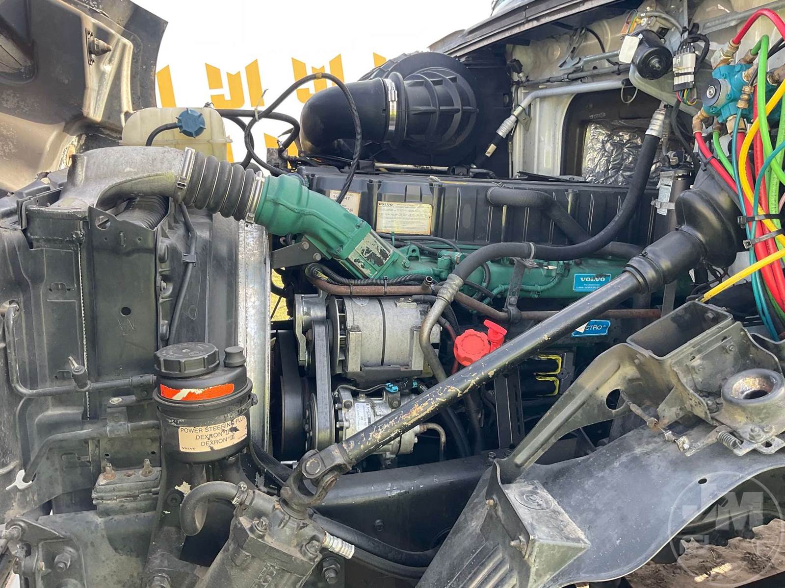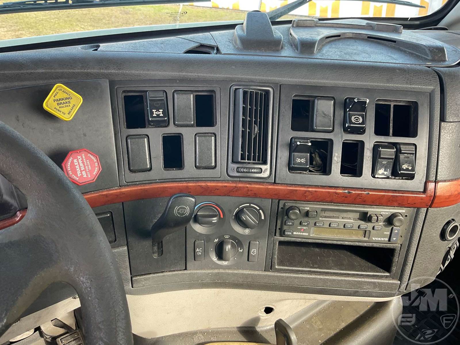 TANDEM AXLE DAY CAB TRUCK TRACTOR, VOLVO, VED12D, 395 HP, EATON FULLER, 10 SPEED, AIR RIDE SUSPENSION, DRUM, 164 " WB, C/A: 101, 12K FRONTS, 38K REARS, 50000 GVWR, AIR SLIDE FIFTH WHEEL, A/C, AIR DRIVERS SEAT, POWER MIRRORS, DIFF LOCK, DUAL FUEL TANKS, AIR RIDE CAB, ALUM DISC FRONT & OUTSIDE REAR WHEELS, 295/75R22.5 STEER TIRES, 295/75R22.5 TIRES, ODOMETER READS: 450781
