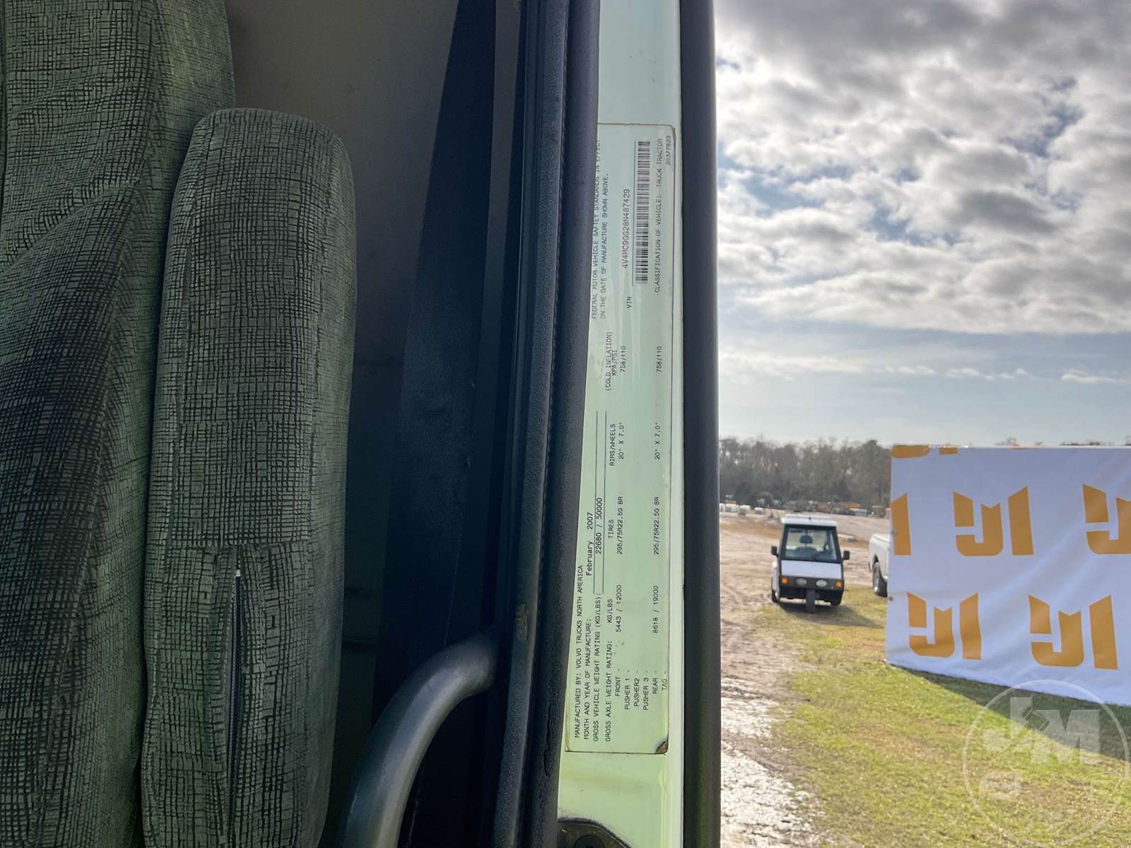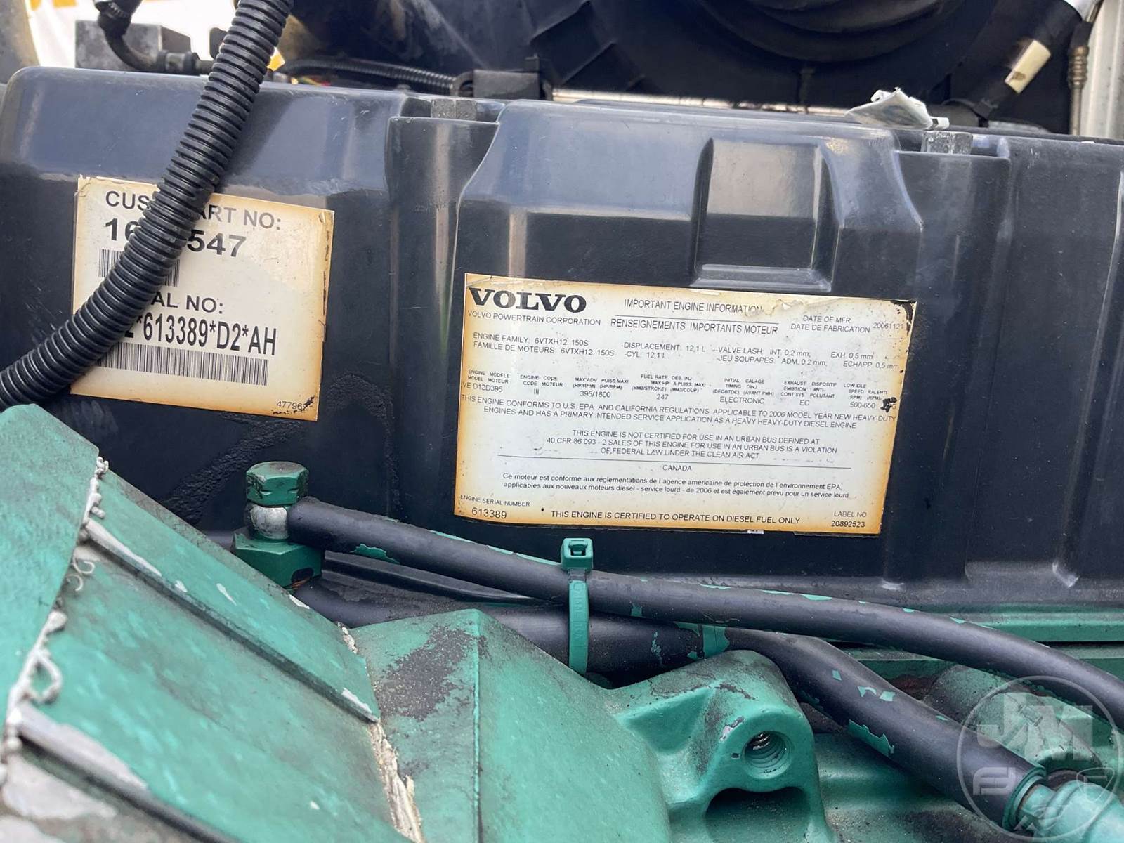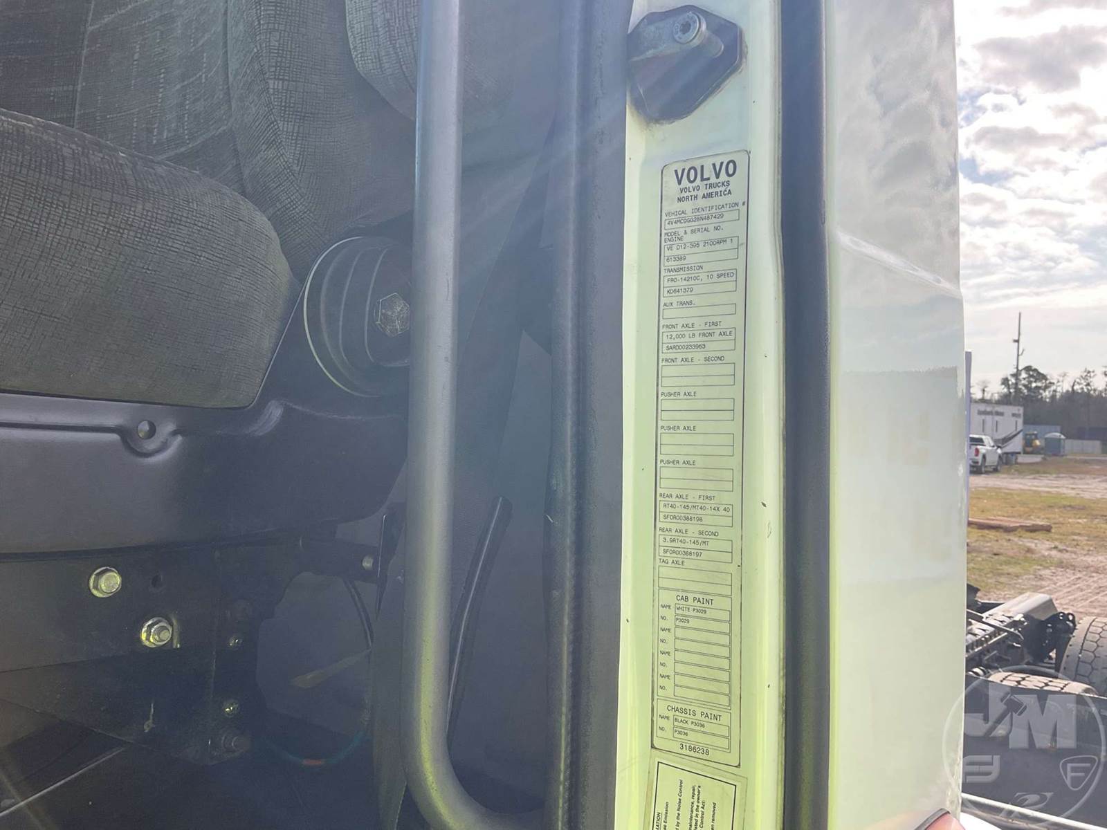 TANDEM AXLE DAY CAB TRUCK TRACTOR, VOLVO, VED12D, 395 HP, EATON FULLER, 10 SPEED, AIR RIDE SUSPENSION, DRUM, 164 " WB, C/A: 101, 12K FRONTS, 38K REARS, 50000 GVWR, AIR SLIDE FIFTH WHEEL, A/C, AIR DRIVERS SEAT, POWER MIRRORS, DIFF LOCK, DUAL FUEL TANKS, AIR RIDE CAB, ALUM DISC FRONT & OUTSIDE REAR WHEELS, 295/75R22.5 STEER TIRES, 295/75R22.5 TIRES, ODOMETER READS: 450781
