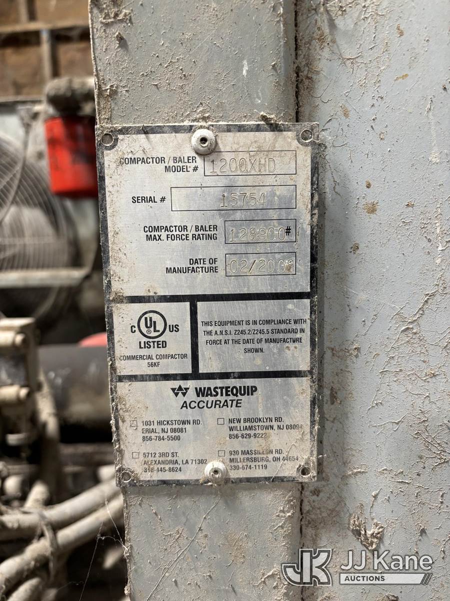 2008 Wastequip Accurate 1200 Stationary Trash Compactor, s/n 15754, (Runs & Operates) NOTE: This unit is being sold AS IS/WHERE IS via Timed Auction and is located in Penn Valley, PA. For pre-sale questions and pickups, please contact Pete Rhodes at peter.rhodes@jjkane.com. Pickups can be conducted Monday through Friday 9:00am to 3:00pm. (Buyer is responsible for removal. Assistance by consignor or JJ Kane Auctioneers is not assured.)