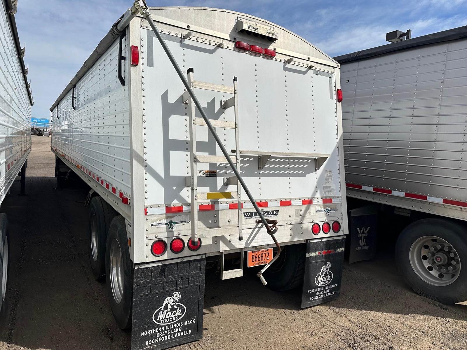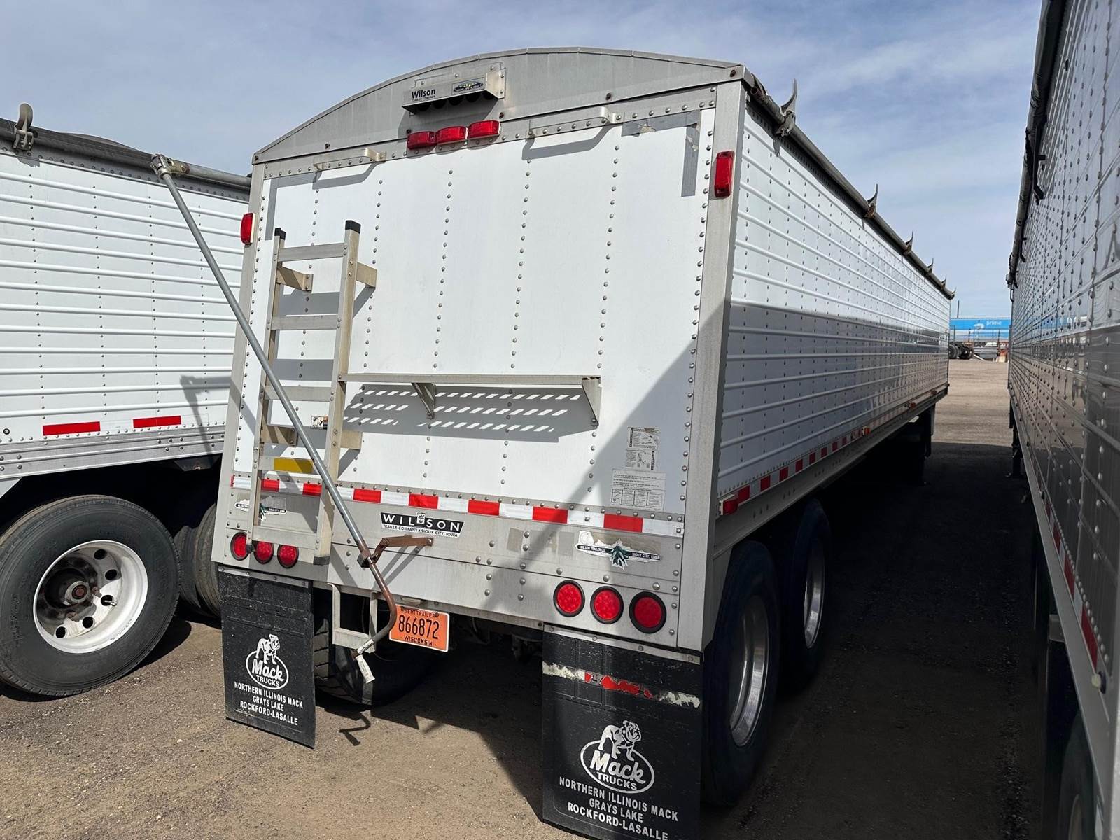 2008 Wilson Grain Trailer, 42' x 96", 66" Sides, Front and Rear Ladder w Catwalk, Manual Rollover Tarp, 2 Hoppers, Closed Tandem, Air Ride, Outside Aluminum Wheels, Inside Steel Wheels,