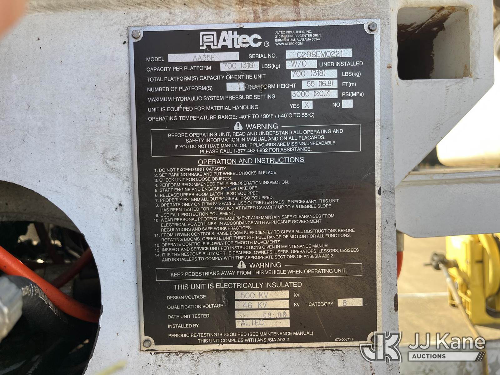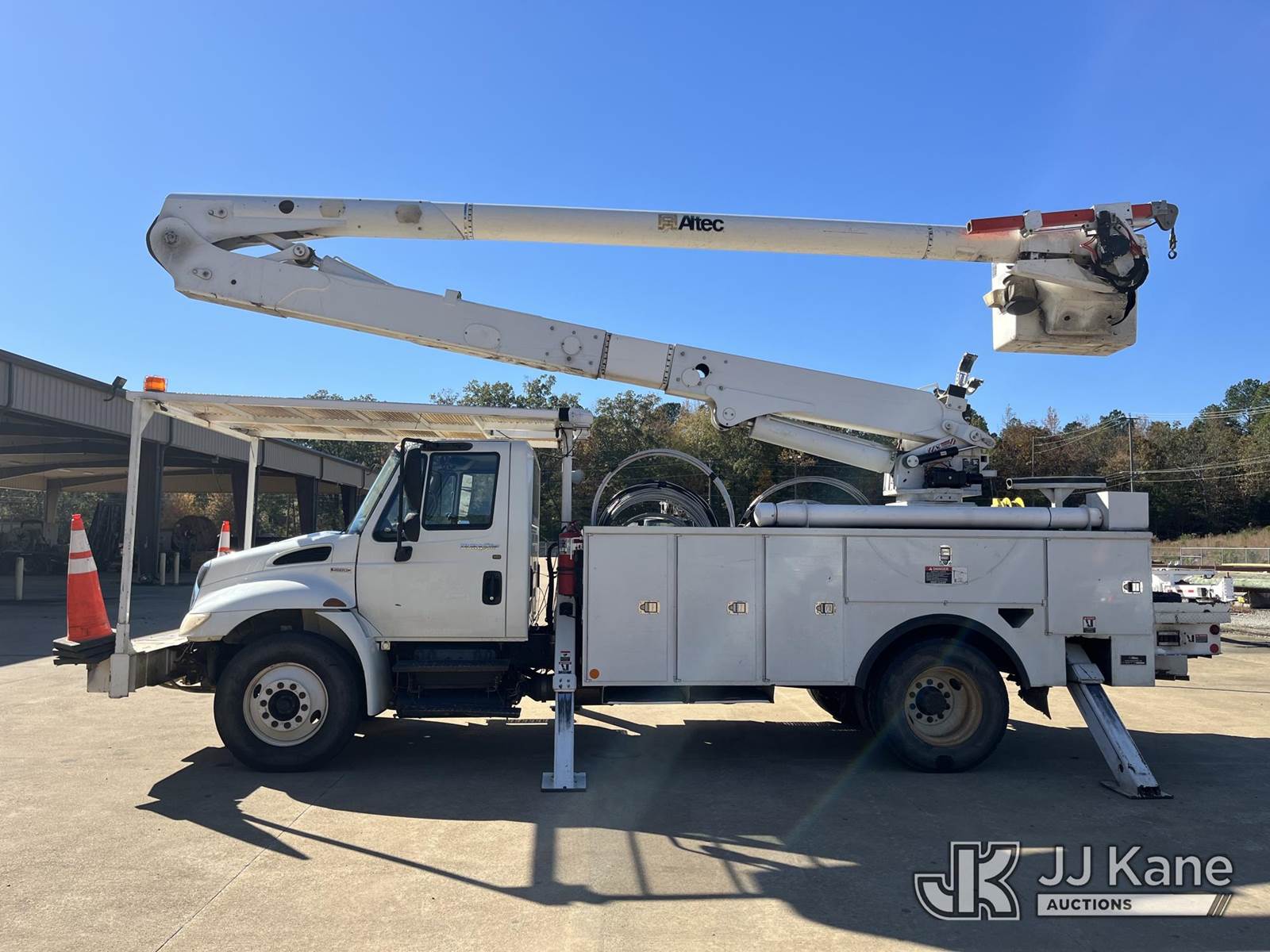 Altec AA55E, 60 ft, Material Handling Bucket Truck s/n 0208EM0221, with two-man bucket & 4 hyd. outriggers, rear mounted on 2009 International 4300 Utility Truck, Maxxforce DT diesel, Auto, 4X2, A/C, with front winch, (142,194 miles) Electric Cooperative Owned (Runs, Moves, & Upper Operates, engine issues/noise) This is a Titled Item NOTE: This unit is being sold AS IS/WHERE IS via Timed Auction and is located in Selmer, TN. For more information & removal arrangements please contact Dalton Childers @ (417) 496-5889. Load out by appointment only, Buyer/Hauler must present copy of paid invoice upon arrival. Purchaser acknowledges ALL lots must be removed within 5 business days of Auction, or a storage fee may be incurred. For load out and pick up information, please reference the release form sent out after purchase. (Missing manuals, See Auction Company for Manufacturers Information to obtain manuals) (Buyer is responsible for removal. Assistance by consignor or JJ Kane Auctions is not assured.)