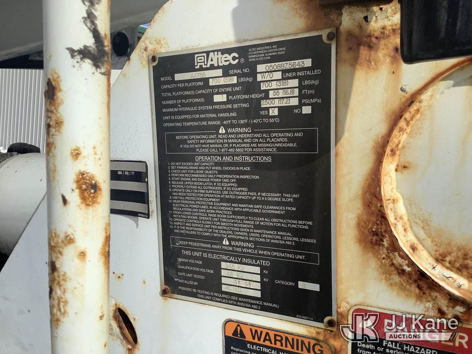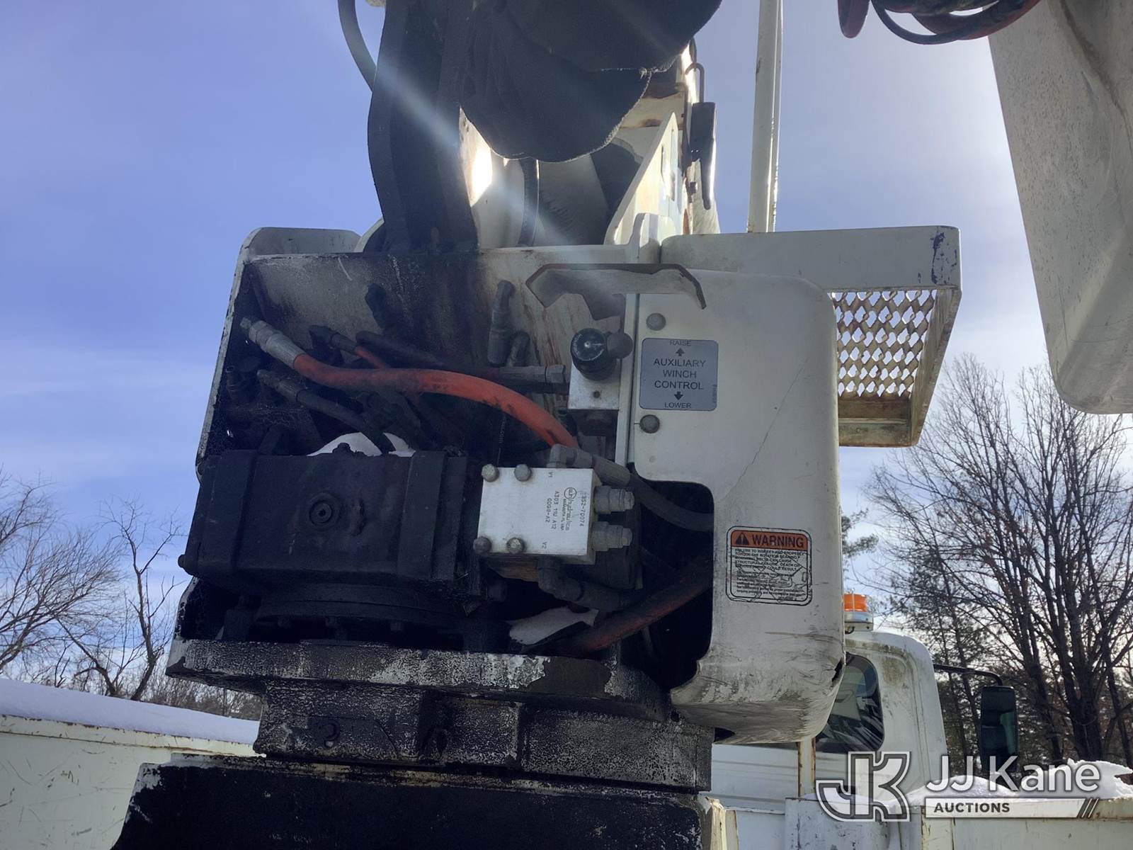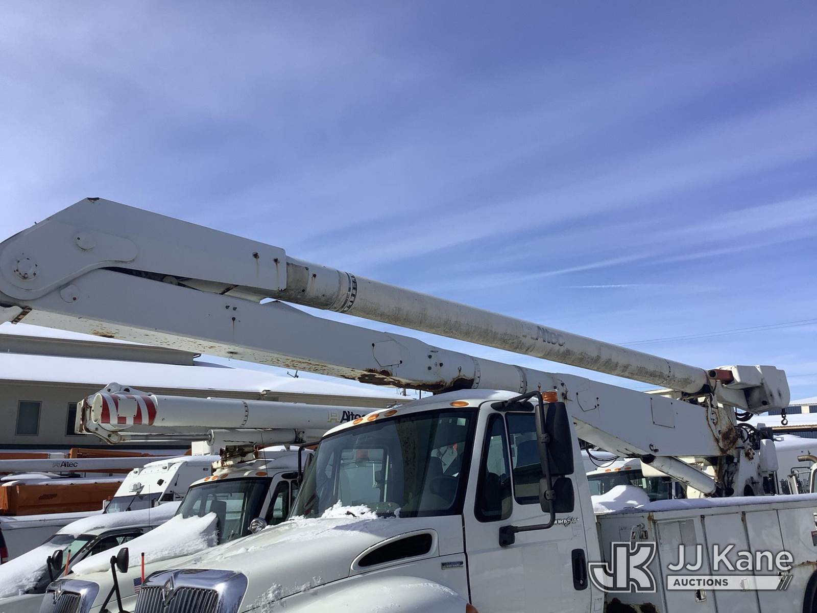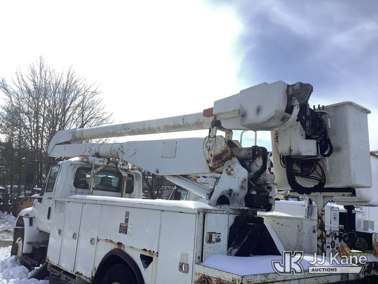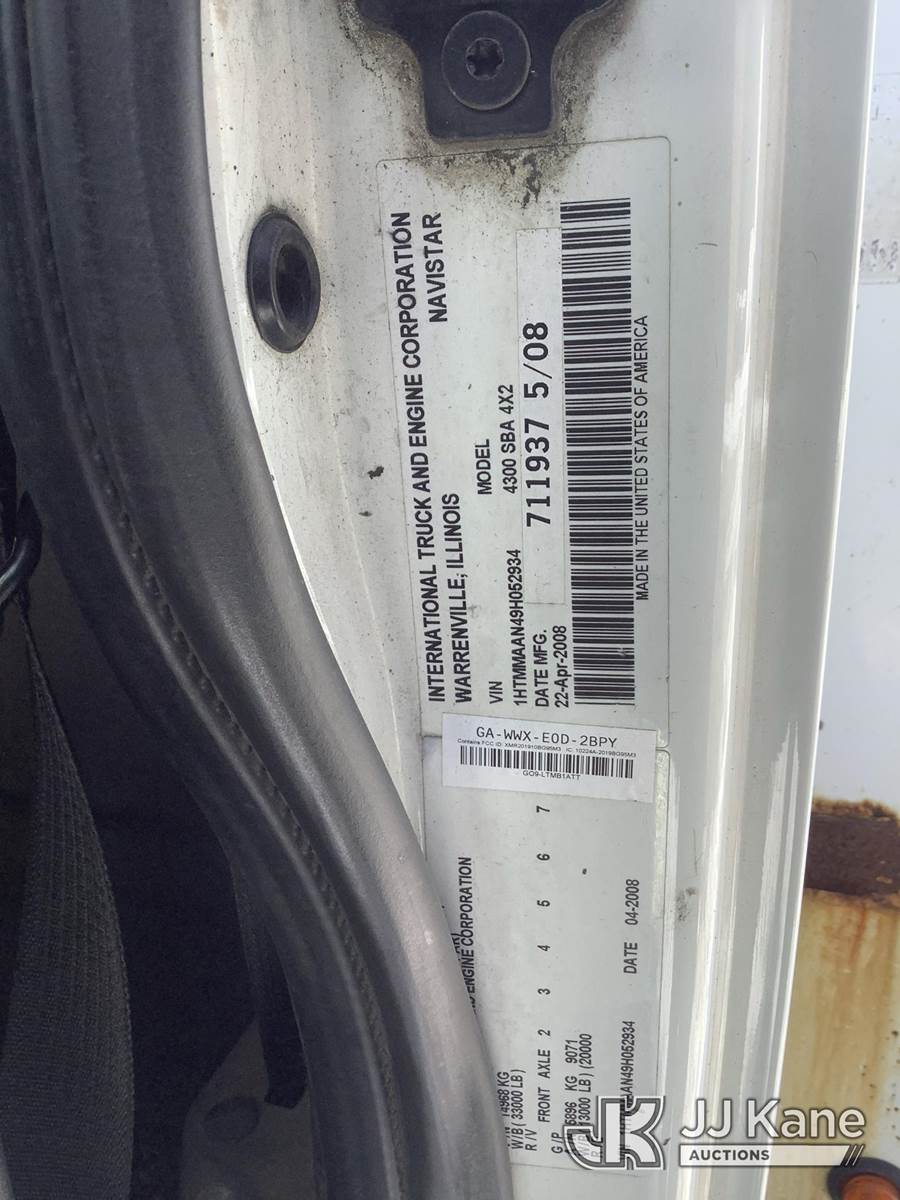 Altec AA755, 700 Lb 60 ft, Material Handling Bucket s/n 0508BZ5643, with Two man bucket, mounted on 2009 International 4300 Utility Truck, 7.6L L6 Diesel, Auto, A/C, (154,810 miles (unverified)) (Runs & Moves, Outriggers Operates, Upper Not Operating & Conditions Unknown, Oil/Water Error Message, Engine Error/Warning Light, Body & Rust Damage) (Removal is by Appointment Only, Buyer MUST make a appointment prior to picking up, Buyer/Transporter Must have PAID IN FULL RELEASE. No onsite assistance available, Please Come prepared.) (Reads 17,587 hours) This is a Titled Item NOTE: This unit is being sold AS IS/WHERE IS via Timed Auction and is located in Harmans, MD. Inspection & preview days for this unit are by appointment only; please contact us at contact@jjkane.com or 84-Go-JJKane for more details. For pre-sale questions, please contact the on-site office @ (443) 557-0025 or Kevin.Waggoner@JJKane.com. (Missing manuals, See Auction Company for Manufacturers Information to obtain manuals) (Buyer is responsible for removal. Assistance by consignor or JJ Kane Auctions is not assured.)