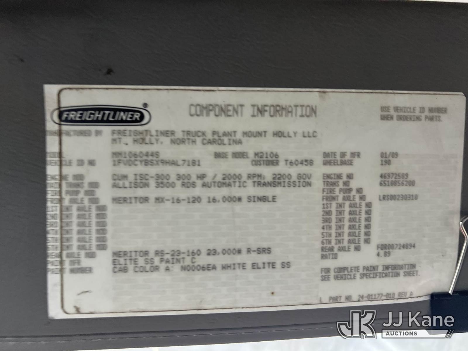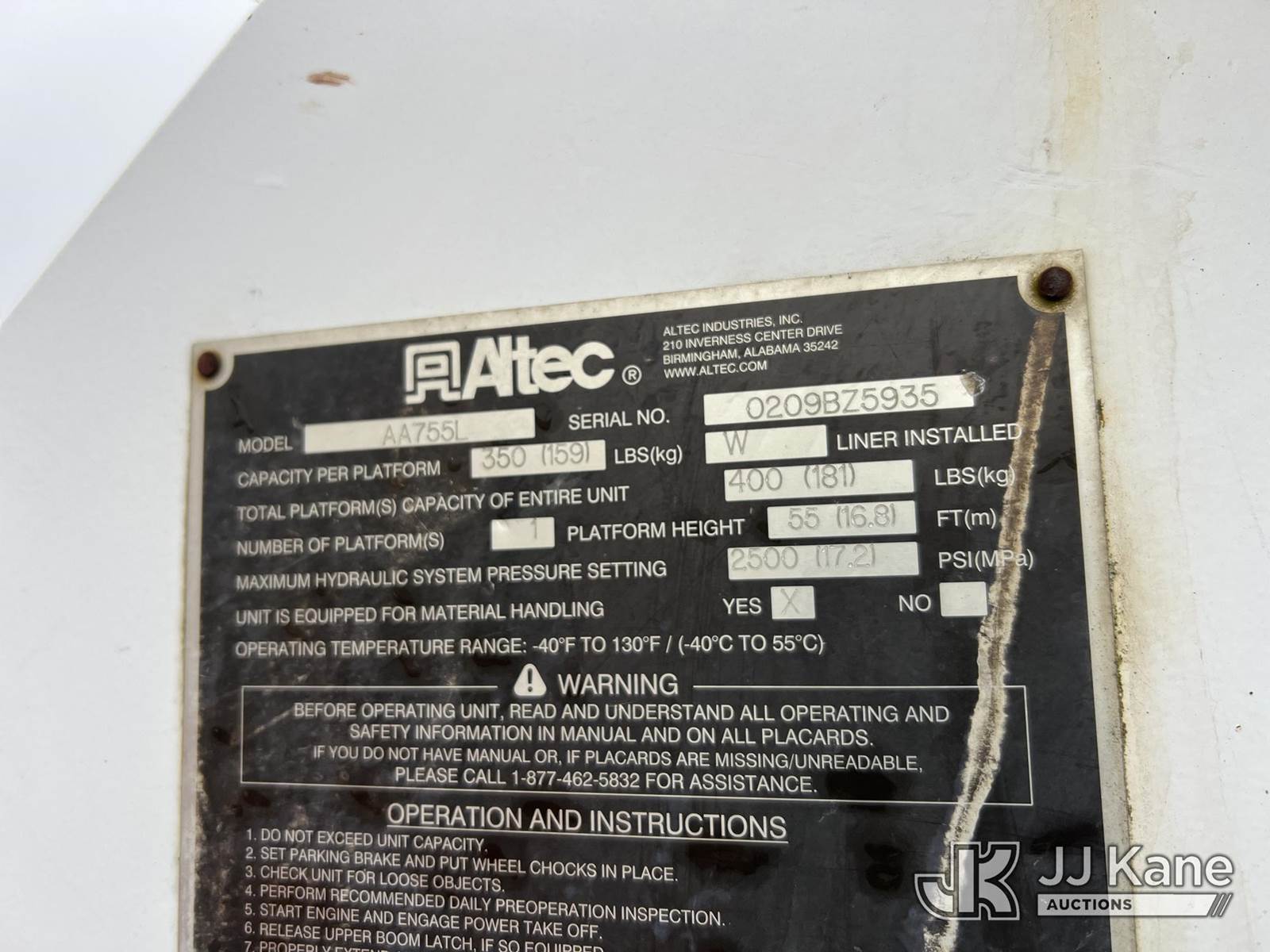 Altec AA755L-MH, 60 ft, Material Handling Bucket Truck s/n 0209BZ5935, with single-man bucket, rear mounted on 2009 Freightliner M2 106 4x4 Utility Truck, Cummins ISC 8.3L diesel, Auto, A/C, with front winch, (150,191 miles) (Runs, Moves & Upper Operates) (Jump To Start, Tractor ABS Light On, Body Damage) This is a Titled Item NOTE: This unit is being sold AS IS/WHERE IS via Timed Auction and is located in Albertville, AL. Inspection & preview days for this unit are by appointment only; please contact us at contact@jjkane.com or 84-Go-JJKane for more details. Alabama Auctioneer Michael Whitebread - License # 5592. (Manuals provided in cab) (Buyer is responsible for removal. Assistance by consignor or JJ Kane Auctions is not assured.)